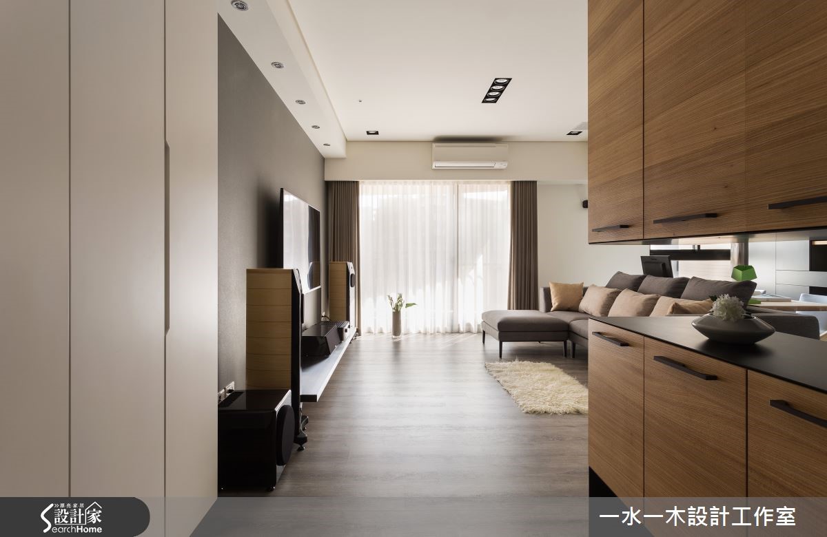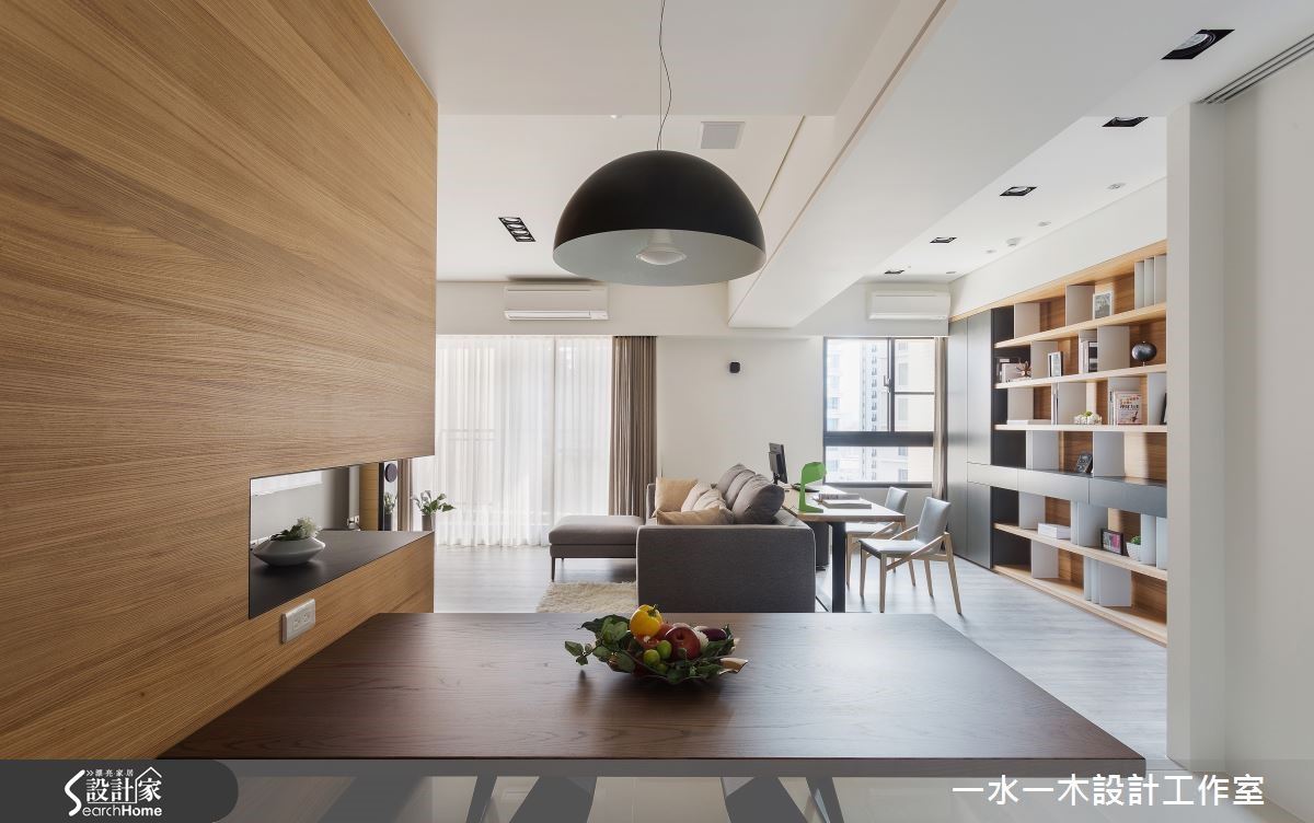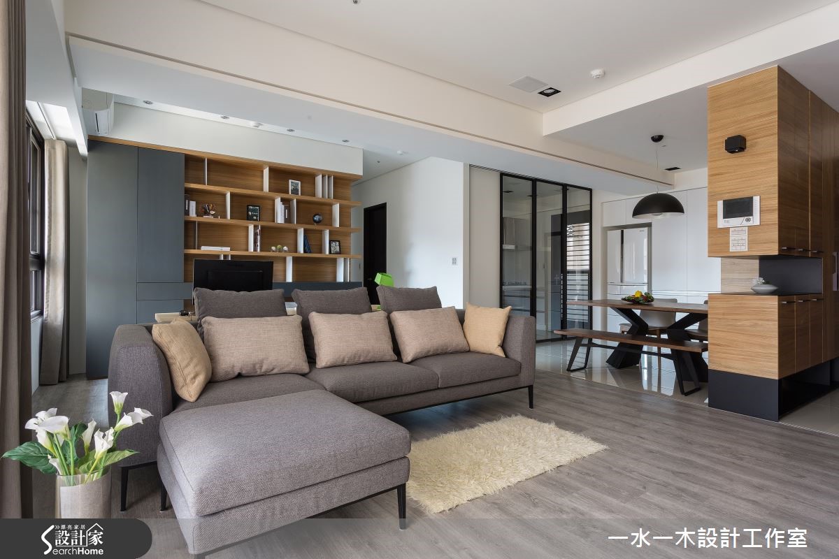 自在的单身生活就应该展现在让自己可以自在放松的环境中。透过毫无屏障的开放式空间设计,打造出光线自由穿梭的采光条件,并纳入书房机能,使规划更形完整。快一起走进这间简约风小家,体会自然无压的单身生活。【以灰色调铺陈,增添时尚腔调】玄关处,设计师以木质规划展示柜体,形成动线导引,公领域则呈开放格局,采不同材质地面铺陈,替餐厅、客厅做出隐性界定。客厅墙面和沙发加入稳重灰色调,增添都会质感。后方的书房以大面墙柜做出收纳展示机能,带出利落的墙面表情。餐厅则位于玄关柜旁,以木质餐桌椅定义领域范围,且将电器设备嵌于墙内,形成平整的白色立面。卧室则注入大地色彩,让床头墙色彩与地板相互呼应,搭配窗外引进的采光照映,营造舒服宜人的氛围。