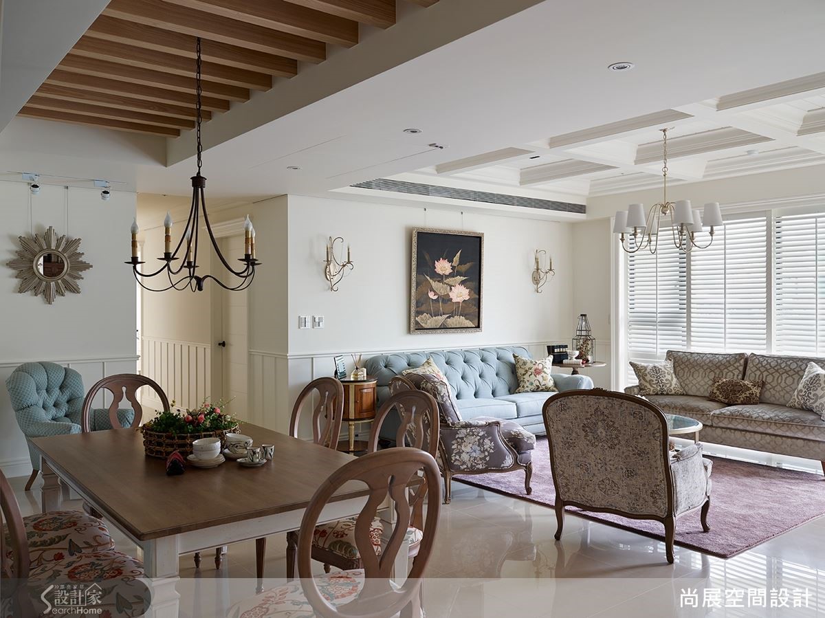 这户大宅巧妙调整格局,除了缩短餐厨、玄关之间的隔墙,让视野尺度开展,也特别规划开放的家庭阅读区,注入欧美的生活动线。灵巧运用经典美式家具,打造宜人优雅的生活情境。
