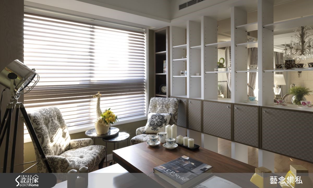 设计师以美式软件做大量铺排,强调优雅与舒适的生活体会,且加入通透设计,使场域视野得以串联延伸,并纳入光影带来温暖丰富的生活表情。【浅色木元素注入自然气息】走进家门,可见深色木作玄关桌的端景摆置,以桌体雕花呼应镜子流线造型,增添低调古典的氛围;采用木地板铺陈整体公领域,呈现轻浅柔和的色调,并添入玻璃烤漆、石材等建构立面或门片,彰显现代自然的气质。【挑高天花板扩容展现尺度】天花板呈挑高规划,拉抬整体空间尺度,而客厅、餐厅、书房则位处同一连贯轴线,运用家具的铺排来定义各个区域,且在书房前配置大型展示柜,在满足展示收纳机能的同时,也让视线得以延伸,构成美好景深。