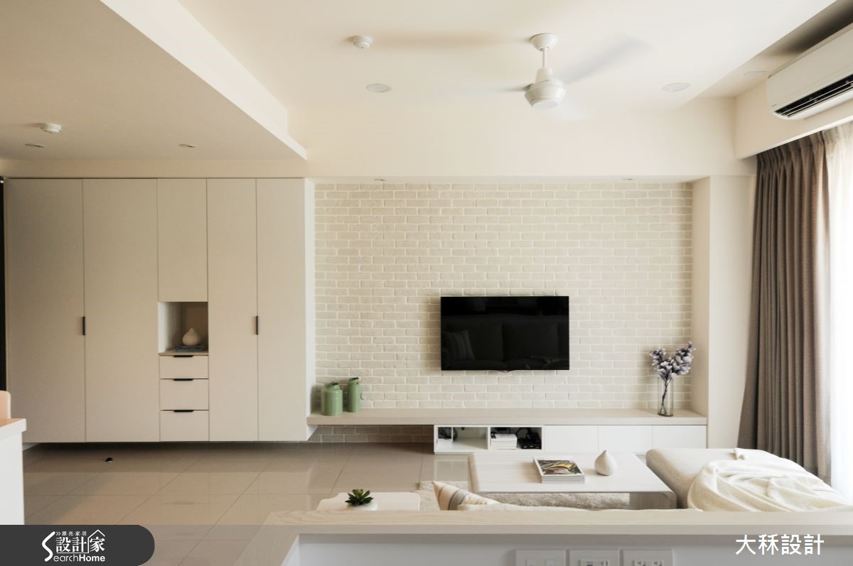 喜爱明亮洁白色调的一家三口,拥有格局方正的99平方米甜蜜窝,惟空间原有的鞋柜、吧台颜色和装潢定调差异甚大,来看设计师如何巧妙解决原先格格不入的柜体问题,并送给一家人通透好空间。【统一色系,让空间风格更鲜明】设计师保留鞋柜与吧台的内部柜体,仅更改门片颜色,采用纯净的白色,让大面积鞋柜显得轻盈不俗气,搭配一旁的文化石电视墙以及温暖日光,完整呈现纯白居家的美感,不仅让整体装修色调达到统一,又可为屋主省下替换费用。沙发后方为开放式书房,因应屋主大量的藏书需求,设置许多展示层板,更利用书墙上下方与窗边飘窗的密闭空间,为重视收纳的屋主增加置物机能。而卧房皆注入女主人喜爱的熏衣草紫与樱花粉等柔嫩色系,佐以木纹染白家具与衣柜,让空间充满柔软浪漫的气息。