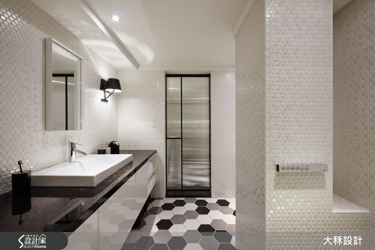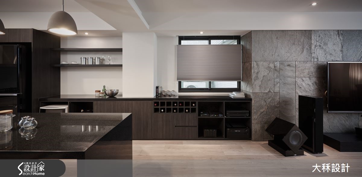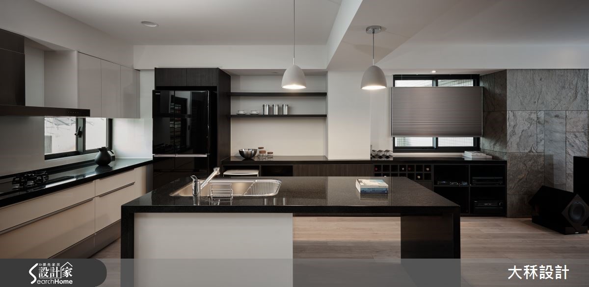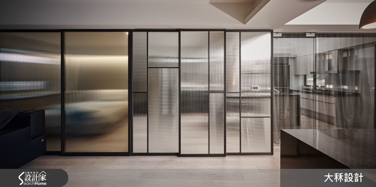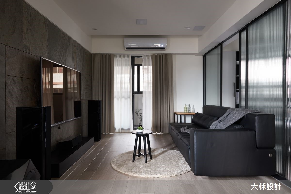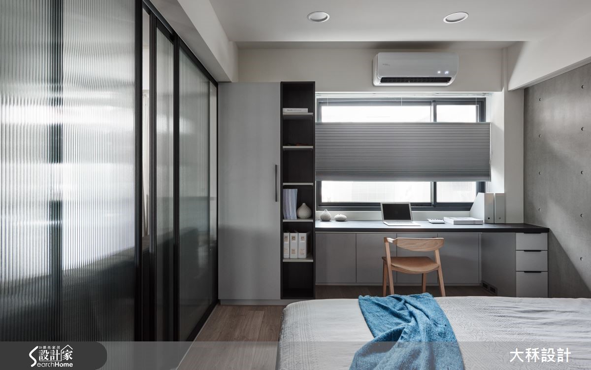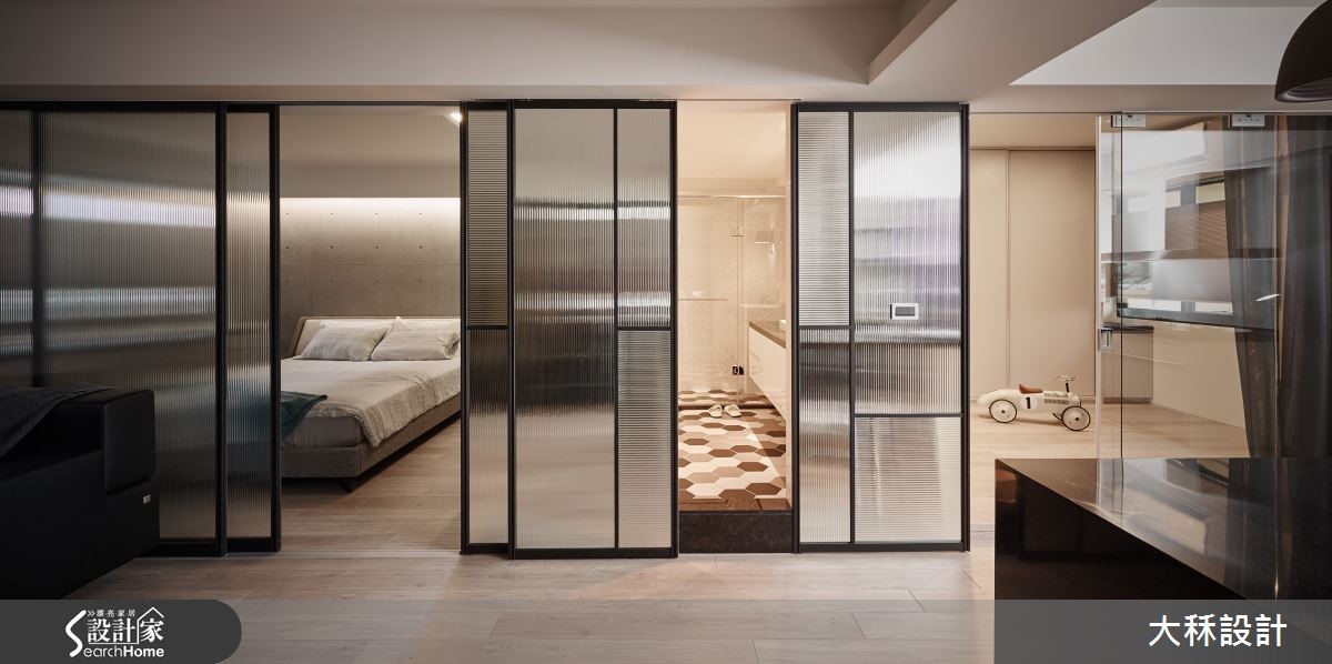 76平方米的空间,迎合年轻屋主所喜爱的简约现代风格,以低调内敛的黑灰色调,搭配率直的俐落线条,规划出不失开放感的时尚单身居宅。【拉门区隔空间,让动线更灵活】20多年的老屋,经由设计师大刀阔斧的拆除重整,将格局改为2室2厅的开放设计,并运用铁框与玻璃的滑轨拉门,将住家划分为两大公私领域,不仅让各处光源得以互享而不显阴暗,还能依据屋主需求保有空间的独立隐私。主卧墙面的仿清水模涂料,搭配灰色书桌与柜体,再加上木色带灰的地板,低彩度的用色让人放松紧绷情绪,营造简洁、冷静的睡寝氛围。而一旁的卫浴空间也以黑、白、灰色的六角砖铺设,与室内色调相互呼应。