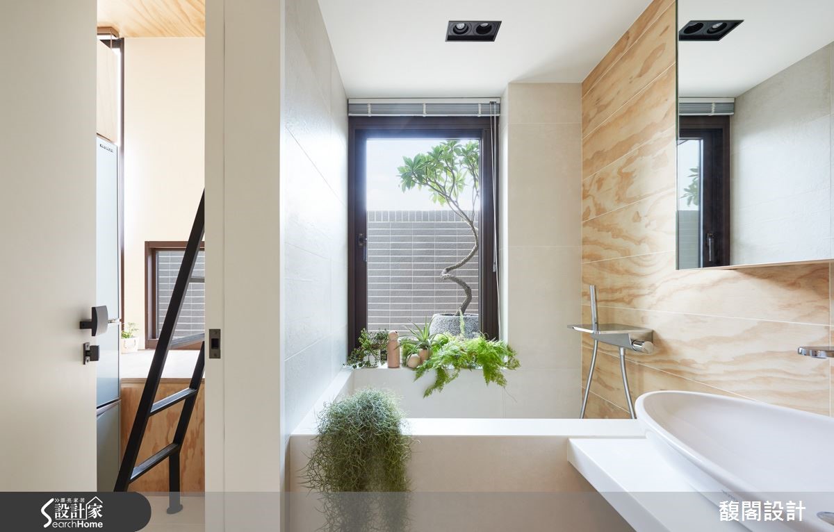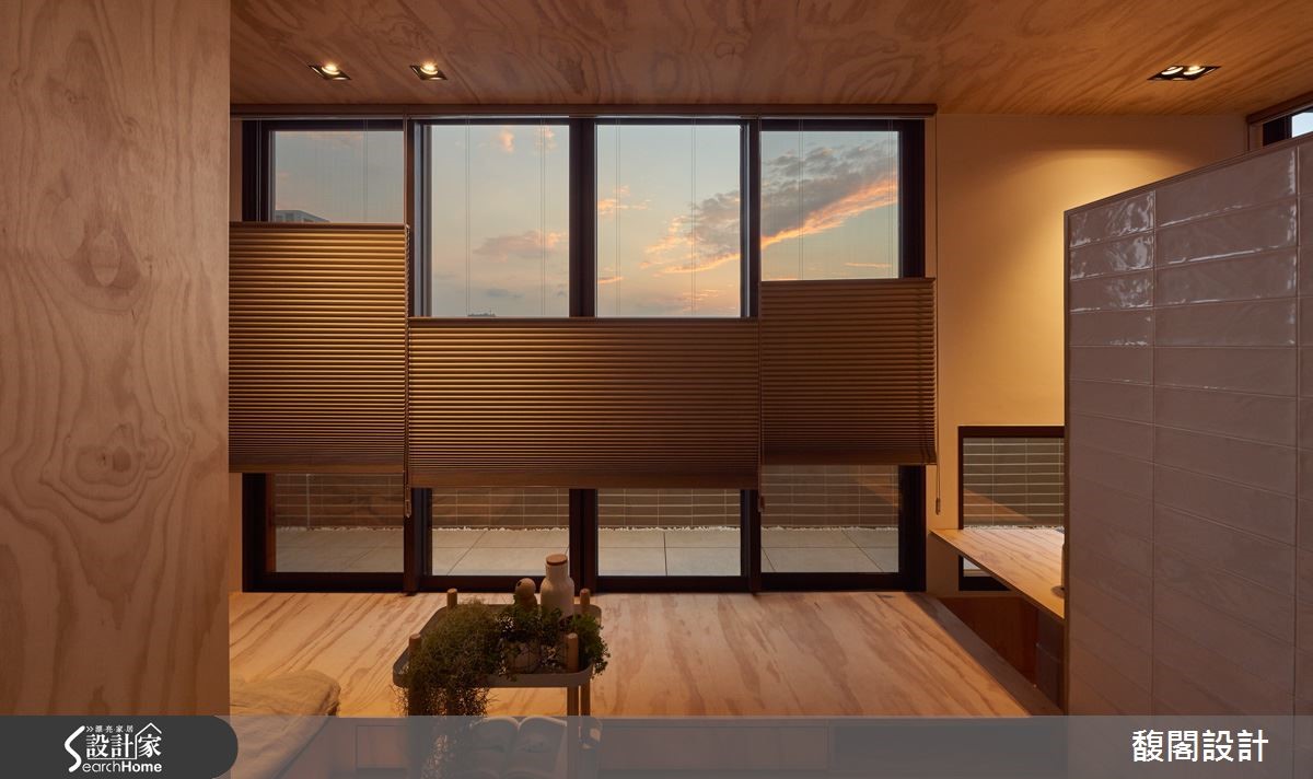此居宅为错层新屋,存在高低差的零碎格局,于是设计师替空间重新进行布局,加入清新木色与简白色调,并使收纳兼具隔断功能,型塑出机能丰沛却又独特的室内景观。 【善用高低差,确保景观及机能】整体以原木色调及白色调相互交织,加入大面玻璃窗引进户外采光,建构出明亮简约的氛围;设计师将错层较低区分配给客厅与主卧,不另外施做跃层,保留整体的透空挑高感。靠窗旁则规画整排飘窗,搭配窗帘的弹性调节,形成观景休憩区。后方连结一座升降餐桌,于桌旁开设一扇小窗,既隐密但同时也与户外视野保有连结。收纳机能则施作于壁面、地板底部或以层板形式表现,充分发挥每一平方米效益,却又不会因机能而丧失美感。厨房领域将厨具设备整合于墙,保留可行走自如的廊道空间;浴室内则妆点美好绿意,并于窗边规划浴缸,让泡澡可同时赏景,带来放松纾压好时光!