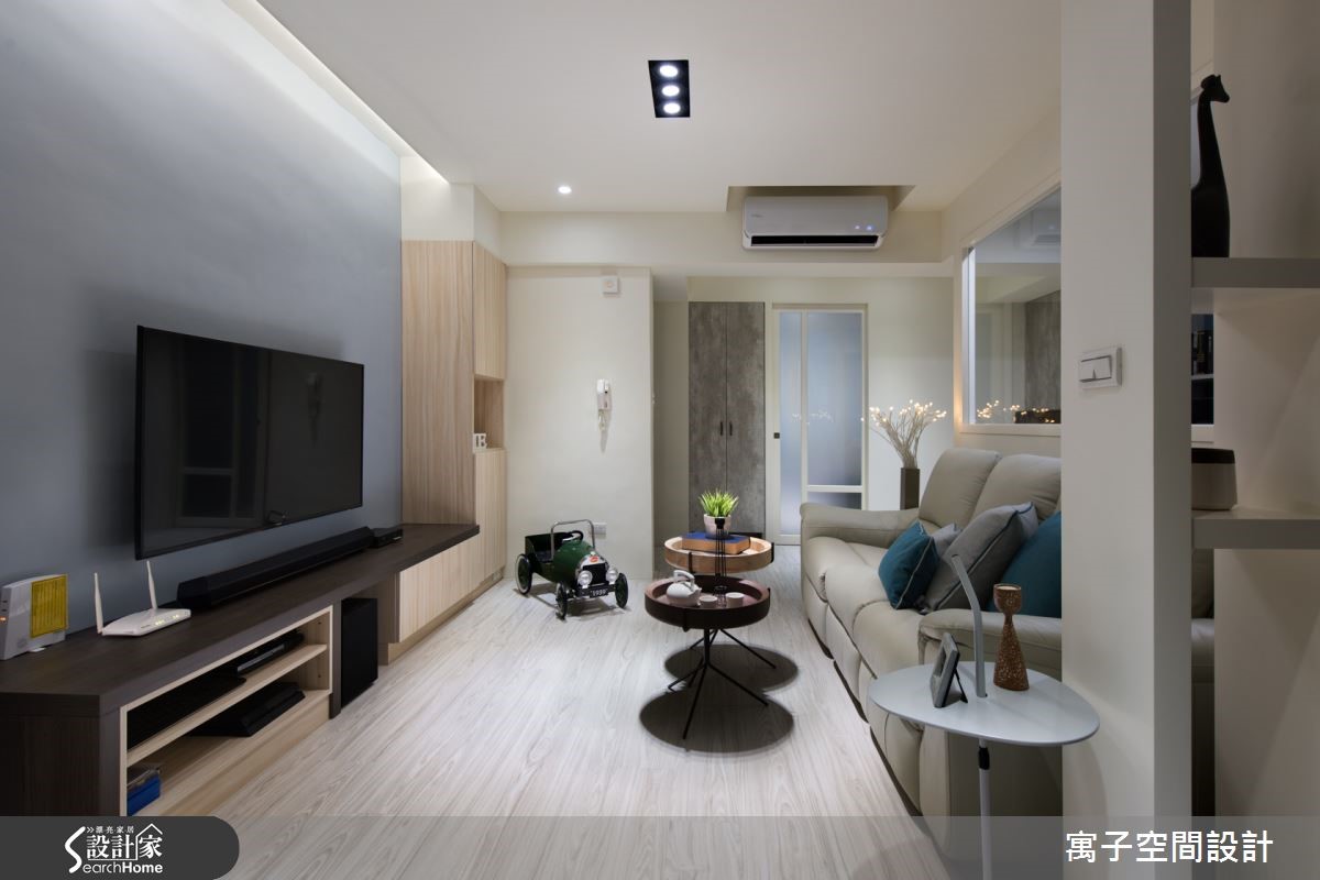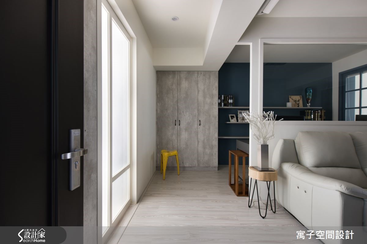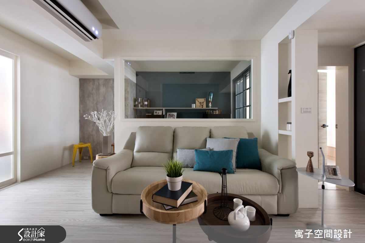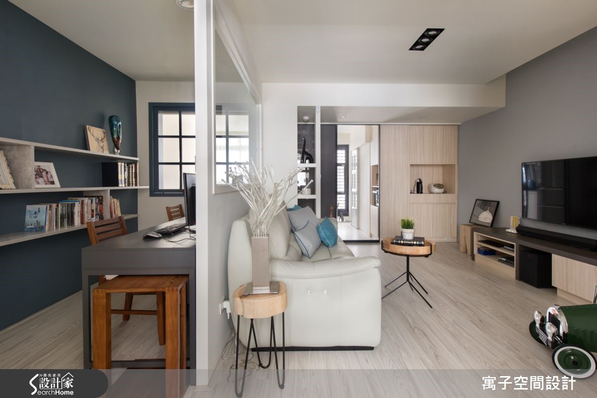 此案中设计师重新替空间设定隔断,使居家呈半开放规划,门片采通透处理,让光线可自由流通于空间之中,达成共享采光。并以休闲风为调性,搭配轻浅柔和的家具色彩,开创出清爽的生活空间。【隔断采用清玻,视觉通透无碍】在公共区域中,设计师让各空间彼此分属,但又同时相互连结,将书房、厨房等并入公共空间范畴,扩容视觉且让动线更形顺畅。并透过开放设定与玻璃门片分享采光,创造明亮的居家氛围。同时规划清玻隔墙做出书房、客厅分界,书房内则延续公共区域一贯的灰蓝色调,设计嵌墙层板加入展示机能,并加入格窗增加采光。主卧则以紫红色床饰带出个人风格,搭配同色系床头墙与窗帘,搭配窗户导引阳光,注入柔和温暖的氛围。
