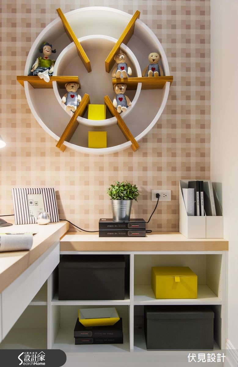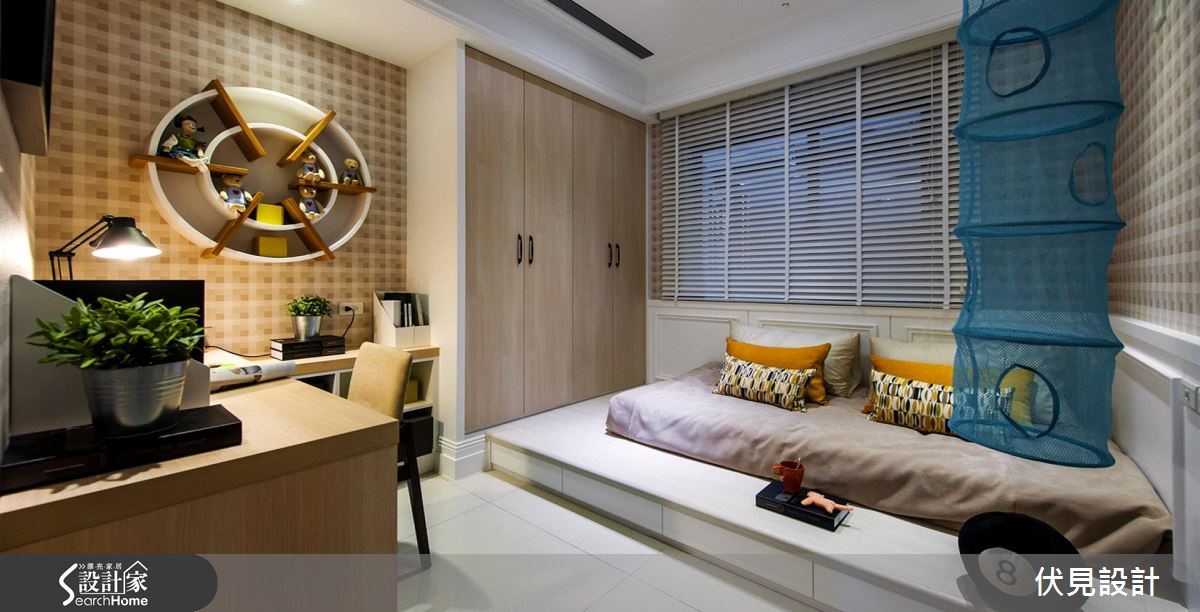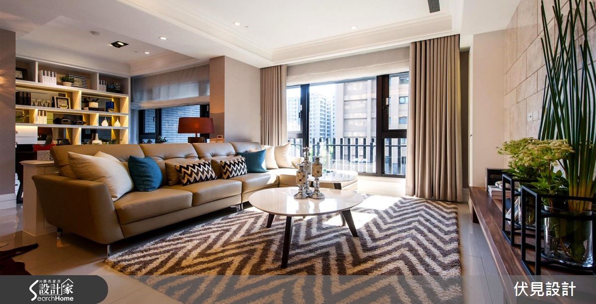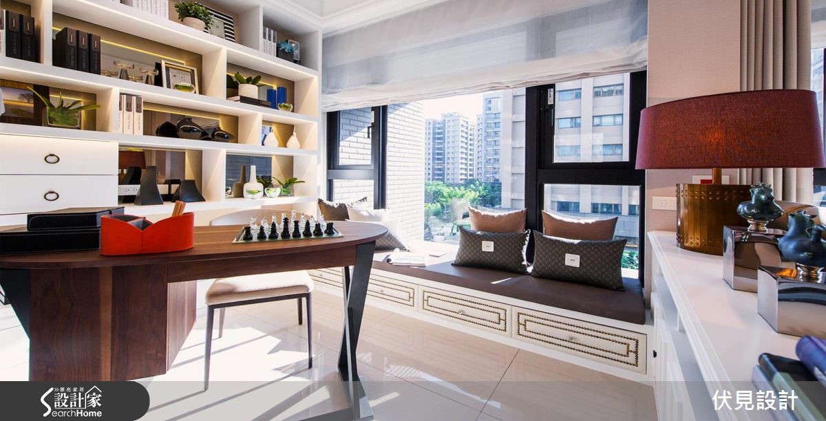 采用丰富色彩对比、图腾及精致灯饰,家具家饰的布置上则融汇东、西方经典元素,并融入舒适的生活质感。在设计师的巧手规划下,让这户新屋展现出强烈而鲜明的艺术生命力。【壁炉和画作上墙,丰富不单调】走入公共空间,以开放式设计将生活串连,采用经点的美式壁炉,挂上风格强烈的艺术画作,呼应蔚蓝与纯白的视觉对比,流金色的壁灯则增添优雅氛围。客厅沙发放上美式图腾抱枕,搭配东方风味的红色桌灯,融合中西风格,创造混搭美感。书房天花点缀古典线板,后方展示收纳则覆上茶镜,透过镜面反射将空间延伸。拥有好采光的窗边设置一方飘窗,下方作为抽屉式收纳,缀饰铜金色边条,更显轻奢质感。卧室墙面绘上浅珊瑚红,作为鲜艳朱红柜体的底衬,渲染出丰富的色彩层次。