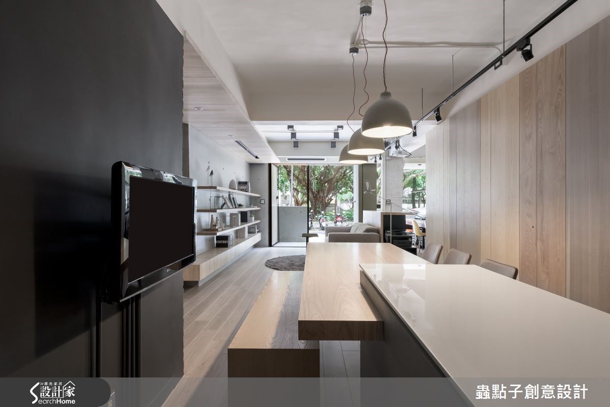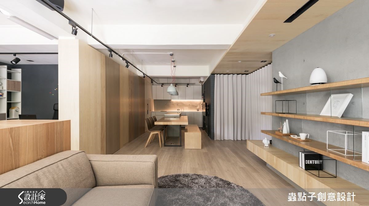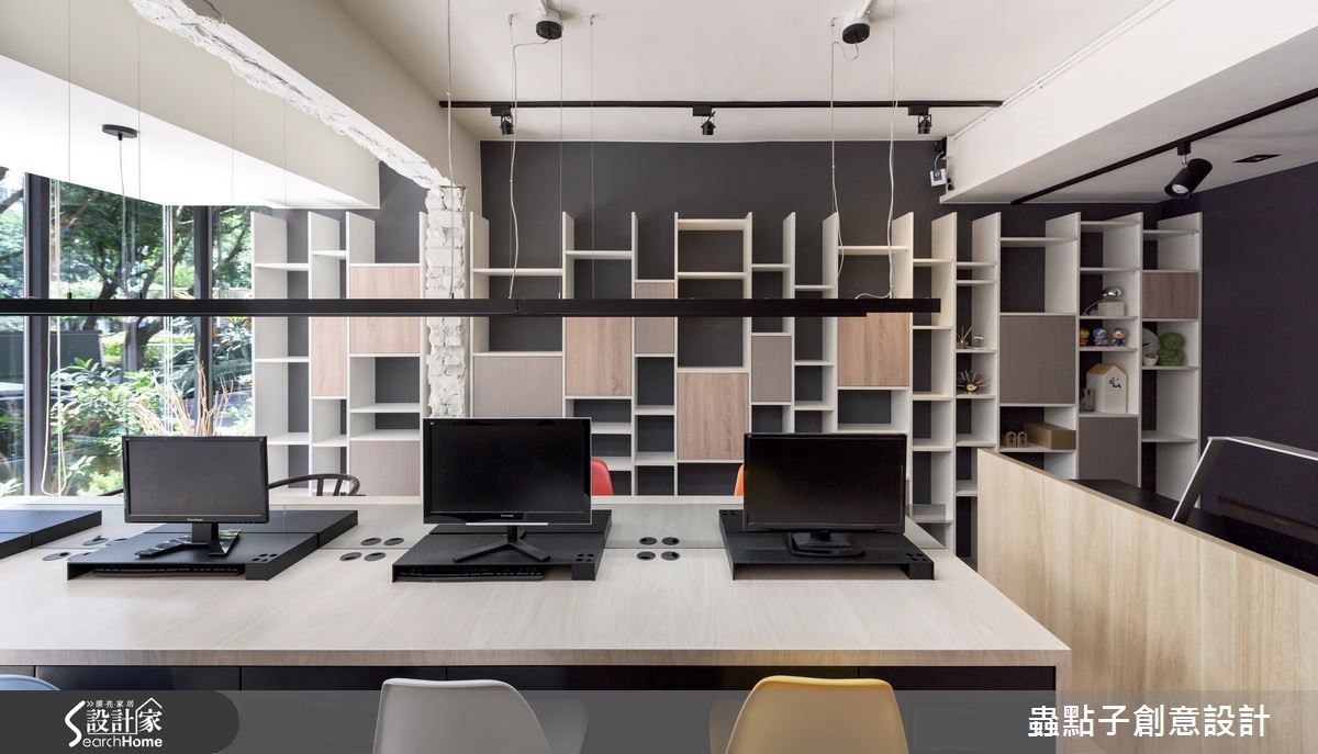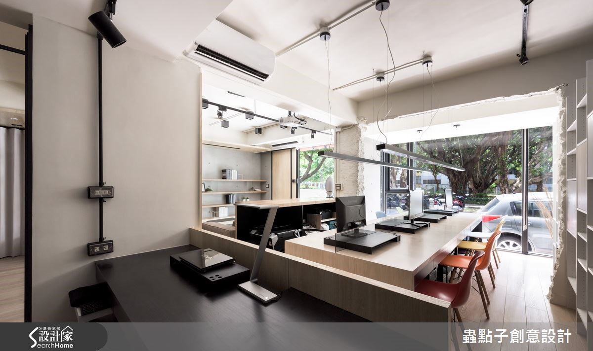 坐落在市区巷弄间的73平方米写字楼,前身为老旧公寓,设计师在整合格局后,型塑宽敞的空间感,风格上则跳脱传统设计公司的前卫现代,采以大量温润木质装修,创造家的温馨感,不仅带给员工舒适的工作环境,更深切传达了独特的设计风格,营造人文且知性形象!【善用木材质,营造知性的空间感】门面配置整片清玻落地窗,打造净透视觉感,并将公园绿景引入室内,缓解空间单面采光问题,创造明亮好感的气氛,主墙则采以仿清水模建材铺述,辅以木作柜体与层架增加收纳展示机能,打造质朴、机能并具的造型主墙。整体透过结构梁柱为框架,做出合宜的场域属性划分,并让彼此保有串联开放,创造不受限的自由活动场域,尤其保留局部的斑驳骨架,映衬粉刷厚实的墙面及木作素材,呈现细腻与粗犷的冲突妙趣。