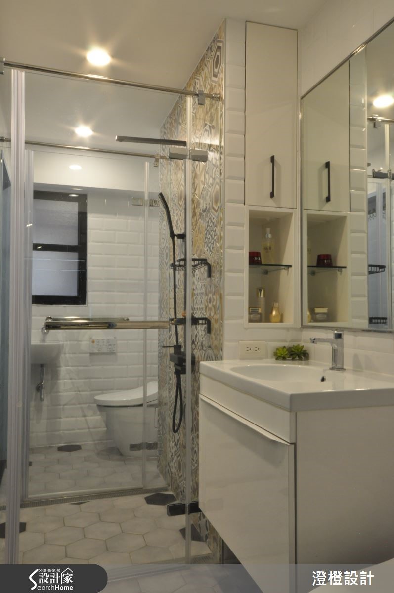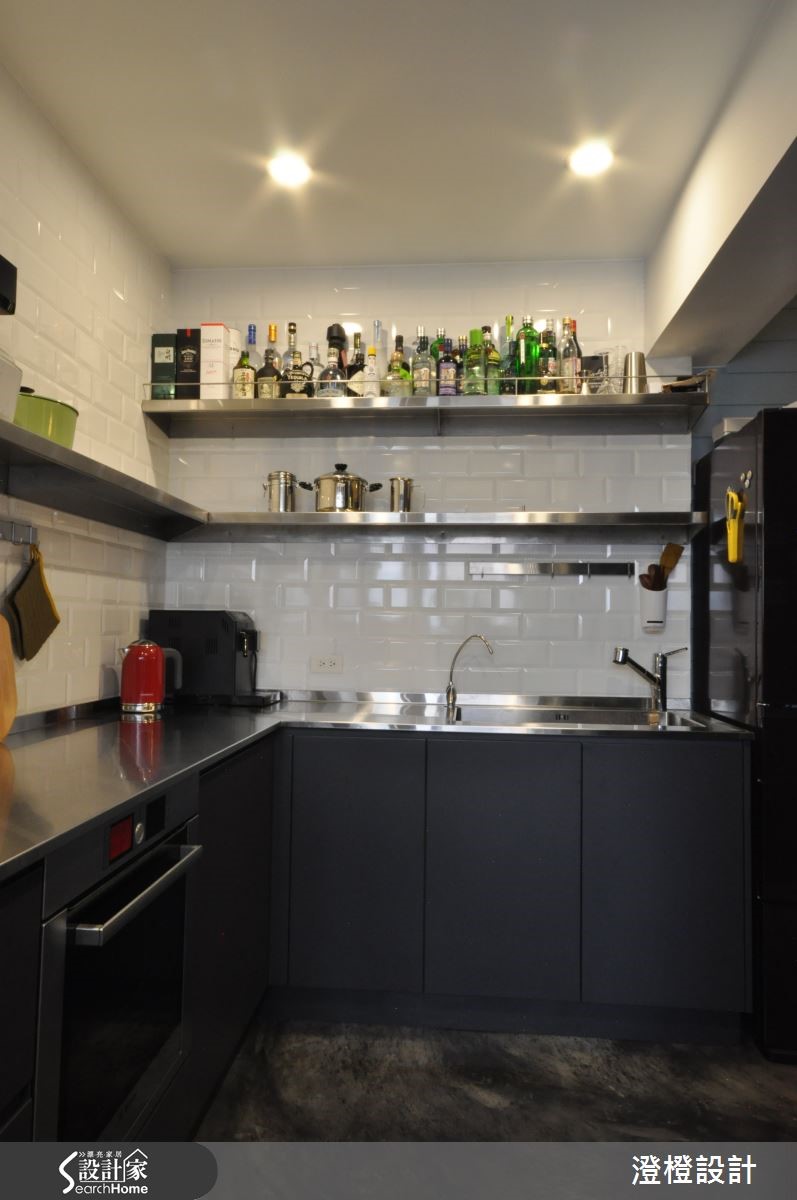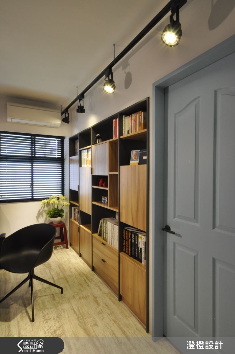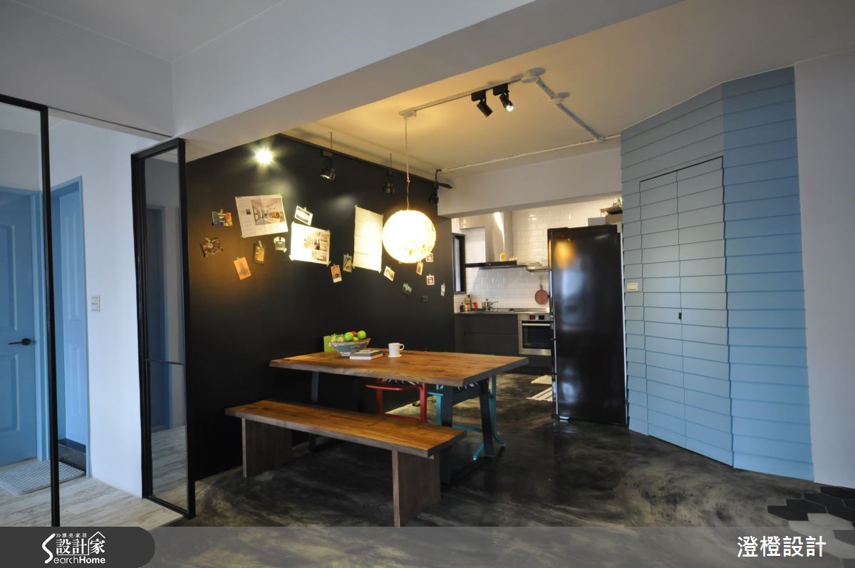 设计师维持原始的白墙色调,佐以家具陈列,妆点出强烈色彩的Loft风格,并在规划实用的收纳空间之余,将机能美型化,透过储藏间、柜体、层架等型态展演独特的居家表情,打造出一间美感至上、机能充裕的好感住宅。【Loft精神带来心旷神怡的视觉感受】空间以纯粹白色为底调,选配深色系软件,透过木作、金属的材质演绎,彰显阳刚深刻的居家表情,并规划通透的清玻隔间设计,让视野得以延伸,串联客厅与书房场域,造就不沉重的轻盈视觉感,天花则加入自然裸露的管线,佐以轨道灯设计,仿效粗犷有型的Loft精神。餐厅则规划黑板墙作为主墙,让人可随兴在此留言或涂鸦,为日常生活留下注脚,同时导引餐厨之间的流畅动线,型塑开放无拘束的用餐情境;在书房领域中,则以木地板铺陈地坪,墙面规划展示木作书墙,形成公领域的一幅美感端景。