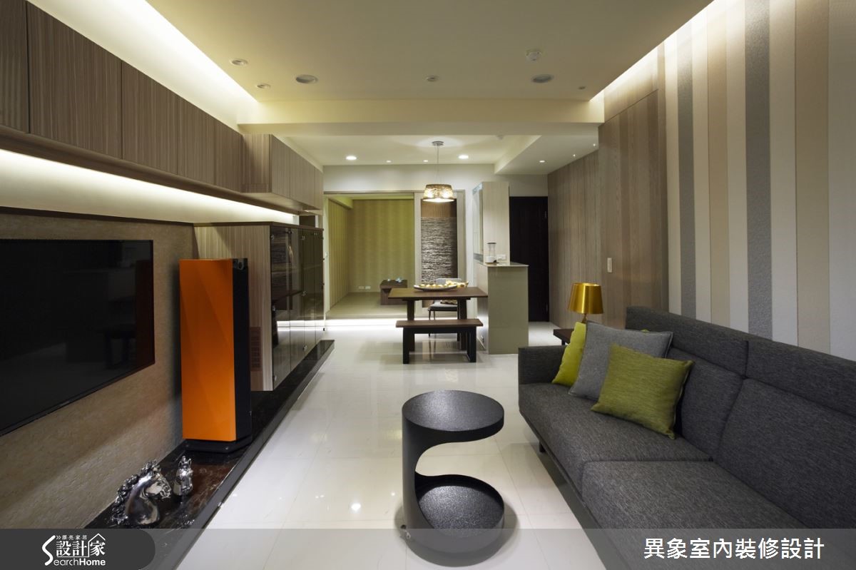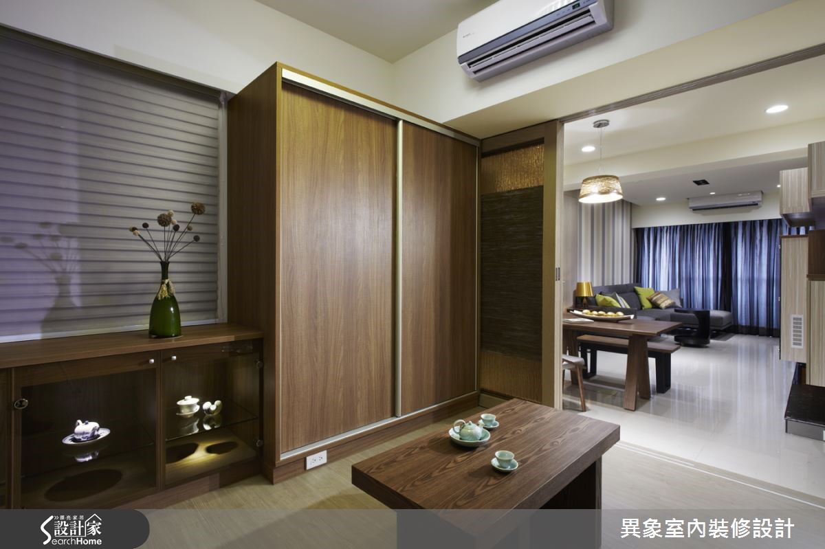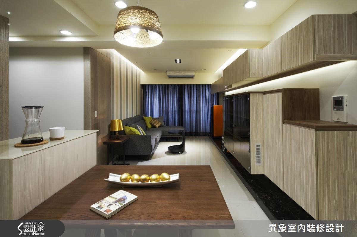 挑一部喜欢的电影或音乐,一边感受音响的立体声感,一边轻品温醇红酒,闲暇时也能够自己烘焙面包,这样的生活光是听起来就非常诱人呢!如果你也心动了,不如以自己的兴趣与喜好,为自己定制一个独享居宅吧!【收纳机能与外观美感,一兼二顾】设计师适度调整格局,让整体动线更加流畅。格局规划上,除了客厅及餐厨之外,在餐厅后方以推拉门区隔出一个多功能空间,并纳入收纳机能,依据使用需求可兼具品茶区、和室及客房的机能性。客厅电视墙以大理石漆处理,加强音响的回响效果。此外,厨房与原有的居室打除局部墙面,将部分储藏柜引渡至厨房,加入烤箱和红酒柜,让生活更加享受。至于收纳配置,客厅吊柜及厨房电器柜依照屋主身高规划,设定在随手可拿的高度上,方便置放音乐唱片,也兼顾安全性。