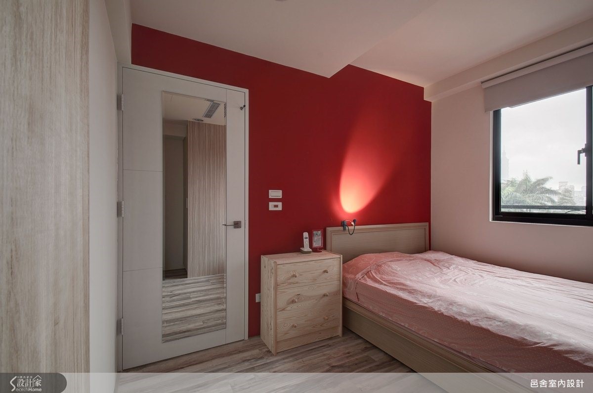 朝九晚五的工作之后,只想慵懒窝在家的周末,是不是也偶尔幻想,如果待在家里如同置身自然户外,岂不两全其美?这户小户型便运用光线、材质及巧思设计,把属于自然的阳光、空气悄悄搬回家!【少即是多,打造清爽简约】由於户外邻近绿意,本案从风格、建材、家具软件及动线方面,特别注重室内的生活感,摒除过于复杂或华丽的格局,以少即是多的留白概念,打造轻北欧简约宅居。在这里,不难发现整个空间以简单、俐落的线条勾勒,地板、墙面大量使用深浅错综的原色木纹,让视觉不会太亮或太重,保留自然原色,配色上也力求单纯黑白灰等中性色与自然木色搭配,反而在两个卧房中使用了砖红色、淡蓝色画龙点睛的区隔了卧室主人调性。 公共空间则以开放式格局为主调,设计师别出心裁的以毛玻璃和薄木墙两种材质半独立式的区隔出餐厨空间,除了温馨的中岛外,厨房电器采用嵌入式设计,使整个空间有条不紊。屋宅中另一吸睛的亮点,便是由玄关走向客厅的空间中,配合屋主骑单车的嗜好,设计师规划了相当开阔的廊道,让屋主随意置放脚踏车于室内,看似机能收纳,其实是让复古的单车线条,成为空间中吸人眼球的焦点。