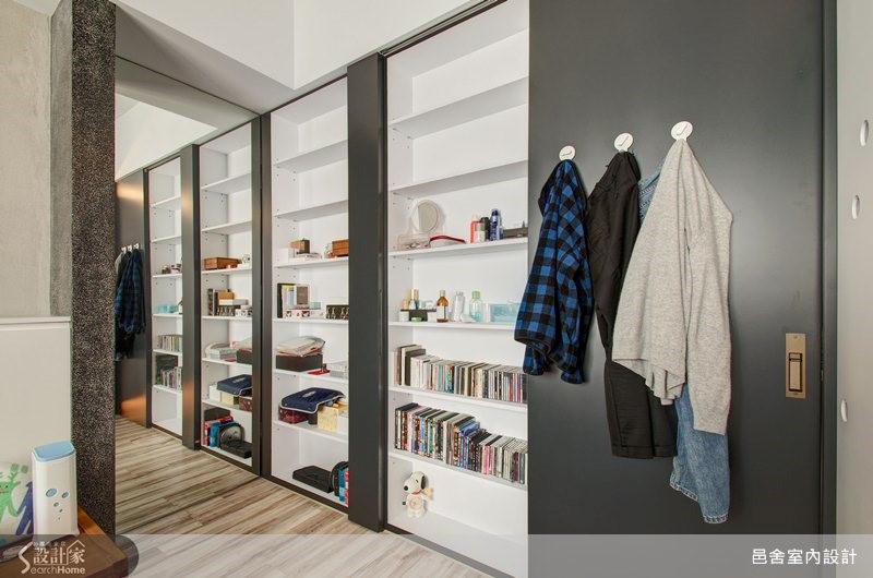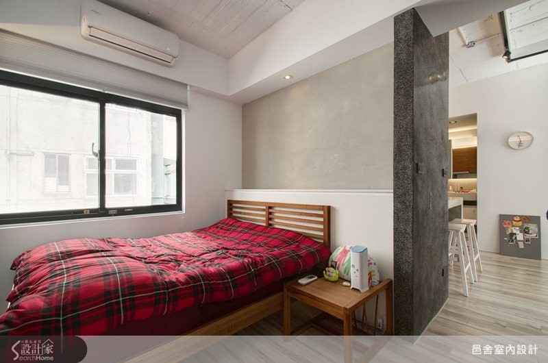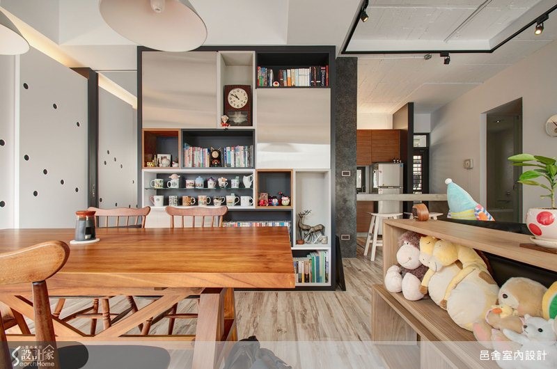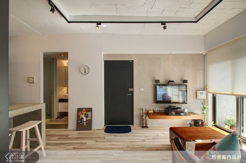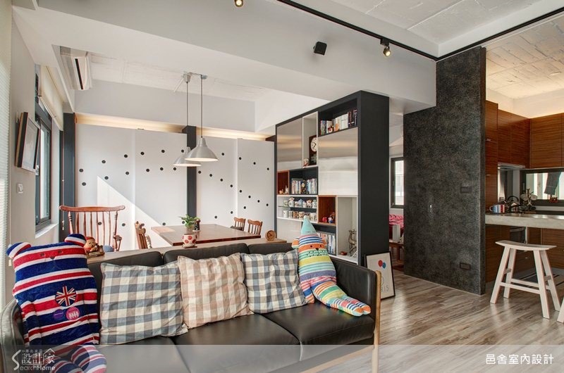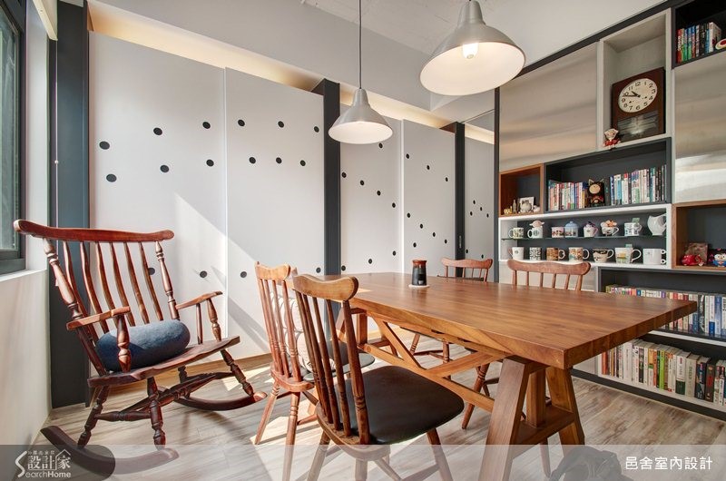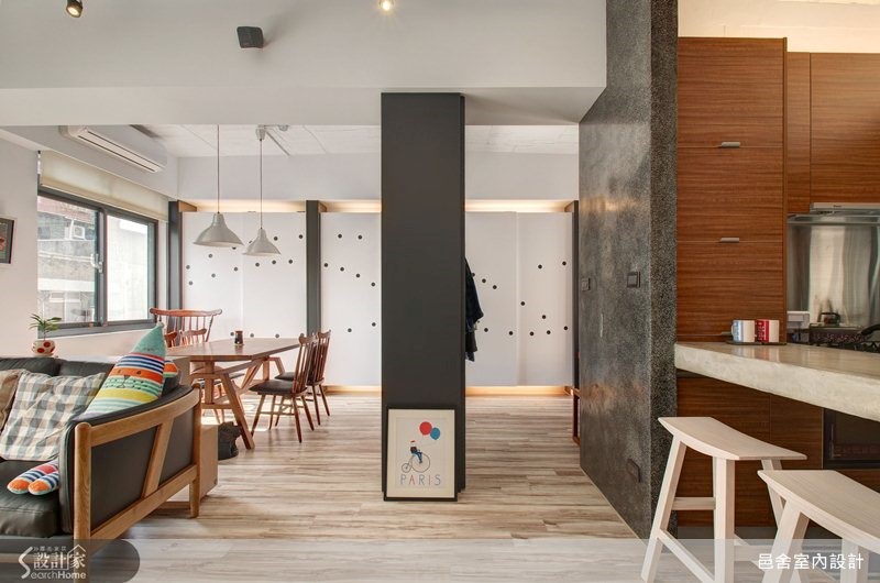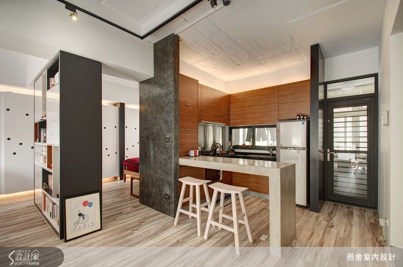 从爷爷时代流传下的屋宅,保留着屋主的年少回忆,因此即便年久失修,也希望让老屋重生回到旧日的繁华。设计师重整老屋体质,拆除内部隔断,不做多余天花,拉伸天地高度使空间开阔,全新打造阳光充足的迷人居家。 【双面柜奠定口字动线,行走自由】原本旧格局有三室两厅,阻挡了三面采光的优点。因此打通所有隔断,客厅、餐厨,甚至卧房皆采用开放式的设计,阳光得以深入内部,减少空间压迫。将旧有天花拆除直见到模板,并重新施涂白漆避免过多沙尘,打造粗犷与细腻兼具的类工业风格。不仅有效阔伸高度,空间随之解放,也奠定天地壁干净俐落的基础。拆除隔断后,餐厅与卧房以双面柜区隔,并透过柜体打造出回字动线,自由回旋于公私领域,让行走更自由。除此之外,柜体内藏推拉门机关,作为卧房房门使用,随时让私领域保有隐私。整体空间以白色为基调,电视墙采用特殊漆,带灰的大地色系与卧房相呼应。同时厨房与卧房之间的墙面以旧时常用的黑色磨石子诠释老屋过往的风貌,并配置老一辈的旧家具结合屋主收藏的纪念品融为一体,完美让新旧生活的记忆在屋子里继续延续流传。