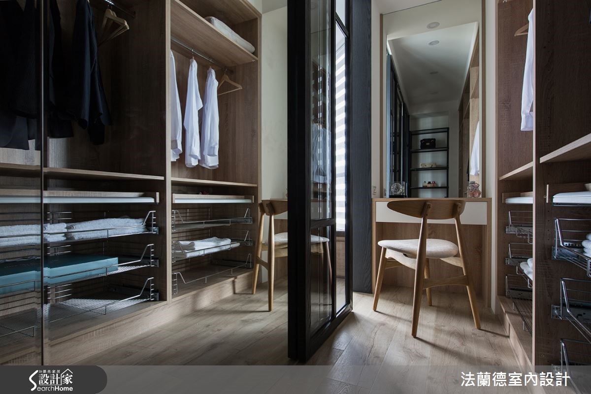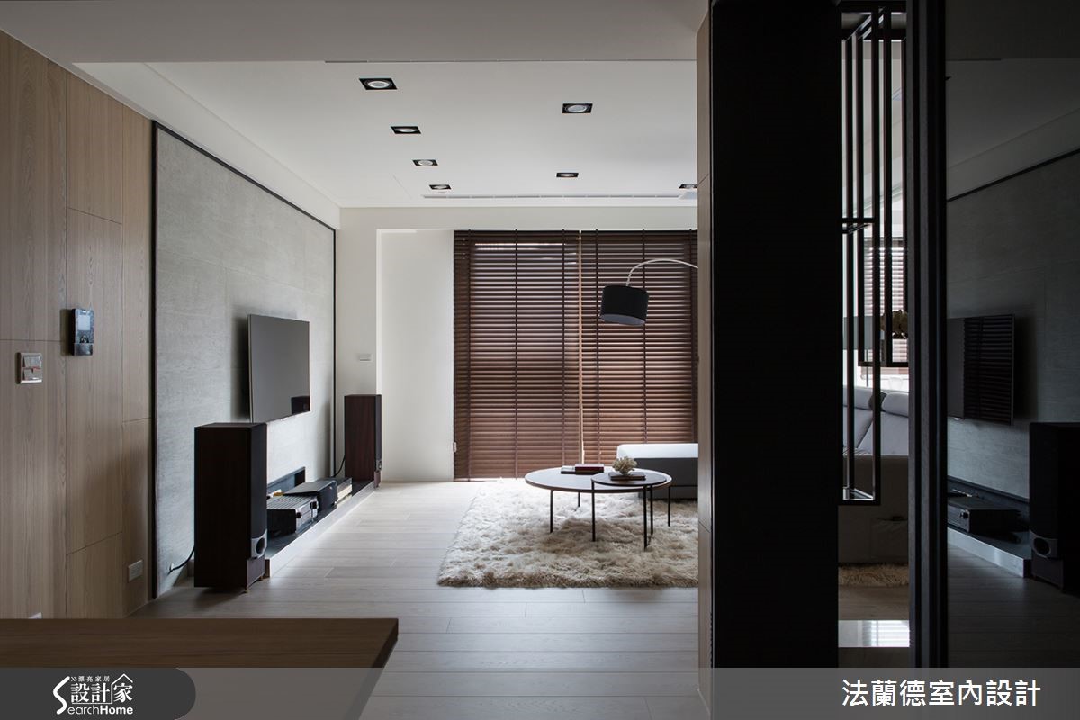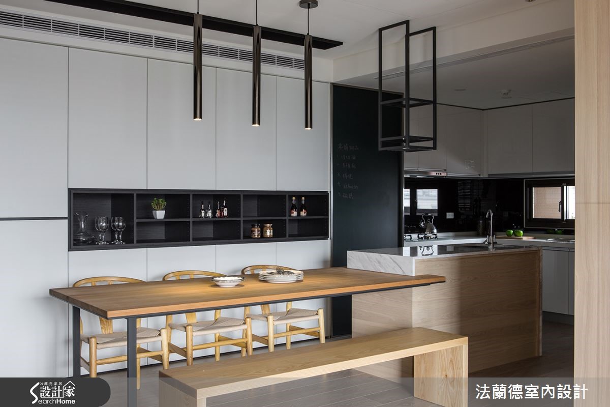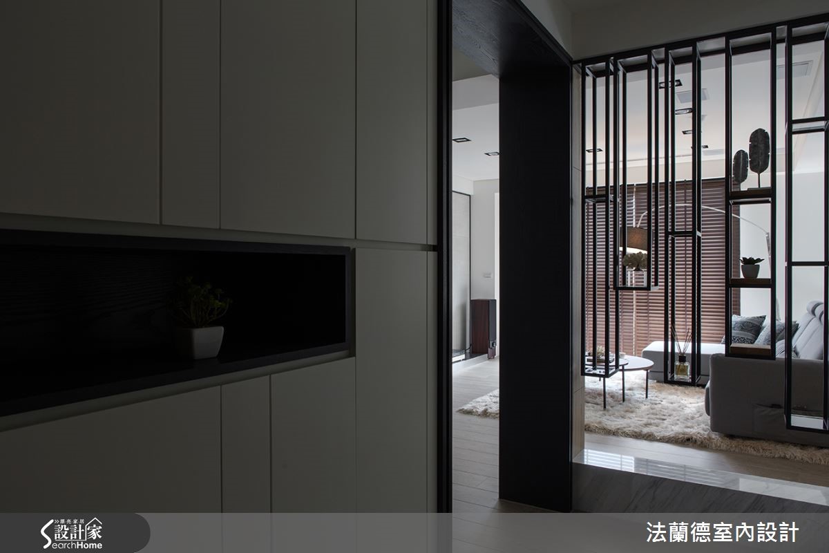 走进这户181平方米空间的单层住宅,设计师以现代风格定调,在空间中融入充裕的收纳空间,并加入令人放松的色系及简单的设计元素,时尚经典的黑白对比显现利落的都会作风,创造稳重不失年轻感的格调。 【搭衬家饰质朴感,铺陈空间利落】玄关处,设计师巧妙规划铁件格栅区分内外,透过微妙穿透的延伸视感,形成进入公领域后豁然开朗的感受。客厅则简化繁复设计,透过家饰阐述质朴感,并配置木百叶帘,营造舒适清新的氛围。餐厅将中岛吧台连结餐桌,创造充裕的使用台面,同时与开放厨房相互紧邻,形成流畅、互动性佳的餐厨动线。一旁白墙则穿插黑色的展示格柜,在网罗机能的同时,也展现了黑白对比之美。书房位于客厅后方,以清玻作为隔断,揽进穿透开阔的空间感,同时配置小巧的飘窗区。卧室则延续木地板的温润设定,并让木纹延伸至电视墙上,而在电视墙两侧规划了深色玻璃门片,打开门延伸入内,则可见梳妆台、衣柜的巧妙整合。