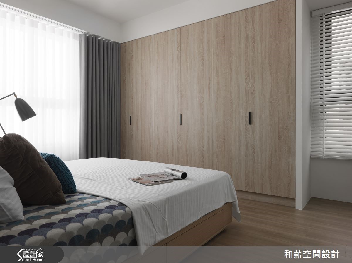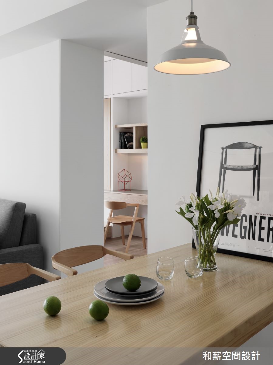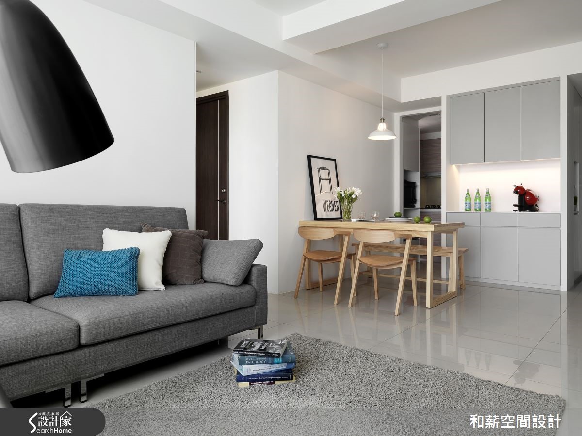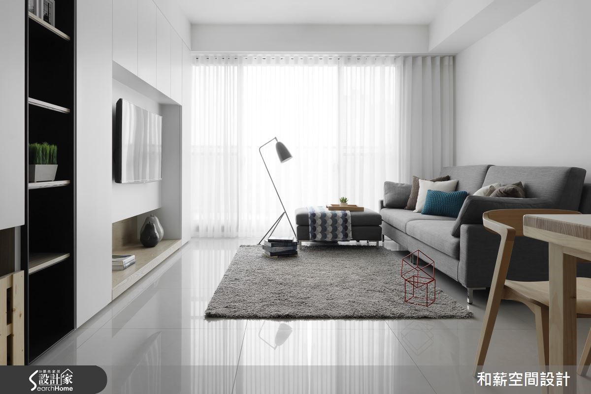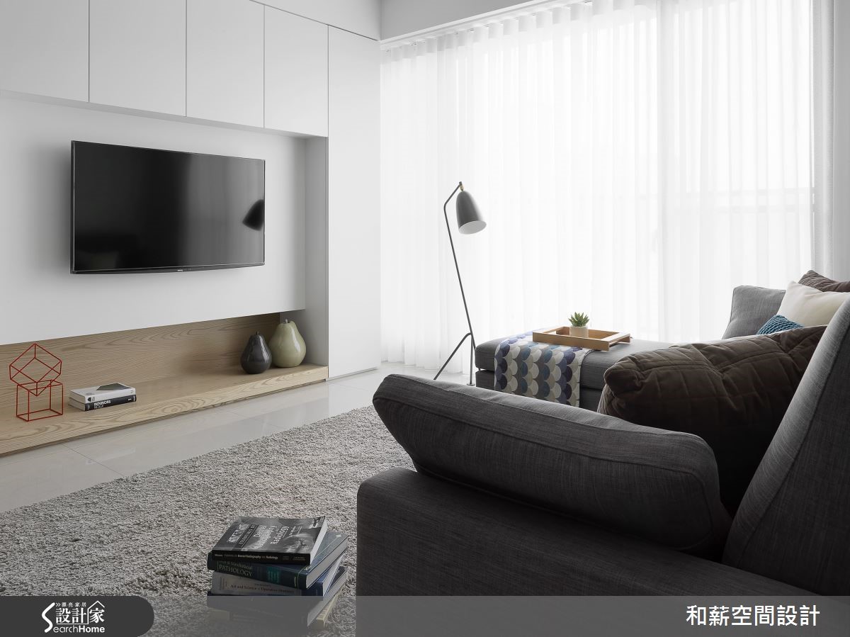 要如何在仅有85平方米的有限空间内,纳进一家四口,同时又让空间线条干净利落呢?设计师利用简约色调,并将柜体结合装修工程,透亮的北欧简约感由此诞生,更为学龄前孩童考虑安全性与游乐空间议题,给予全家人安心生活。【创造充裕收纳,满足需求】年轻夫妻加上未满三岁的孩子,共同住进拥有85平方米的新家,期待可以拥有美好的居住空间,让一家人开展全新生活。设计师利用纯白色调与轻浅木皮为主视觉,点缀黑灰色家具,营造有个性的视觉效果。由于一家四口的物品数量相当庞大,设计师将柜体融合装修,自玄关延伸至开放式客厅电视墙的区域,皆是收纳隐于无形的柜体,发挥收纳潜力,又能营造俐落的空间。而为了孩子的安全问题,将公领域制式的大面积边桌移除,为孩子与父母制造更多的游乐空间。