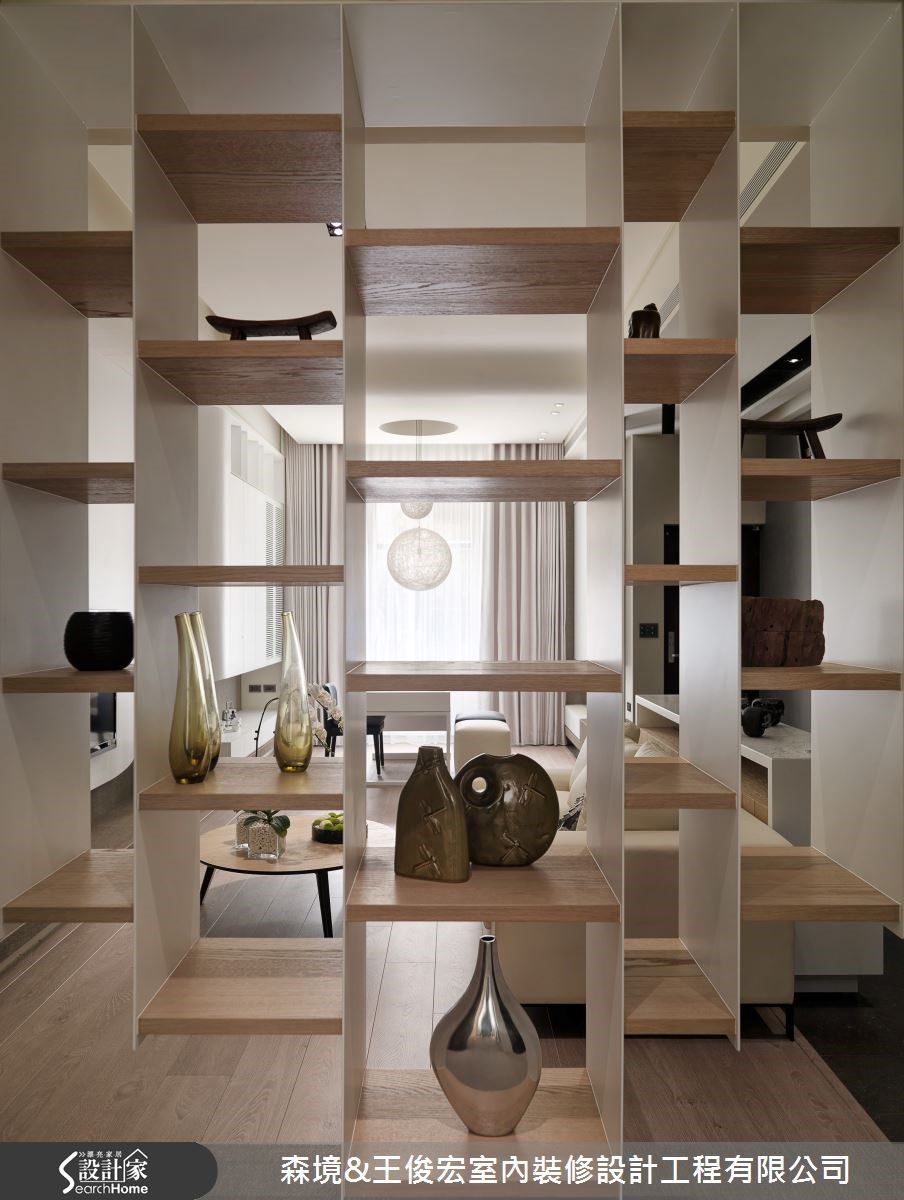 过多的隔断会让空间显得阴暗,但又想扩充机能的情况下。不妨将隔断改造成镂空的层架,增加收纳量的同时,又能引入光线。有效满足采光、收纳和区分空间的多重需求。