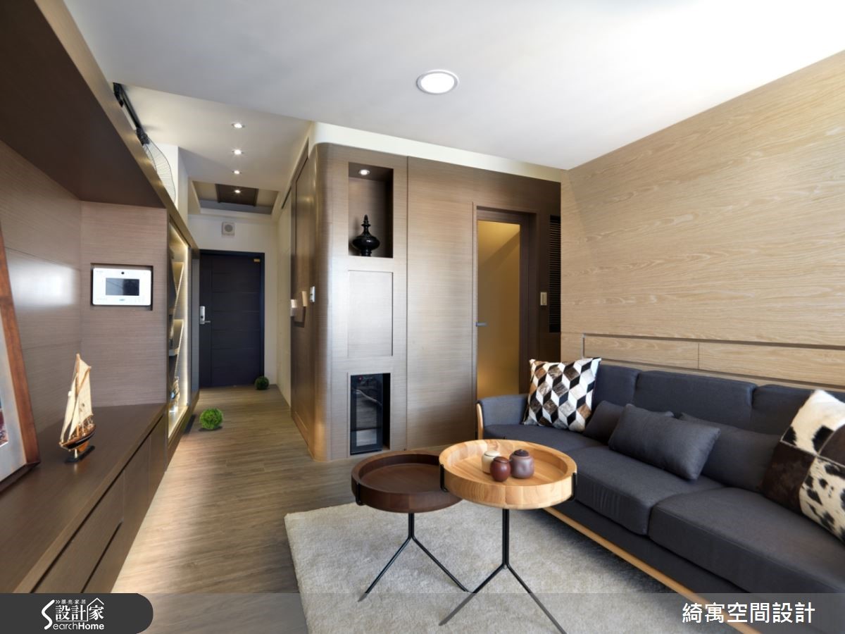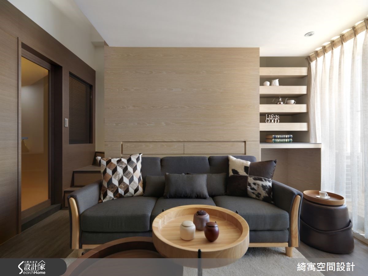 位于市区的小户型住宅,由于屋主平时住在国外,希望回台时能有个落脚处,期许住宅可带来放松与纾压感,于是设计师替空间挹注简单、不卖弄奢华的北欧风格,并强化生活便利性,让小小的生活场域兼具机能、温馨与舒适!【柜体修饰格局、顺畅动线】玄关入门处以鞋柜连接电视墙,形成修饰柱体且一体成型的立面表情,同时注入收纳机能,导引延伸入内的顺畅动线,左侧则可通往流理台,以推拉门做出屏蔽修饰,让走廊不只具有过道功能,也兼具了厨房角色。【明亮采光与温润木皮,享尽舒适】厅区则透过窗户给予明亮采光,搭配木皮色彩增添温润感,让小空间丝毫不觉狭隘,反倒显露出温馨舒适的氛围,同时妆点灯光与家饰品创造视觉层次,营造饱满丰富的趣味感受。【善用边角,加入充裕收纳】而收纳机能则整合于跃层量体之中,像是让沙发背墙同时身兼容量充足的衣柜,且不浪费边角地带,规划整排开放式置物空间,而楼梯下方也加入隐藏抽屉设计,将可用空间发挥到淋漓尽致!