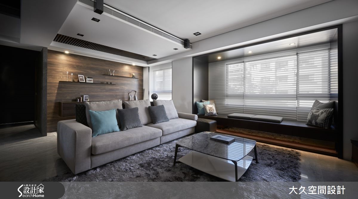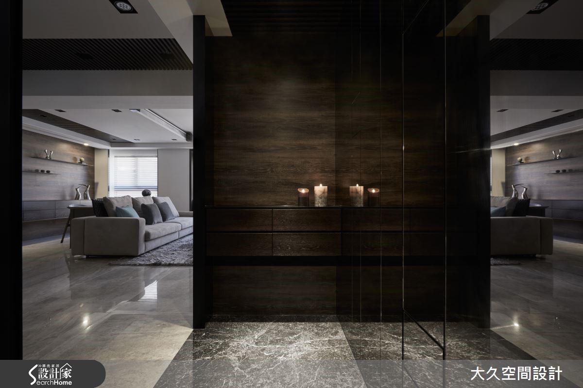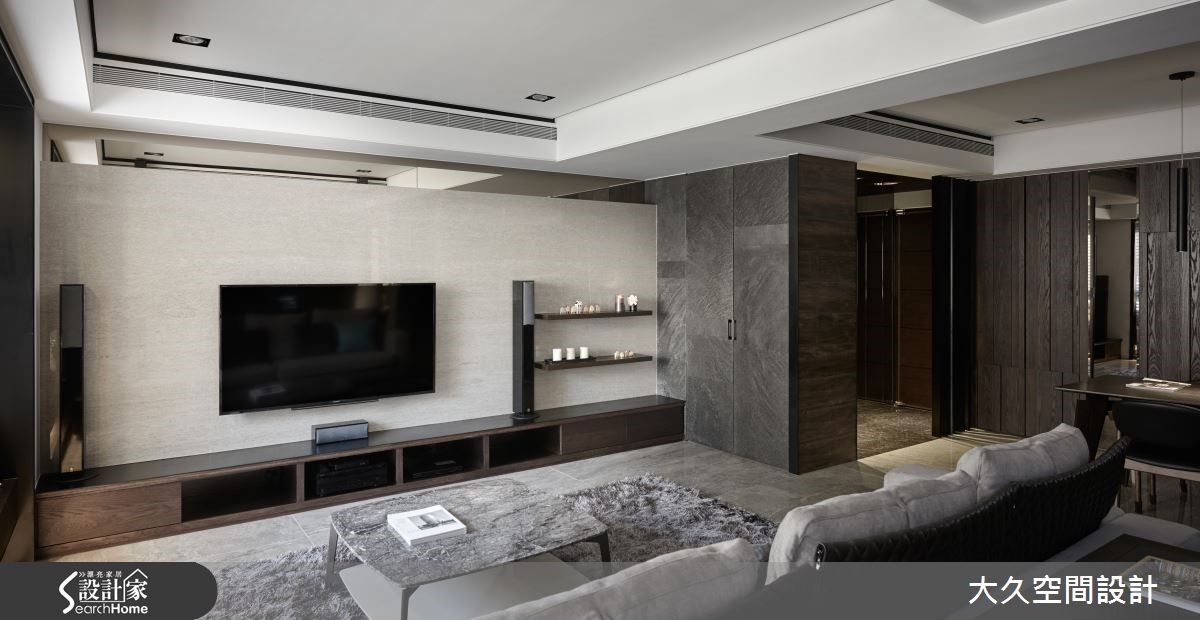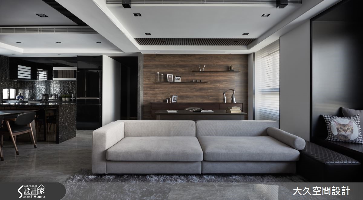 这间二手房以酒店风为设计概念,利用简约线条及石材打造沉静的氛围,将生活质感营造出如精品旅店般的生活场景。【金属马赛克砖,点亮餐厨氛围】在室内占有较大比例的公共领域,串连客厅、餐厨、书房等机能性,搭配沉静木质、石材的深色调,调制都会人文的舒适氛围。玄关、电视墙上方加入镜面材质,延伸空间深度,带有浅琥珀金属光泽的镜面更显生活精致度,地面则以石材的自然纹理,增添山水画般的笔触。 客厅旁利用梁柱下方延伸飘窗区,除了适合独处冥想外,有亲友来到家中时,也能作为临时座位区。开放式餐厨则采用黑色亮面材质与马赛克拼贴。另外,居家的实用性也不容忽视,设计师将收纳巧妙隐匿于设计中,利用材质的衬托让收纳空间不显突兀果。