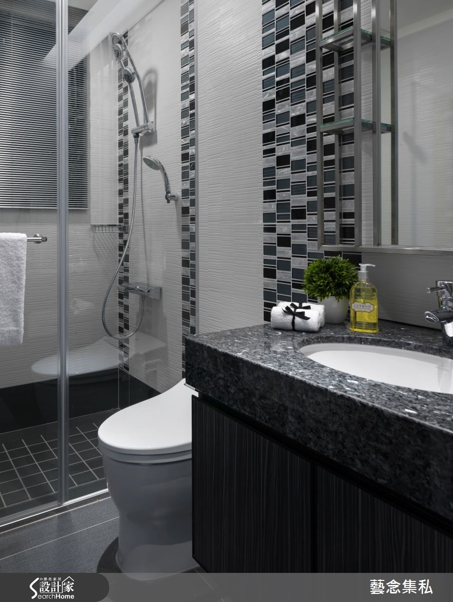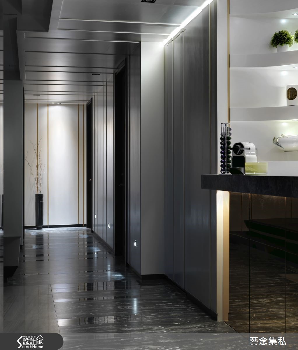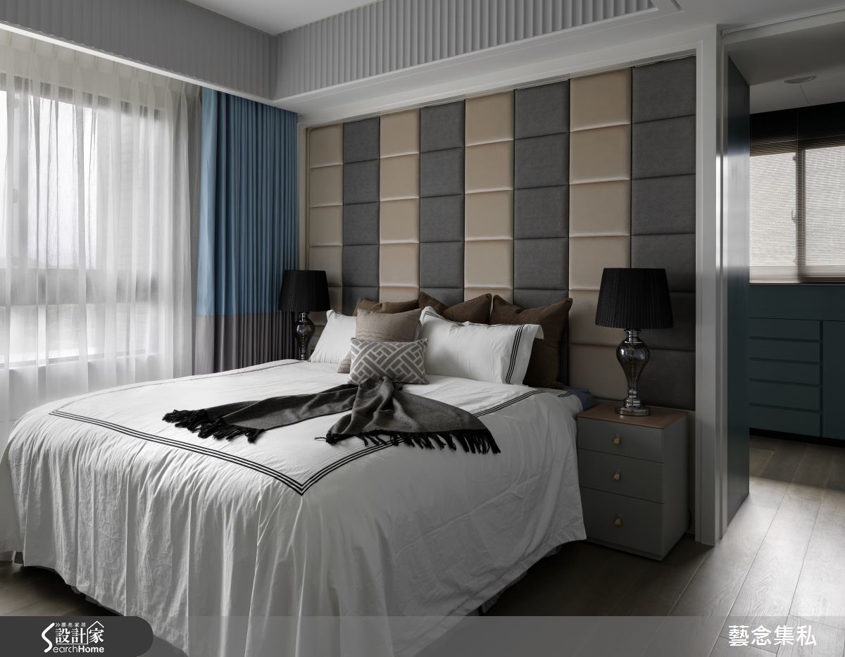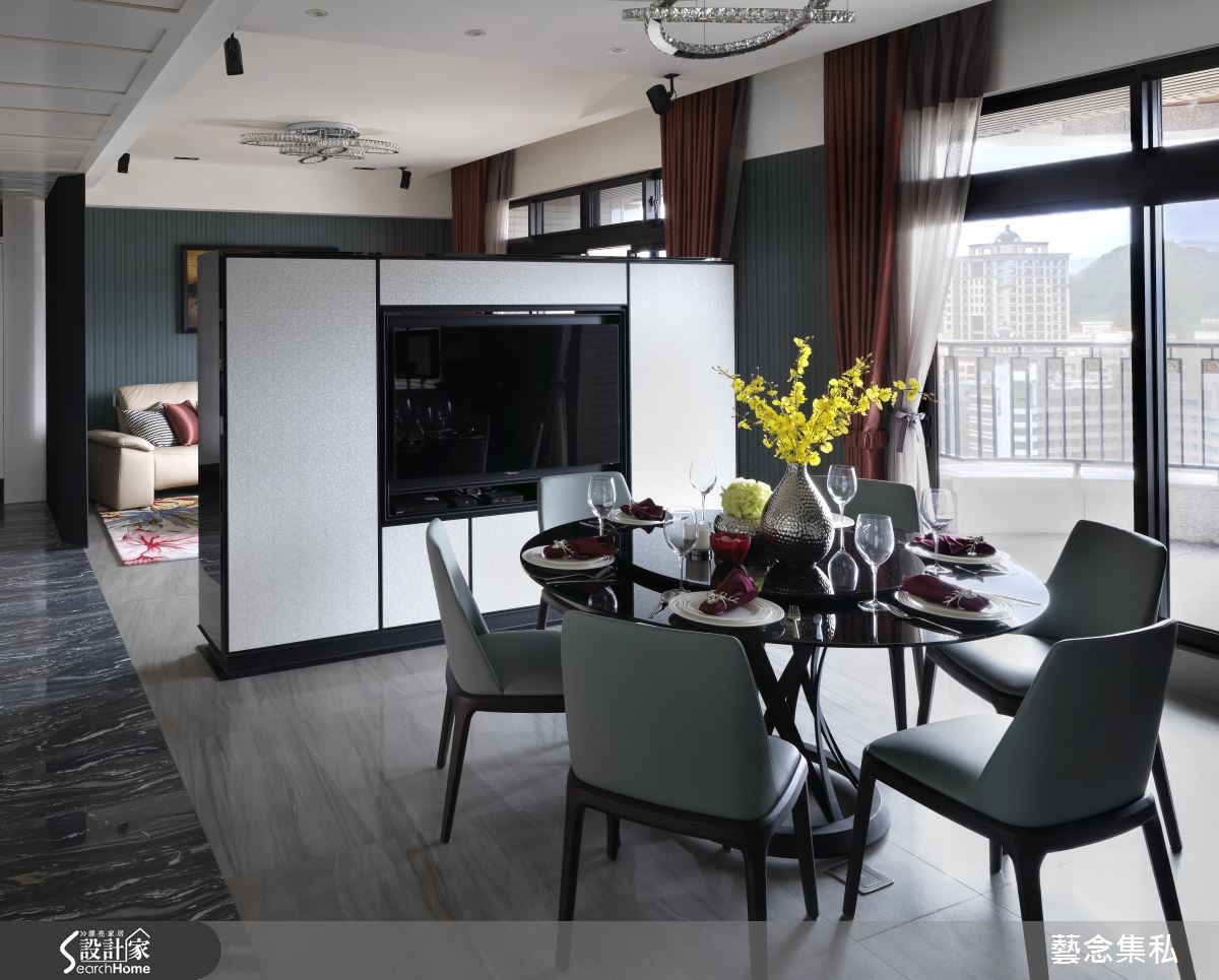设计师在了解屋主生活喜好后,让空间整体呈现稳重大器风范,仅局部点缀重点色彩,透过合宜的软件与家饰铺排,打造带有法式感的优雅居家表情。【自然石材混搭营造穿透感层次】玄关地坪铺设天然石材,展现开门见山的时尚品味,并规划铁件屏风,注入屏蔽效果与展示功能,营造带有穿透感的视觉层次;客厅则融入醒目的跳色软件,在壁纸、窗帘陪衬下,释放出无违和感的跳色美学;并配置一面不做满的旋转电视墙,保有客餐厅之间的流通间隙。【形塑收藏精品的绝美空间】餐厅旁则规划九宫格展示柜,以此呼应玄关隔断设计,并作为收藏精品的陈列空间,一旁采以落地窗引进采光,且建构可眺望景致的休憩阳台,让室内外视野获得串联,达成美好延伸。主卧内,则局部妆点浅蓝色调,于床头规划绷皮与绷布相间,将年轻气息与优雅成熟完美揉合,并可从床头后方导引进入更衣室,配置实用收纳柜体,实现机能、美感兼备的梦幻空间!