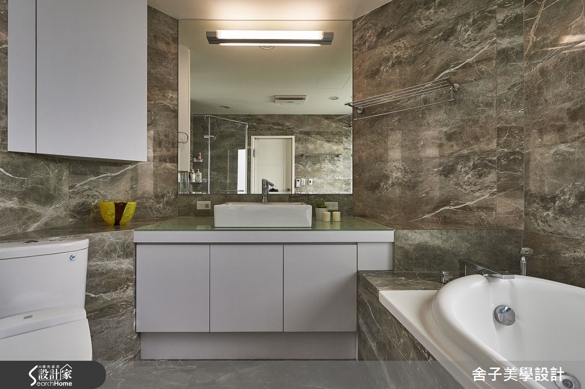 每一个卧房皆以酒店式概念进行设计,目的就是为了要给予屋主一个放松惬意的舒眠空间,低调且富有质感的设计,体现在灯光与置物等细节,包含摆放行李的位置以及与沉稳色调相配的质感灯饰。以天然石材打造的卫浴空间,则提供与五星酒店无异的场景,给予居住者完善享受。