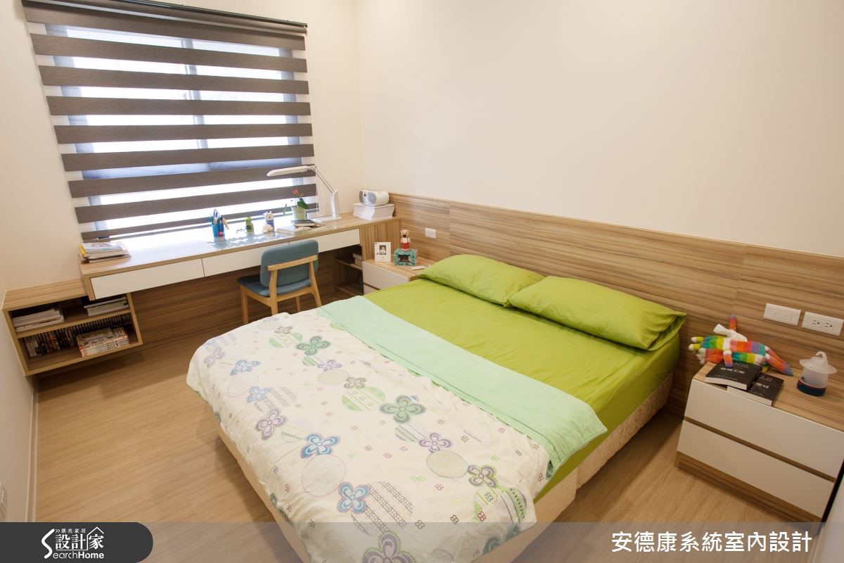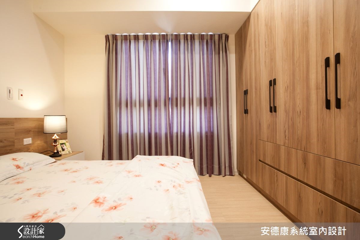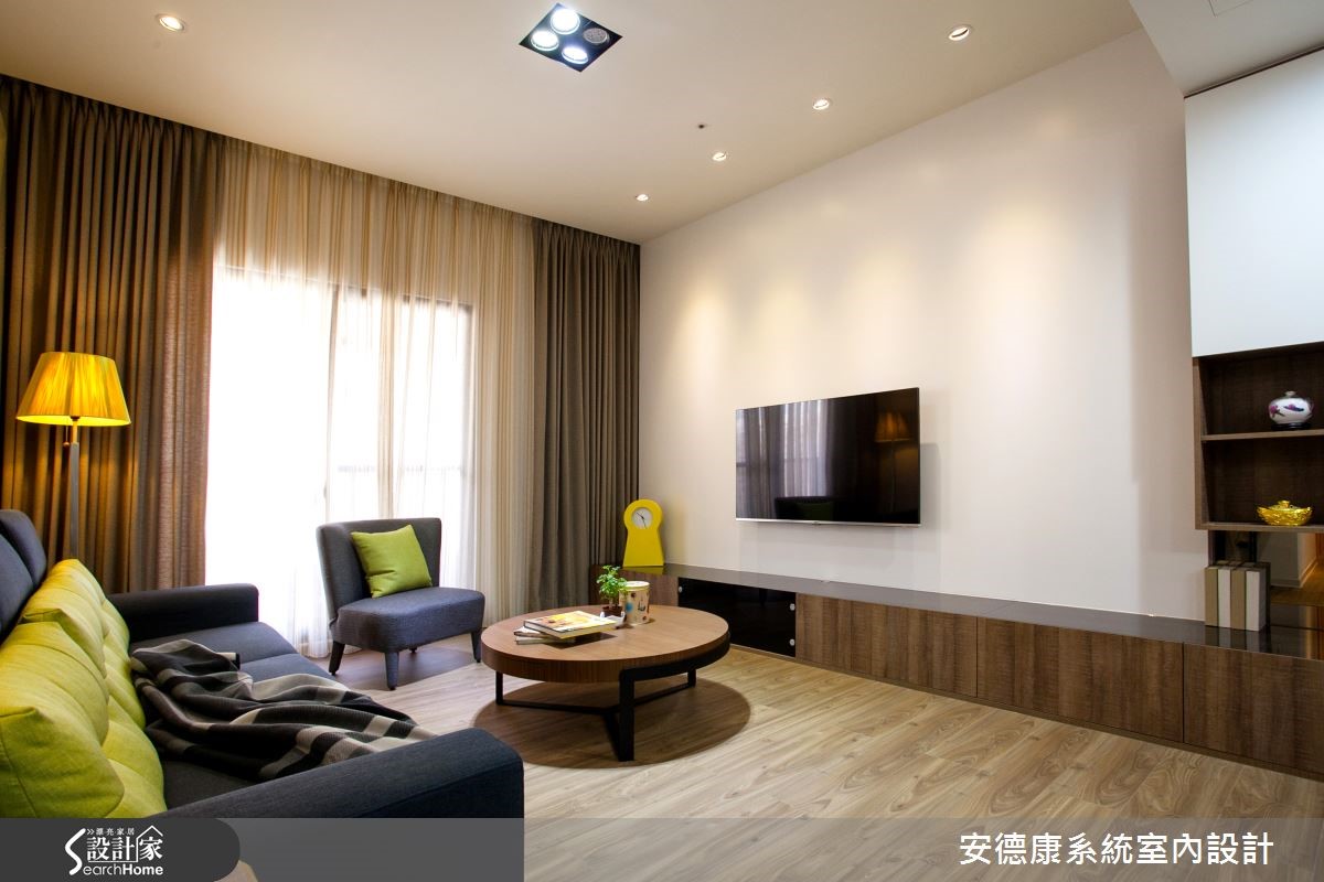 以舒适的纯白与木色作为空间的底衬,换得一室无压清爽。这间93平方米的屋主偏爱简约现代的清爽调性,希望下班回到家便能将繁忙的工作压力抛诸脑后,与家人一起享受温馨生活。 【善用天花造型,明确切分各领域】原本室内洒水头和大梁贯穿,让天花看起来相当有压迫感。设计师在大梁旁利用吊隐式空调所需的主机位置,妥善地将不同领域区分,也提高了天花高度,在视觉上带来放大效果。客厅电视墙选用白色烤漆,除了展现光泽和质感,清洁及保养上也比较容易,。屋主也相当在意的收纳空间,则在玄关、客厅及餐厨区以系统柜做规划,选色搭配原有的超耐磨地板,选择深棕色柜体及白色门板,局部柜体嵌入茶镜,以镜面的反射效果延伸空间感。