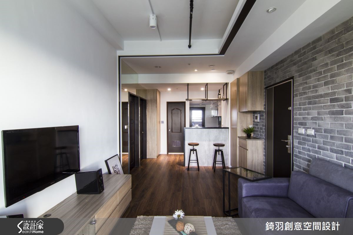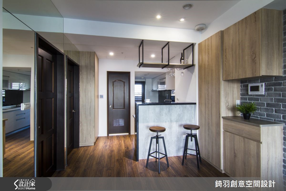 设计师将屋主的兴趣与居家完美融合,让简约温馨的氛围进入这间小户型的空间中。无论压力有多大,只要回到家,就能卸下一天的疲惫,沉浸在安稳静谧的空间里,享受疗癒的时光。【融入屋主嗜好,造独特视觉】设计师別出心裁,将屋主閒暇时的海钓兴趣,巧妙注入室内设计中。以钓竿甩动的意象作为概念,搭配屋主个性,进行客制化设计。设计师保持原有格局,仅利用玄关处的吧台设置,分隔左右区域。另外,以黑镜延伸至天花上方,再以窗帘盒造型收尾,代表了钓竿的流线形象与拋甩动作等意涵。粗犷的灰质文化石与天然木纹达成色调平衡,并衬托出自然气息。简约主臥搭配柔和灯光,营造宁静氛围,并额外结合书房功能,无论是阅读或休憩,皆使人身心舒畅