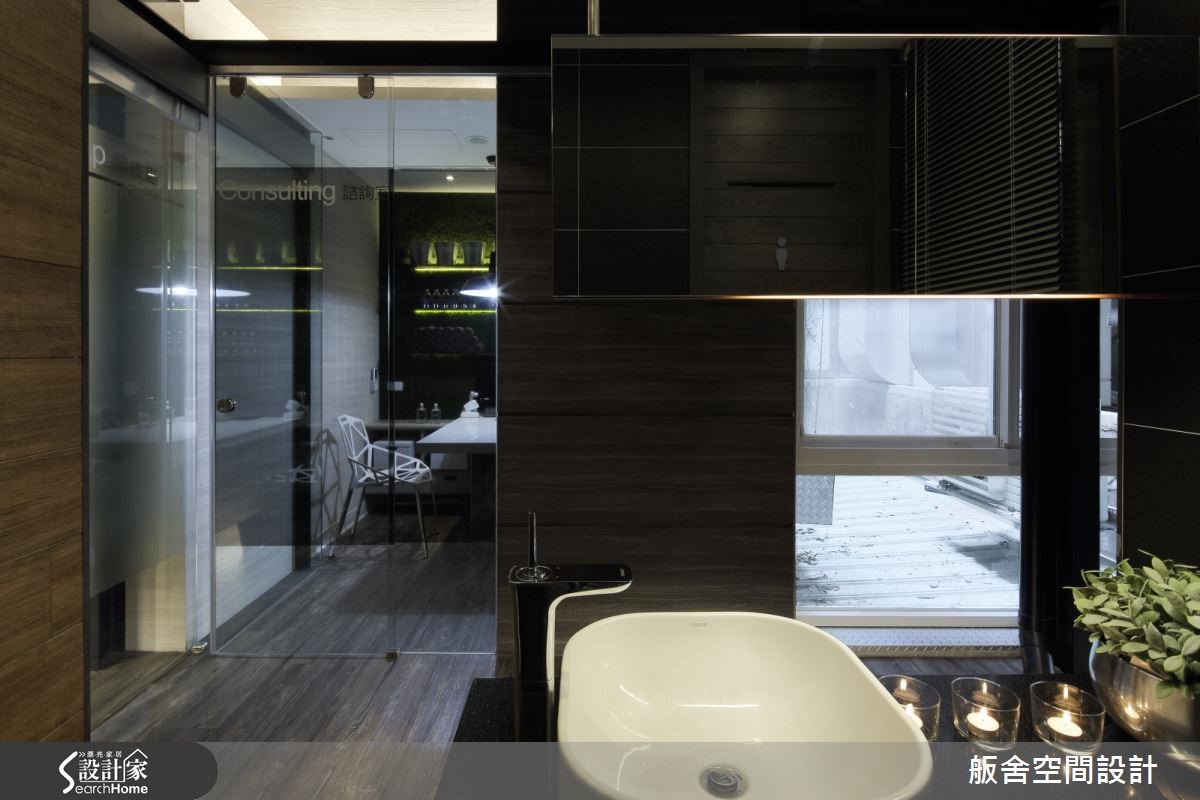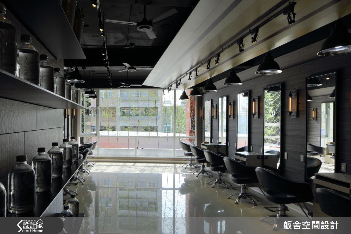 拥有百年历史风华的老建筑,在设计师的巧思下脱胎换骨,摇身变成时髦现代的工业风发廊,3米7高的天花刻意保留旧有模板原型,深沉细腻的用色与材质安排,让岁月的流动在过往与现在之间写下交集,承载每段故事的情感轨迹。 【金属材质,打造个性工业风】落地窗外种植一排桂竹,在微风中轻轻摇曳,翠绿身影与光影交相错落,透过窗景映透室内,宽敞空间中以长型木皮飞板与轨道灯引领视觉动线,空间规划依照营运需求,分别为造型设计区、咨询区及SPA区,创造领域的序列层次。连结一楼与二楼阶梯揉合刚性与柔性元素,以进口塑料营造金属质感,侧边壁面贴覆人工草皮,并加入光带,导引向上延伸的动线。咨询室与SPA区则以中性调性为设计重点,重视隐私性的空间在细节处做出变化,利用木纹壁纸及木纹砖的细腻质地带来宁静细致感受。
