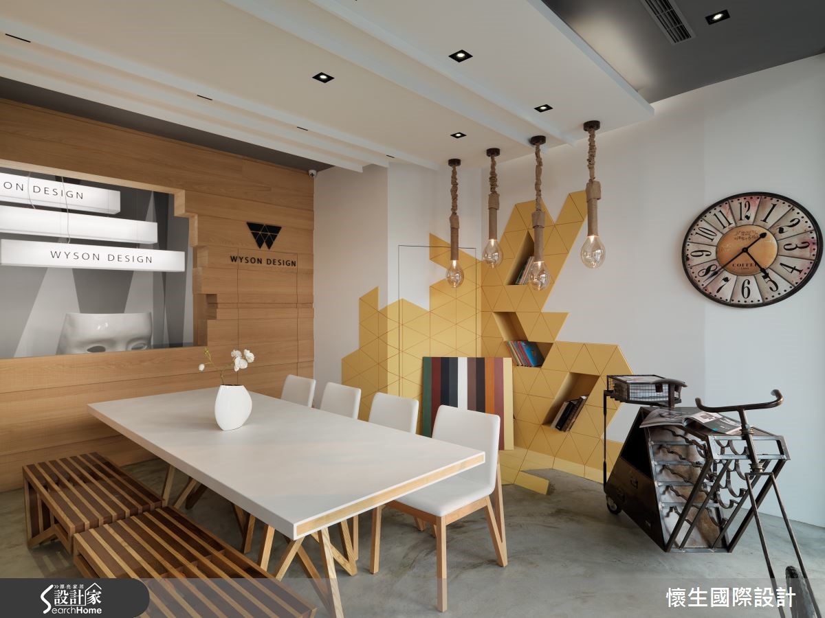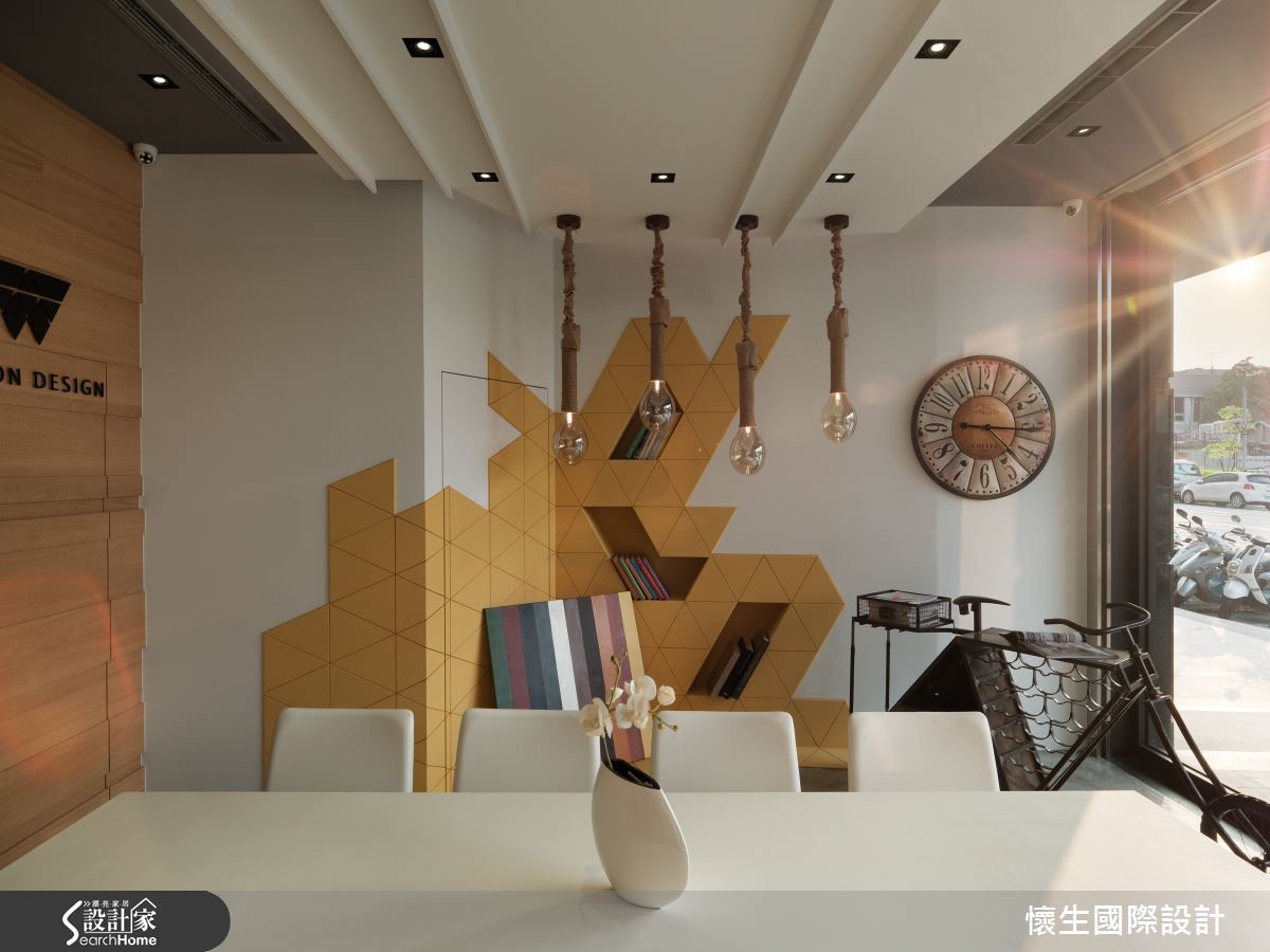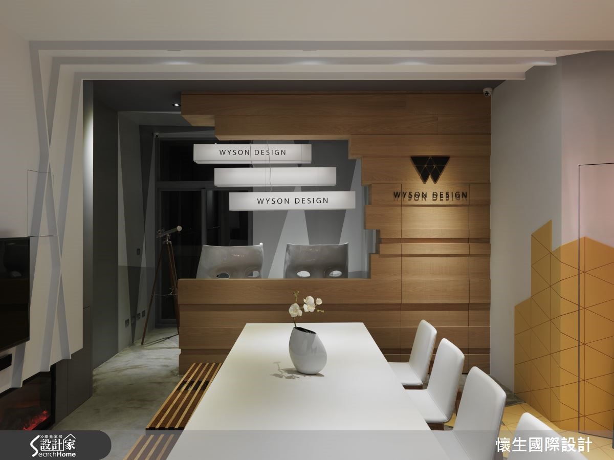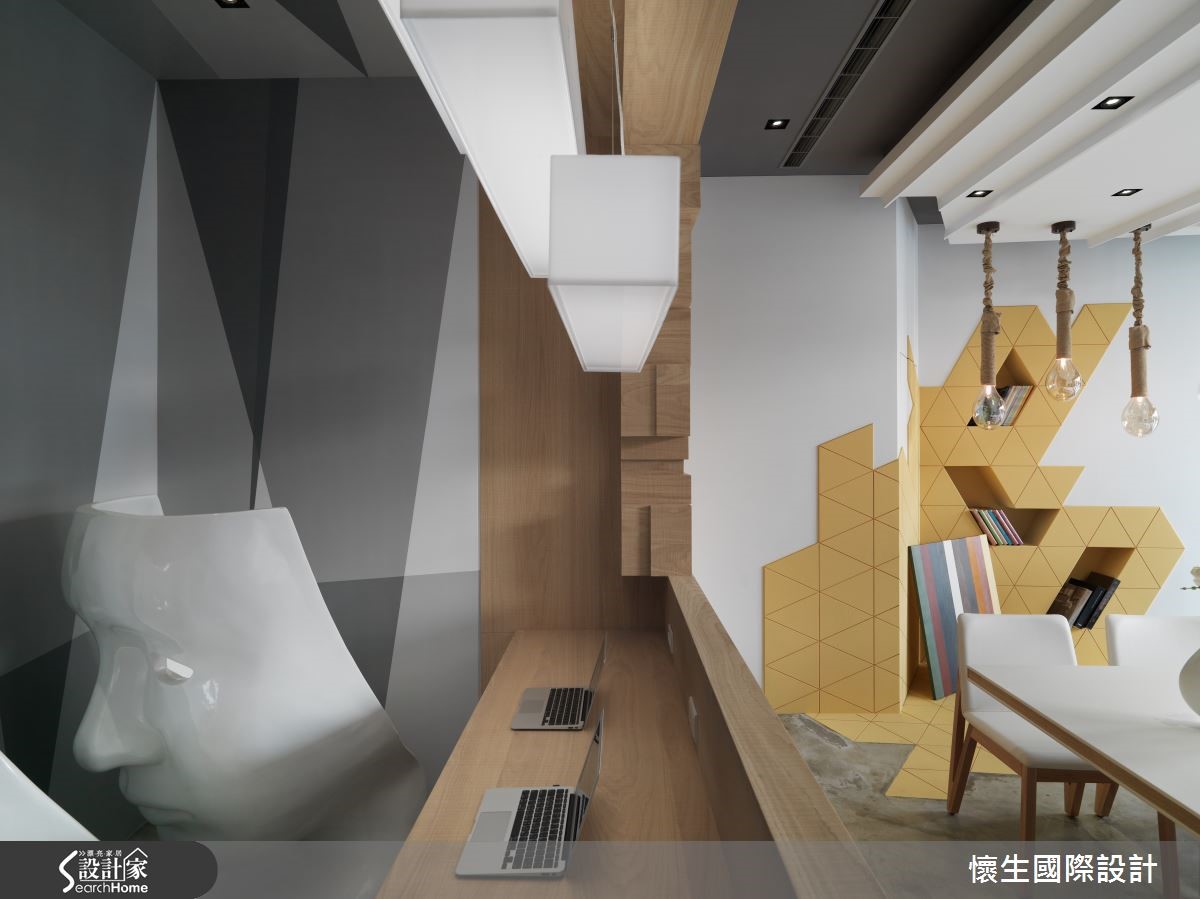 "设计,有如描绘素描般,每个笔画,即能使空间的画纸更添精致。"在设计师的工作室内,即可见这般灵动巧思,注入活泼的大胆线条创造现代风格,并透过个性软件妆点,贯彻空间设计的美学奥秘。【立体线条,融入现代极简意象】空间中透过白色立体线条,勾勒现代极简的设计主轴,让大片白色素材从电视墙向上延伸,包覆墙面与天花,形成流畅利落的视觉效果,同时加入悬吊壁炉规划,透过原木材质的随兴铺排,给予温暖自然的氛围。【鲜明色彩与软件,营造个性感】中央陈列的是造型办公桌椅,以几何状桌脚呼应空间整体,在活泼多元的图像中,达成平衡的线条观感,另侧墙面则修饰结构柱,替墙面做出转折角度,且让墙面兼具书柜展示墙,以鲜明色块、风格软件与造型吊灯,构筑独特强烈的空间画面。【灯具悬空设计,带来轻盈视野】柜台则以木质堆砌,以利落块状构成现代风格,并让灯具量体呈悬空设计,型塑轻盈视感,加以墙面线条与门框的揉合,构成延伸的美好景深!
