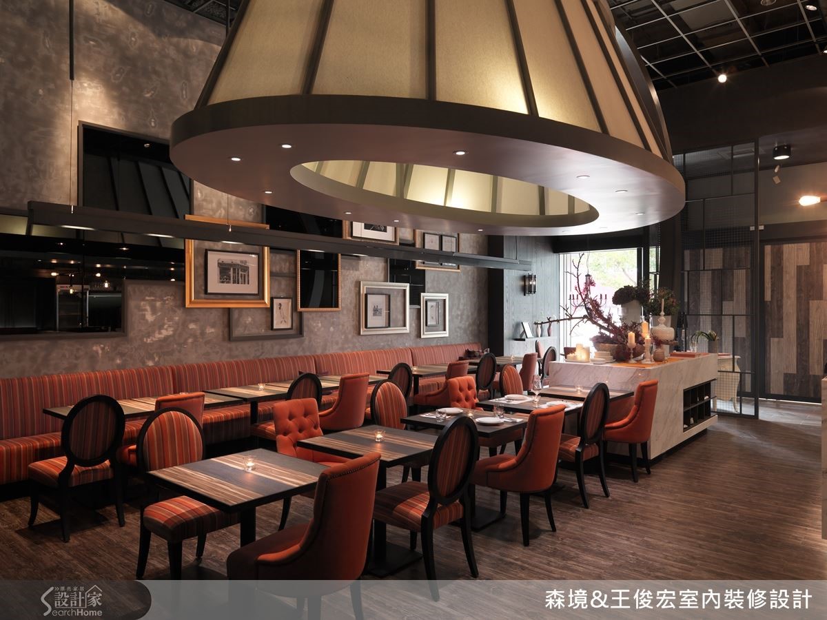 想让餐厅更有魅力,能夺取顾客的目光和青睐,用餐的氛围便是一大重点。这间意大利餐厅甫入门就能看见一盏巨型吊灯高挂正中央,创造冲击性的视觉。不论身处哪个角落,都能感受大型艺术灯饰的存在,成为餐厅的瞩目焦点。