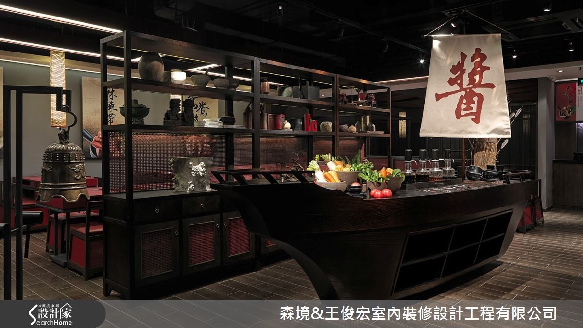 以上海一间火锅店为例,运用三国时代草船借箭的典故,呼应该品牌的名号,不仅创造吸睛的船型酱料台。整体材质、色彩,甚至软装布置,皆紧扣品牌概念。让顾客进到空间时,即能留下深刻的印象。