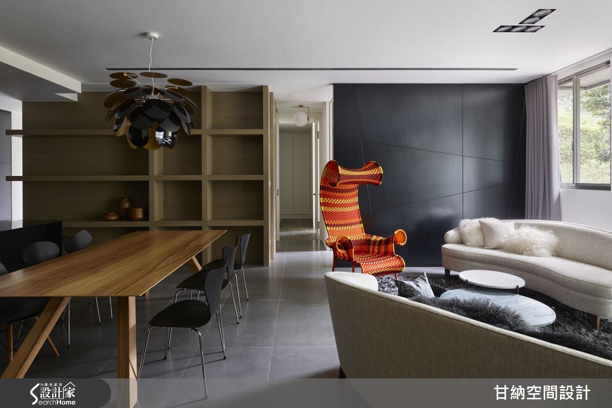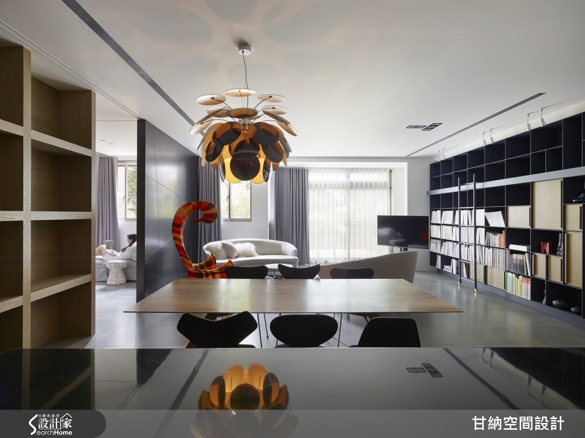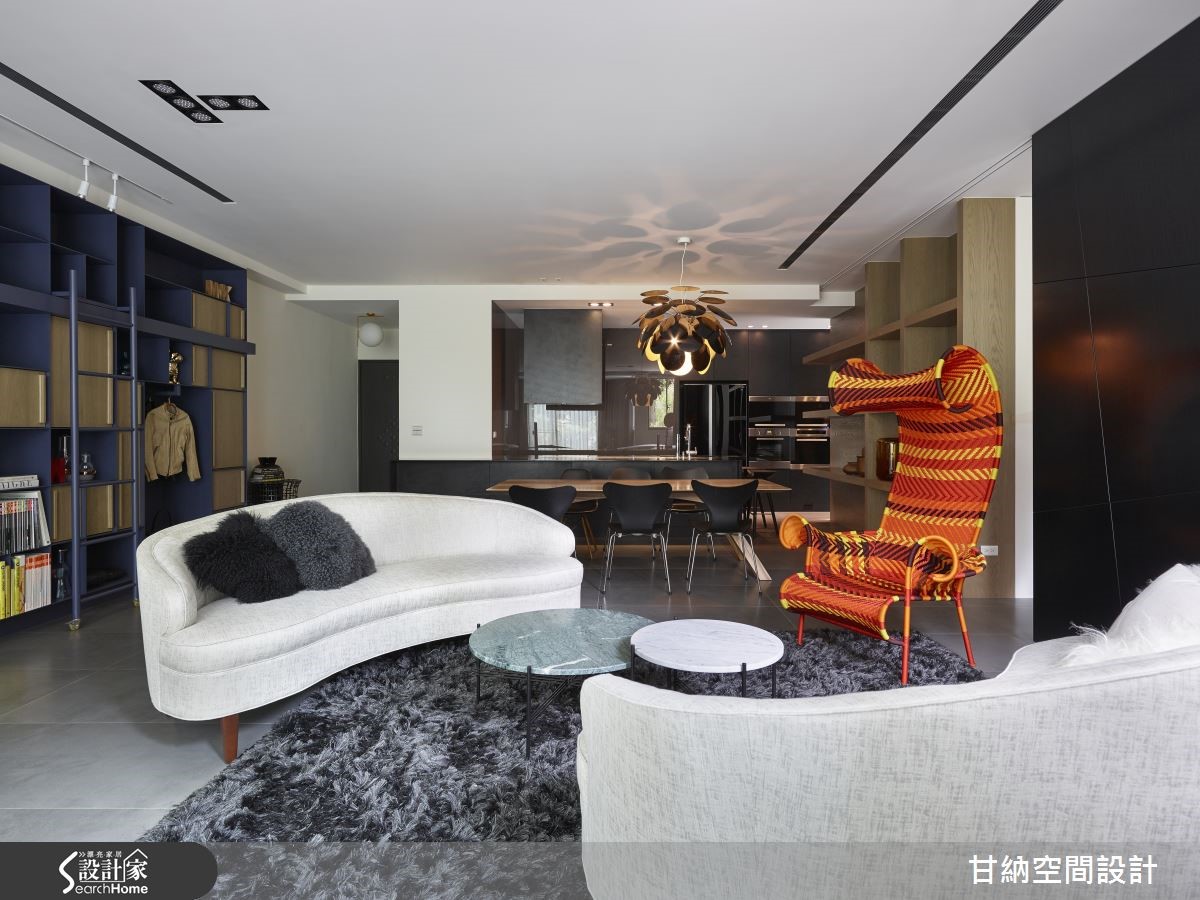 158平米混搭宅,是旅居在外的屋主夫妻在台居所,期望空间可舍弃拘谨模式,带出度假的闲适况味;于是设计师将原格局的4室变更为2+1居室,使更多空间回归公共区域,满足屋主与亲友的聚会需求,同时让场域兼具更多弹性,让未来生活充满更多可能性。【黑白灰家具陈设文雅风情】整体厅区以开放式手法做规划,延展居家的宽敞度,采黑白灰作为空间主调,并适时加入跳色柜体与家具,藉由不同的铺排方式,创造视觉亮点,同时配置一扇黑色铁件订制的大滑门,相邻处则是木作柜体,用以区隔工作室场域,并串联起客厅与餐厅。【蓝色无限大收纳柜体】前方则规划一深蓝色展示主墙,藉由开放与结合门片来表述柜体形式,提供不一样的收纳巧思;主卧则挹注渐进式的生活动线,让居者可无拘无束地享受空间,且以窗户引进风景,让房间洋溢着宁静安逸的闲适感受!