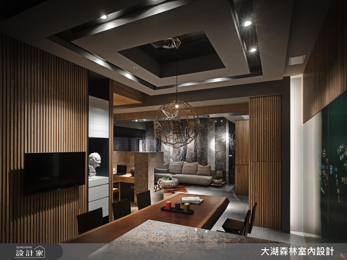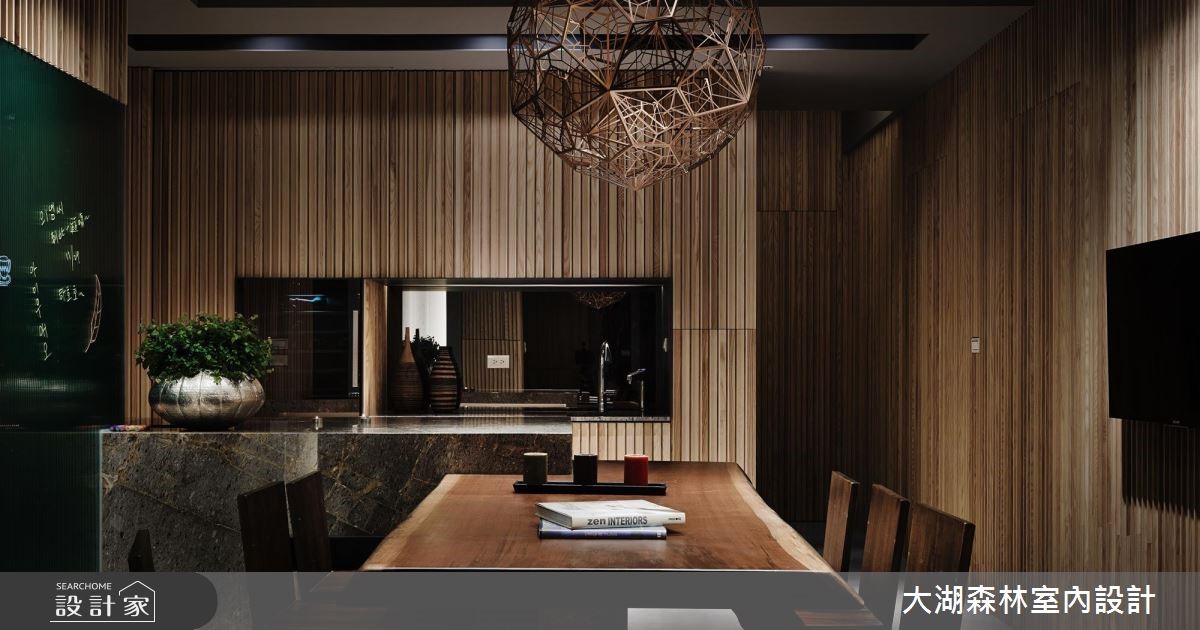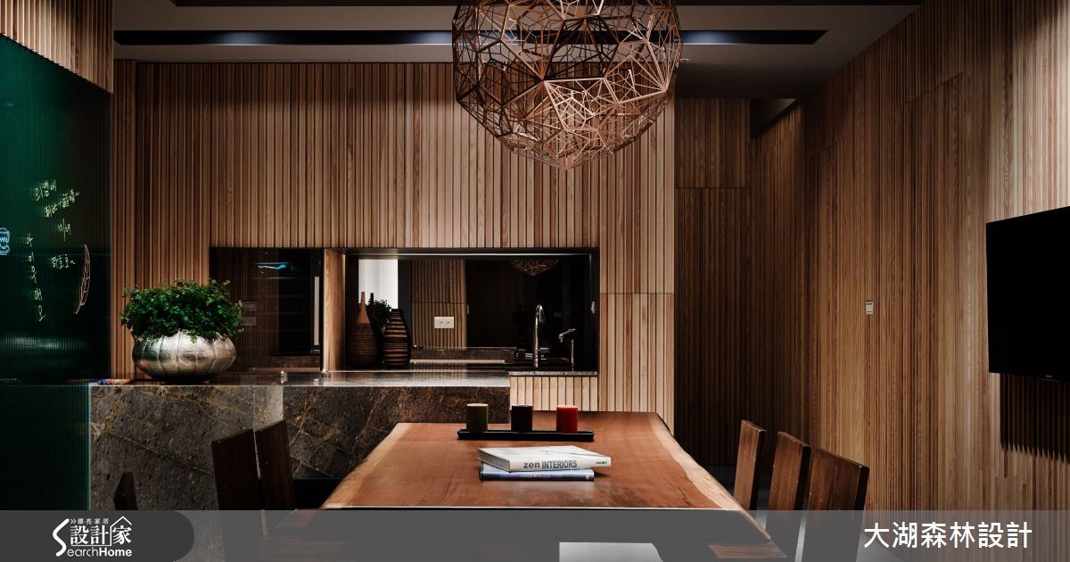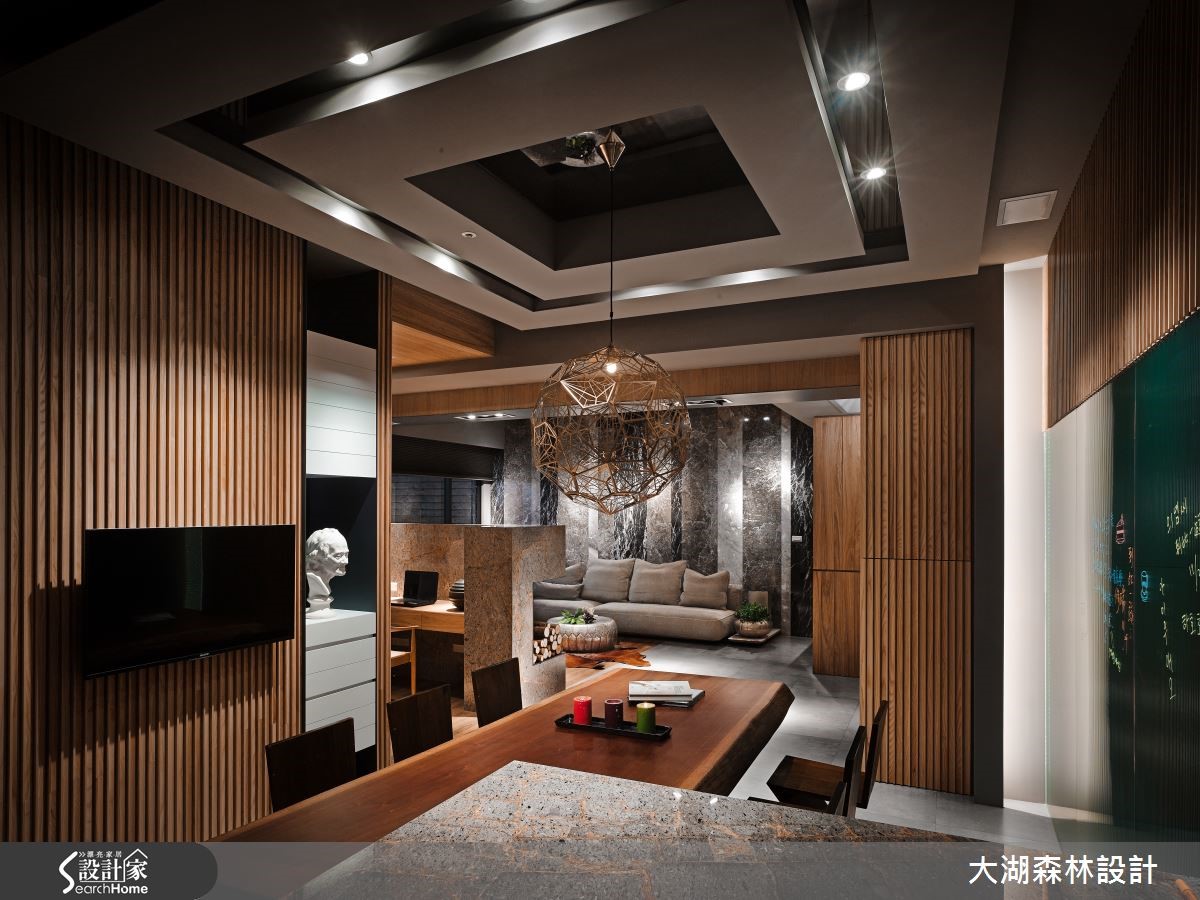 136平方米的二手房,设计师节制过于华丽、繁重的设计,于空间内注入冬暖夏凉的温润木质,辅以天然石材与线条妆点,并给予大量的隐藏收纳空间。让居宅在朴实美感之中,亦兼具了实用的生活机能。【垂直木皮,创造丰富视觉】空间中以水泥粉光地砖拼接温润木地板,同时于墙面加入垂直线条与木皮天然纹理,达到装饰与视觉扩张作用。且在墙面规划内凹的展示空间,透过镜面背景延伸视野。在拉长景深同时,也运用陈列艺品展现生活品味。客厅则规划一面石材背墙构成视觉焦点,以天然纹理呈现不矫情的风格样貌。而客厅、书房之间以半高电视墙区隔,形成通透连贯的居家视线。餐厅则让木制餐桌从石材桌台延伸切出,形成简约比例。卧室空间依旧延续木作、石材的完美结合,型塑休闲感受,并在墙面规划层层堆叠的展示小格子,不只具有实用收纳功能,更增添了视觉趣意。
