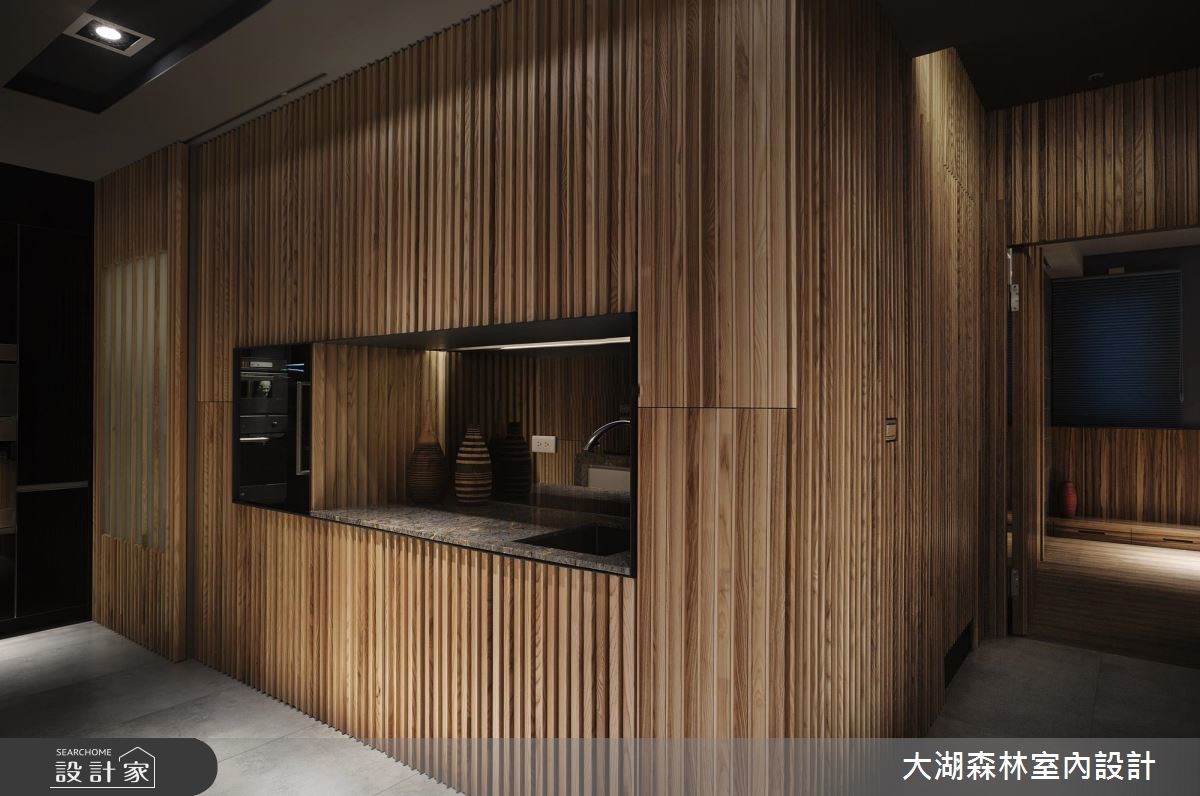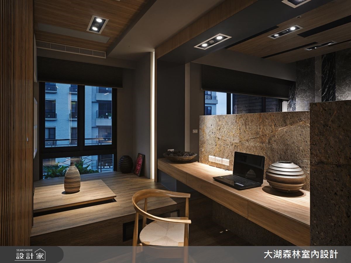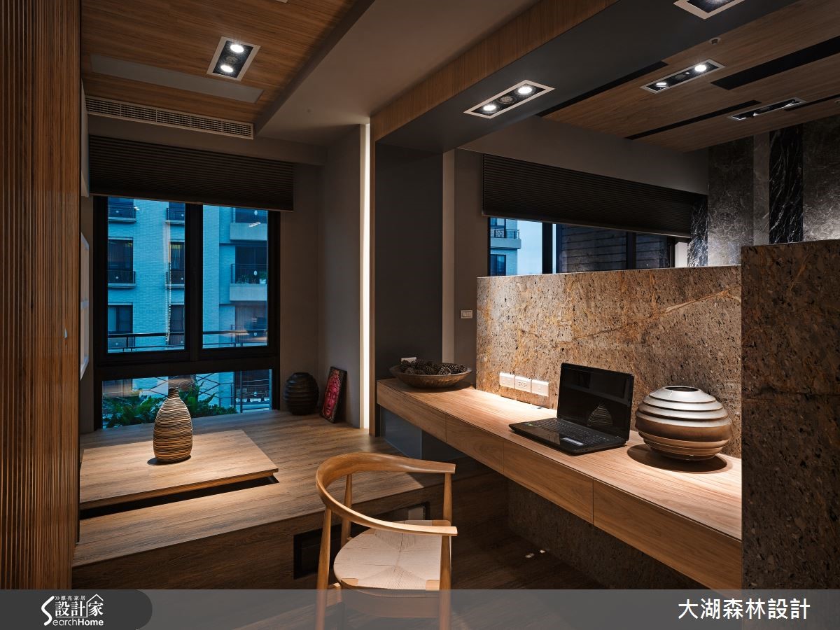 136平方米的二手房,设计师节制过于华丽、繁重的设计,于空间内注入冬暖夏凉的温润木质,辅以天然石材与线条妆点,并给予大量的隐藏收纳空间。让居宅在朴实美感之中,亦兼具了实用的生活机能。【垂直木皮,创造丰富视觉】空间中以水泥粉光地砖拼接温润木地板,同时于墙面加入垂直线条与木皮天然纹理,达到装饰与视觉扩张作用。且在墙面规划内凹的展示空间,透过镜面背景延伸视野。在拉长景深同时,也运用陈列艺品展现生活品味。客厅则规划一面石材背墙构成视觉焦点,以天然纹理呈现不矫情的风格样貌。而客厅、书房之间以半高电视墙区隔,形成通透连贯的居家视线。餐厅则让木制餐桌从石材桌台延伸切出,形成简约比例。卧室空间依旧延续木作、石材的完美结合,型塑休闲感受,并在墙面规划层层堆叠的展示小格子,不只具有实用收纳功能,更增添了视觉趣意。