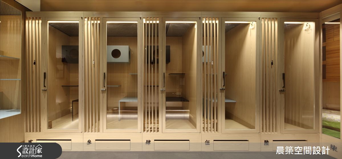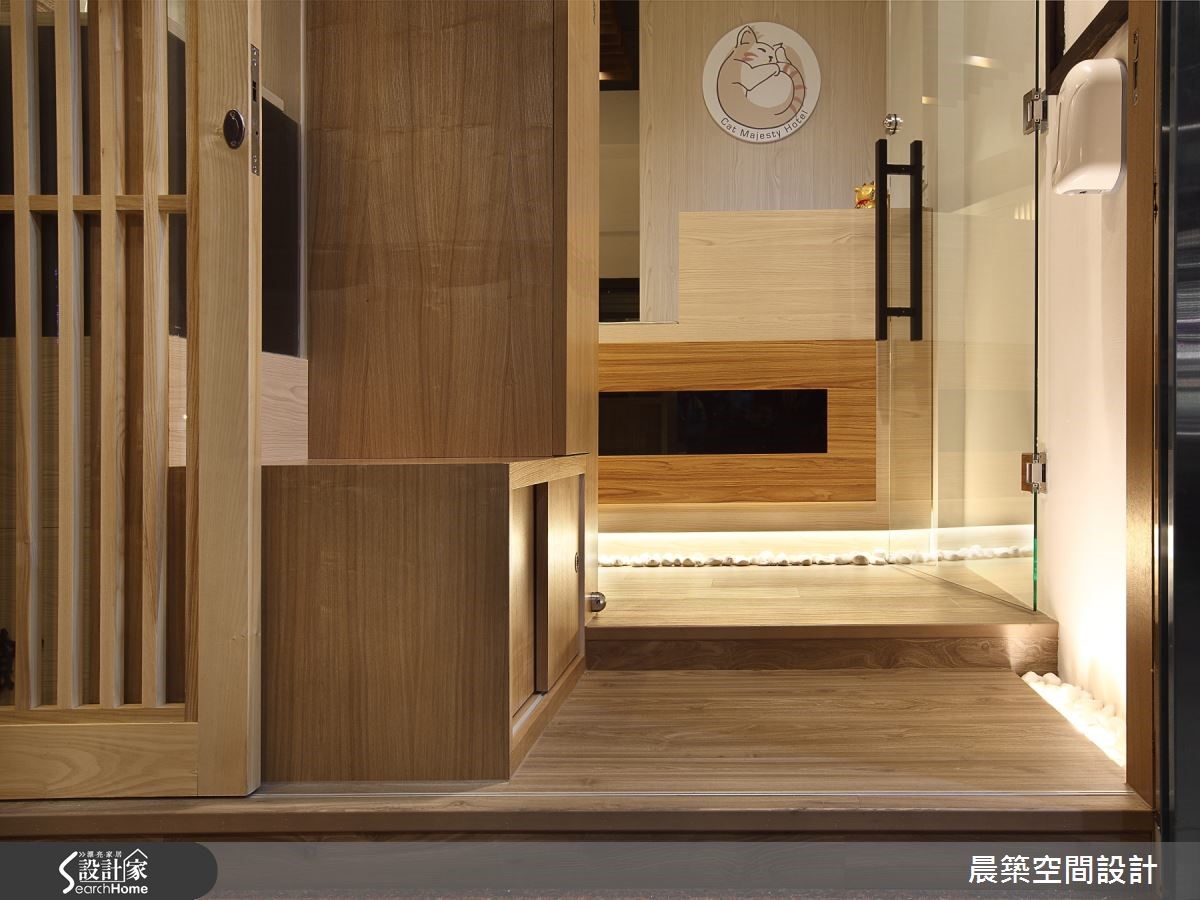 必须出一趟远门,却又担心家里的猫主子没办法照顾吗?随着宠物寄宿的需求逐渐增加,也有越来越多的宠物酒店开设,本案洋溢着浓厚的日式风情,以温暖的灯光点缀,即使无法亲自照料,也能让猫咪享受轻松的假期。【大量木作铺陈,造疗愈气息】从门口处的玻璃展示橱窗,便能窥见猫咪们快乐玩耍的模样,拉开有著日式风情的格栅推拉门,玄关墙面加上日本古建筑特有的窗饰,有来到京都酒店的古意情怀。向内继续走入,迎面而来的舒适木质氛围,以温润色调和淡淡木香,漫溢在长型的空间中,舒缓猫咪怕生的紧张心情。每个房间皆独立区隔,保有猫咪独处的空间,透明玻璃门片方便照顾者随时观察小猫们的活动状况,加上猫跳台和小山洞,为其营造垂直的活动动线,让猫咪们自由穿梭其中,开心玩耍。