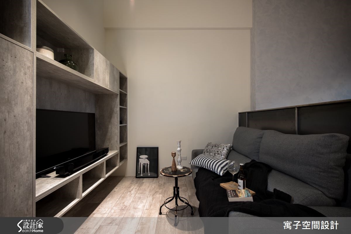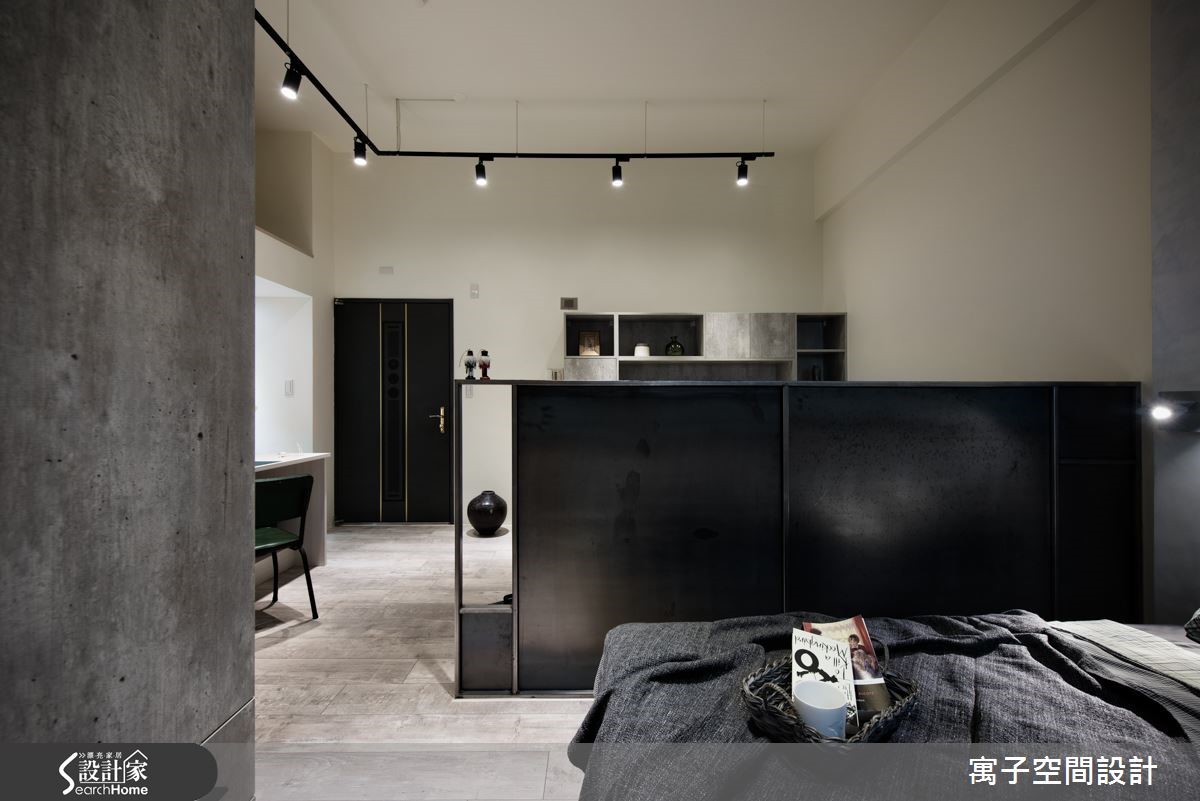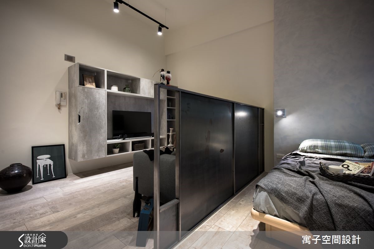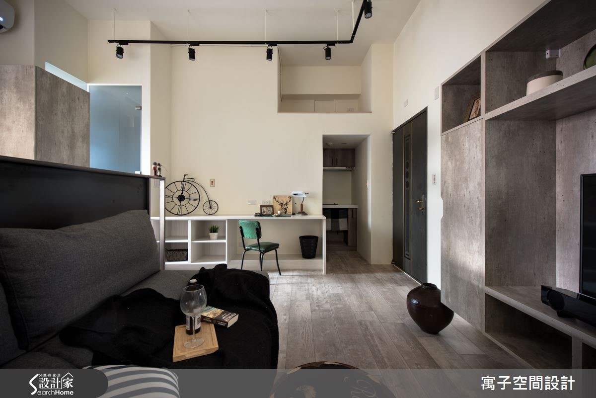 设计师在拥挤的都市精华地段中,为30平方米的老屋空间重新改造,利用灰白色调与木纹地板,呈现粗犷中带有清新的轻工业风格,为单身女屋主钟爱的工业风,做出更加细腻的诠释。【雾玻璃和灯光辅助,更添明亮】进门即以长型多功能柜体作为入门视觉,提供收纳与阅读等复合机能,并利用雾面玻璃巧妙援引光源,配合开放设计与单纯色调,进一步扩容空间。利用错落的灰白色块接壤与L型轨道照明,以不同的灯光角度,为每一道墙面与艺术装置打造光影表情。客厅与卧房之间以未上保护漆的铁件区隔,随时间的自然锈化,产生怀旧的复古气息。客厅电视吊柜以灰泥纹理质感的表面,与后方卧房墙面相互呼应。此外,设计师更利用系统柜规划独立厨,让机能更臻完备。