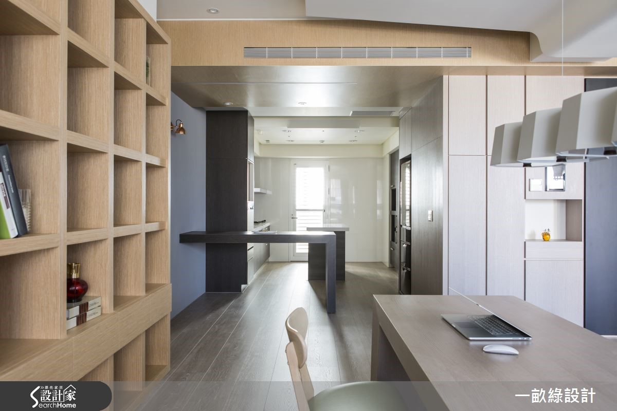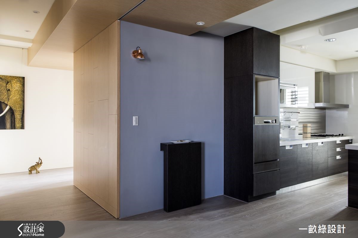 年轻的医师屋主对于简洁的现代风情有独钟,更希望能将居住动线及收纳机能纳入115平方米的空间中;于是设计师以大量温润的木质元素,比如超耐磨木地板、实木皮等,进一步注入机动式收纳,给予一家三口舒适的生活环境。【活动式吧台,发挥空间弹性】由于原有空间隔出过多房间,空间相对狭小;设计师将客房进行变动并重整动线,释出空间拓展餐厅及书房,用餐与阅读更加宽敞。长桌与沙发之间形成口字型的环状动线,使开放空间更显轻盈宽敞。令人惊讶的是,厨房吧台可伸缩抽拉,能作为临时餐桌,亦能收进储藏空间,回归宽敞的动线;在收放之间可随心所欲调度空间,并划分领域界线。内部储藏间则可将一家三口的各式物品藏于无形,更显利落清爽。另外,设计师善用色彩搭配及木质元素结合,将深浅不一的色调运用在家具、单品布置与墙面,搭配强化复合地板的纹理及格柜与天花的木皮,相互衬托得更加凸显品味;像是在主卧以木质床头与边几为主调,搭配色彩浓烈的家饰,清新中带有成熟韵味。