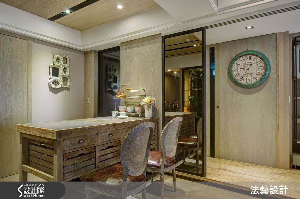在扰攘的城市中,总是期待能拥有一个只属于自己的栖息空间。126平方米的空间,利用大量的木色铺陈,传递休闲舒适的调性,再加入别致的家具装饰细节,打造出时尚、别具古典气质的混搭风住宅!【复古家具点缀,添古典韵味】开放式空间串连客厅与餐厅的宽敞自在,阳光由大面落地窗引渡入室,为木色增添温煦亮度。客厅沙发后方利用镜面延伸空间感,与木纹的交错参差,展现现代时尚与疗愈休闲感。餐厅处则以复古家具妆点,彷佛来到欧洲古堡,桌面下方加入收纳空间,更加增添使用的实用性。书房的书桌特意不做满,并在收纳层架下缀饰光带,显现轻盈调性,侧边打造飘窗区,柔和色调令空间更加舒适。