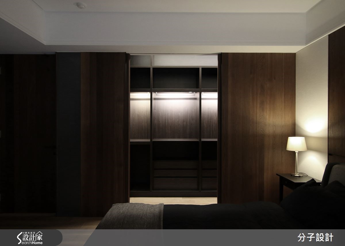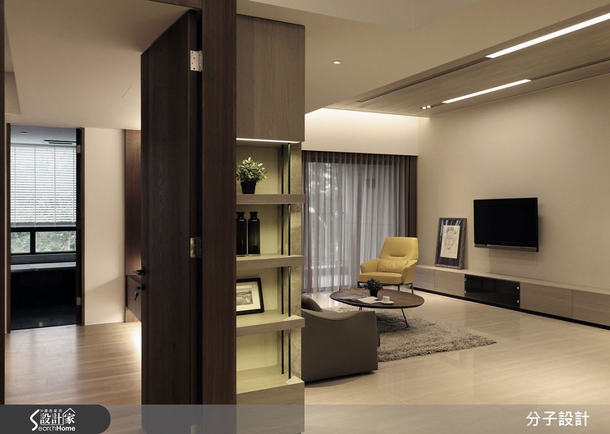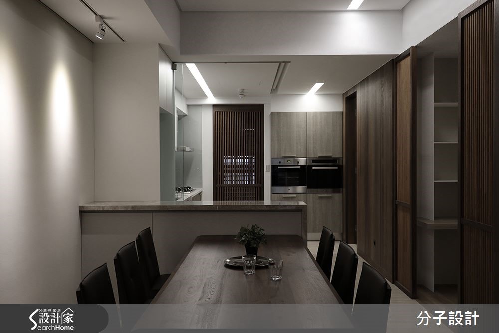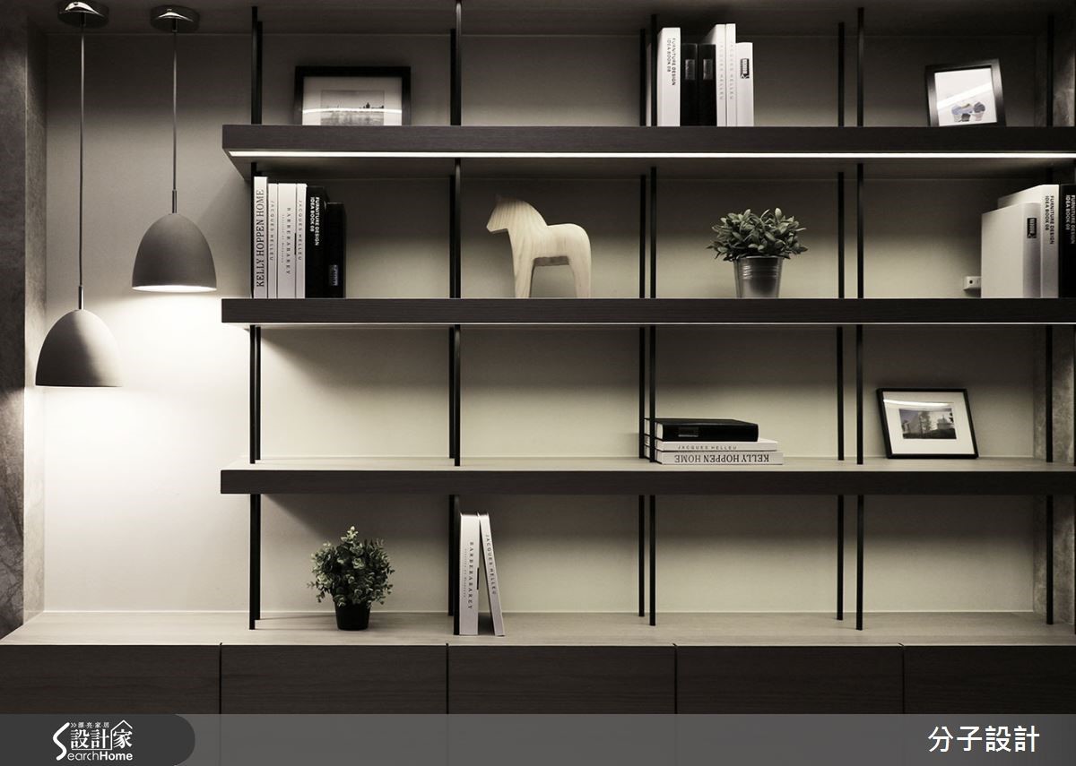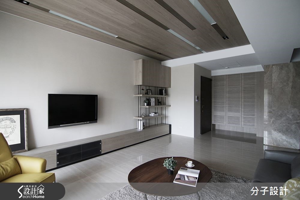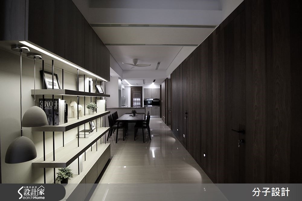 简洁时尚的现代风格,是许多屋主装修时所喜欢的样貌,利用石材、实木等材质交织,打造出既具有摩登风范,也不失舒适度的质感系居家。【温润木质,营造温馨生活气息】此案新成屋的屋况及采光虽然良好,但格局走向偏狭长,设计师利用木皮的温润渲染,将廊道门片隐藏,营造视觉一致性,大面积的深邃木色更盈逸人文气息,为一家4口创造舒畅生活。公共领域中创造多处展示柜体,在水平横列的隔板中加入垂直圆管铁件穿插,在利落线性中展露现代风的时尚之美。而房间铺设橡木地板,更衣室门片则沿用胡桃木材质,在柔煦灯光的照耀下,映照不同的深浅层次,漫延静谧而知性的氛围。