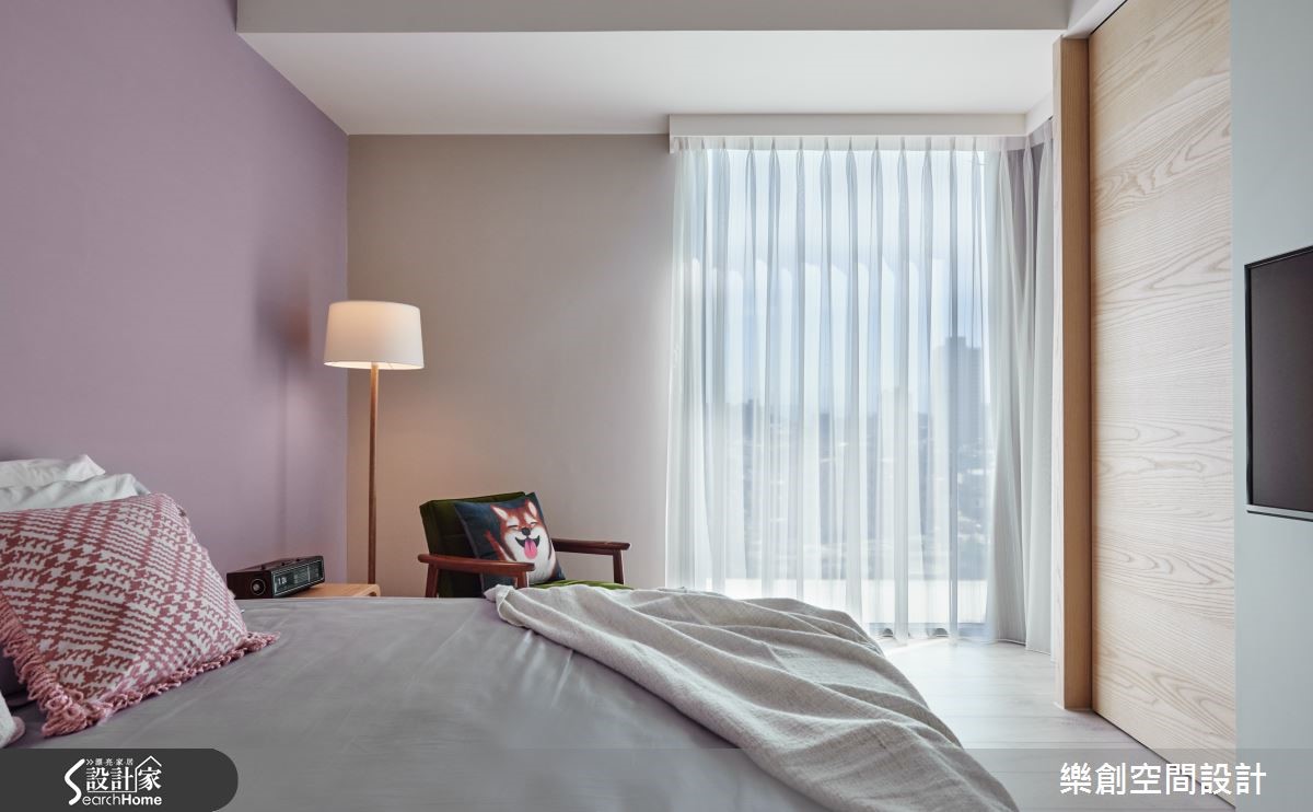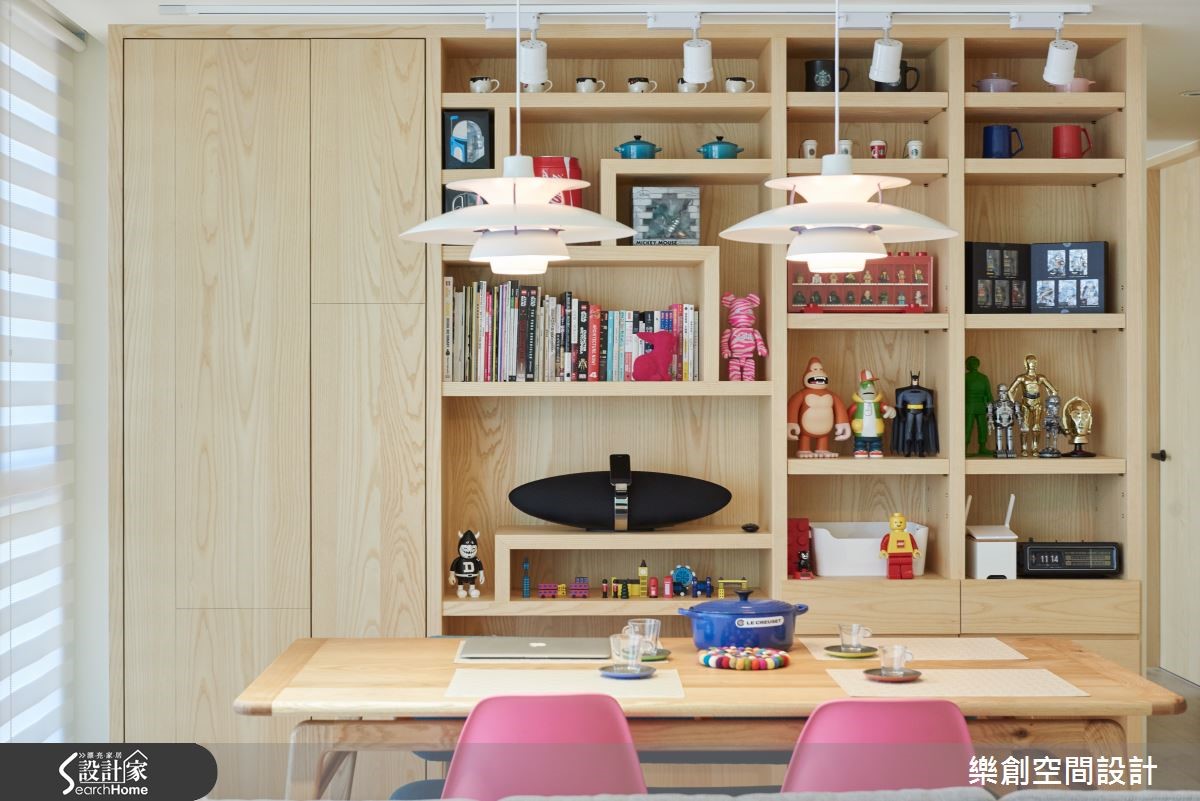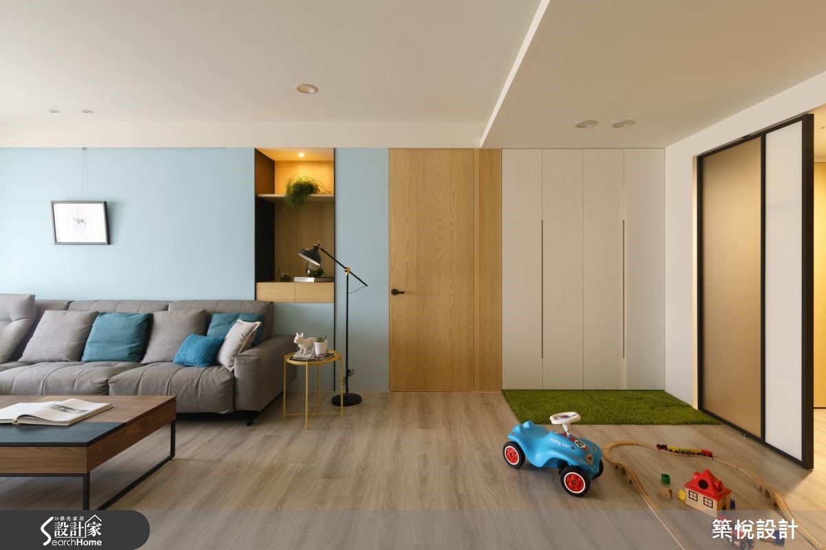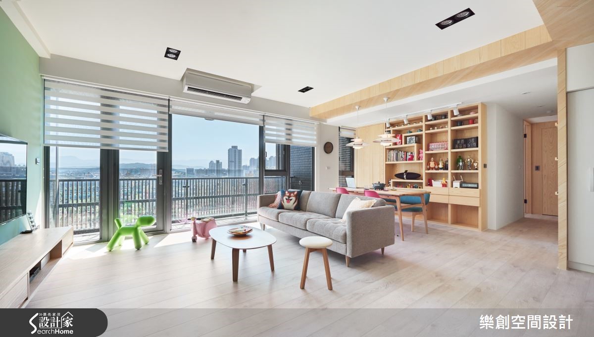 北欧家庭着重在"家庭欢聚时刻"上,设计师以此为设计主轴,利用大量的木质建材,为采光优良的 101平方米小户型,注入特有的亲密家庭氛围;并结合缤纷色彩的家具家饰,点亮温馨亲子情。【缤纷色彩点缀,活化空间表情】玄关设置仿板岩砖的超耐磨地板,以色调与室内空间做出区隔。穿鞋座椅上方特意设置圆柱形悬吊设计,搭配转角的落地黑板门片,相当具有俏皮的童趣精神。公共空间拥有充足采光,采全开放设计,让客厅、书房与餐厨空间的分配呈现简易的"品"字动线,仅以吧台为区隔,让全家人在公共区域的互动毫无阻碍,同时也符合北欧人"无私开阔"的生活概念。客厅的天花大梁以实木皮包覆设计,搭配色调轻浅的开放书柜,让温润的实木质感满盈室内,提升居家温度,草木绿绿墙面则更添自然气息。主卧与儿童游戏间延续公共区域的清新氛围,点缀紫外光和马卡龙粉色,营造清爽的舒眠空间。