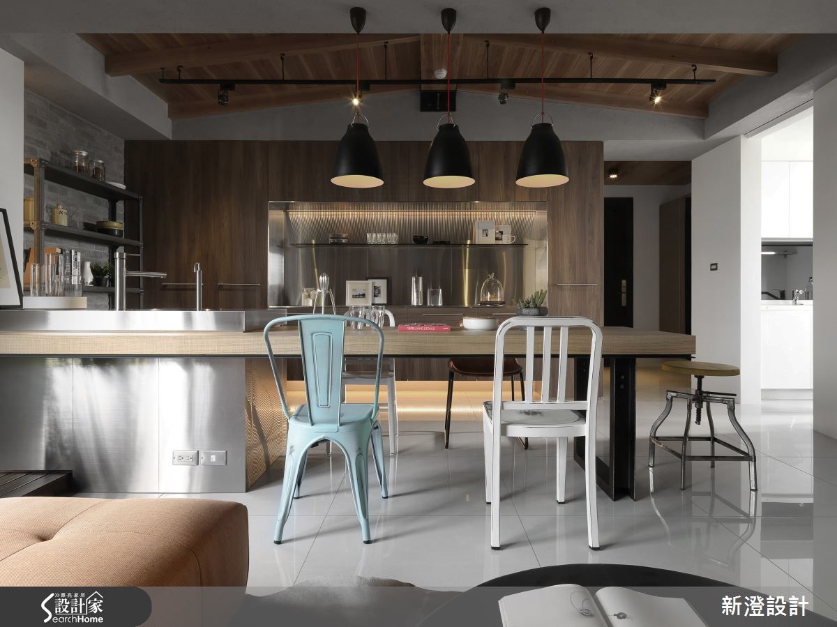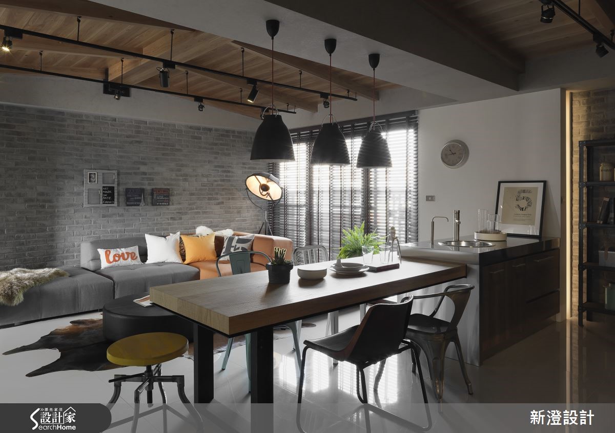 在此129平方米的居宅内,少了制式明确的风格,但却洋溢着疗愈舒适的况味;设计师根据使用者的习惯,定义自在从容的生活动线,让量体、软件随兴地铺排,但同时相互揉合成协调画面。【开放式吧台,增进交流互动】设计师保有场域之间的串联性,仅以简单量体作出区隔,像是于厅区配置长吧台,让客厅、餐厨享有交流互动,并透过灰色石墙、温润木皮阐述自然风情,局部妆点不锈钢金属或loft灯饰、单椅等带出自由气息。【简约灰质与木调,演绎沉稳时尚】沙发则呈跳色搭配,无形中呼应灰墙、木作色彩,维持不杂乱的稳定秩序;电视墙以整面白墙为底,两侧保有开口,底部与侧边结合收纳、展示机能,使立面表情轻盈不厚重。【以家具软件,塑造空间个性】墙面后方的多功能室,则充满自在慵懒的味道,低台度家具,赋予亲切舒适的低水平视野。卧房则给予清爽氛围,并融入个性化软件,如格纹床单、城市路牌挂衣架等,挹注独特的中性气质!