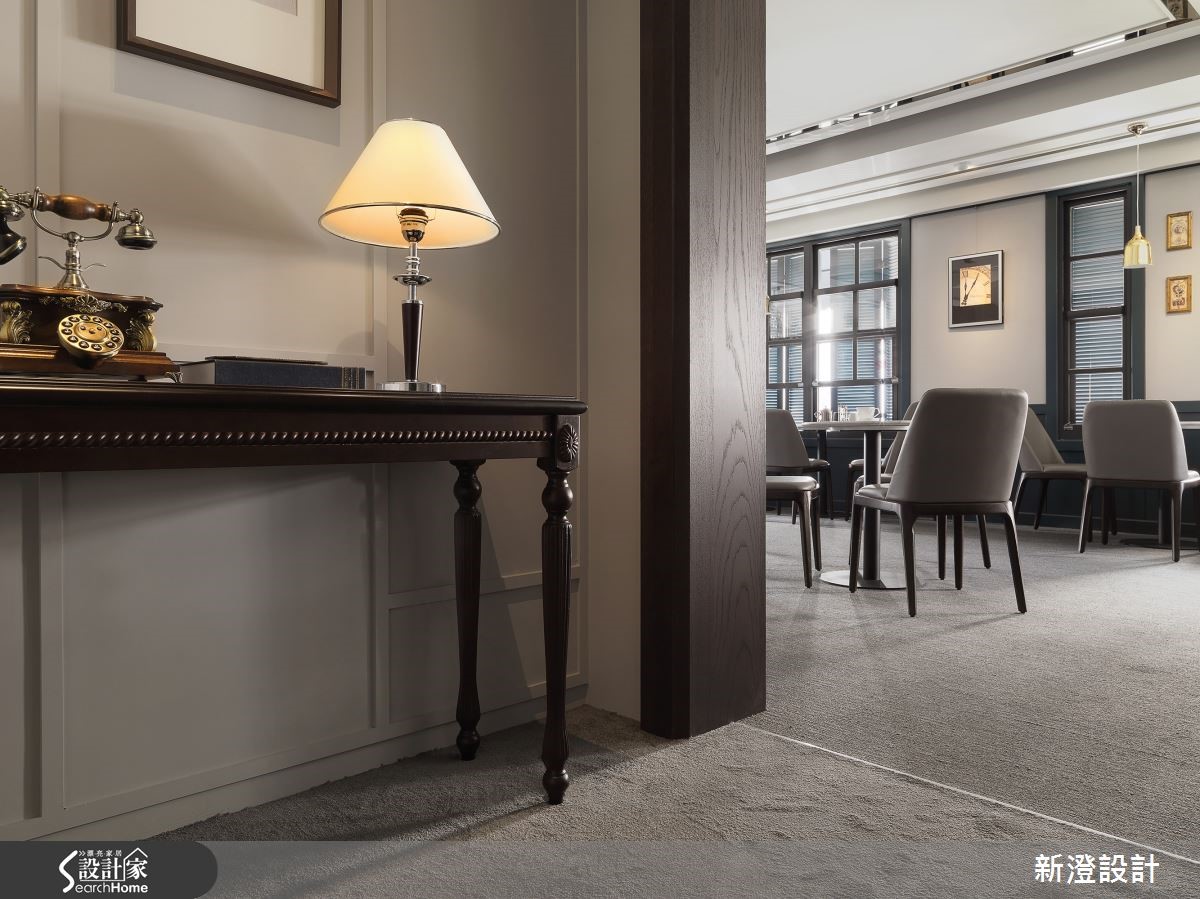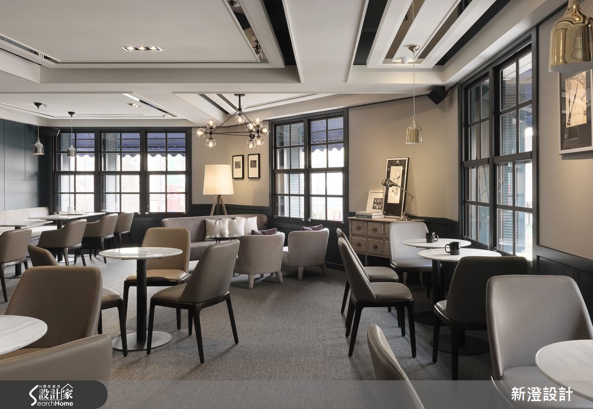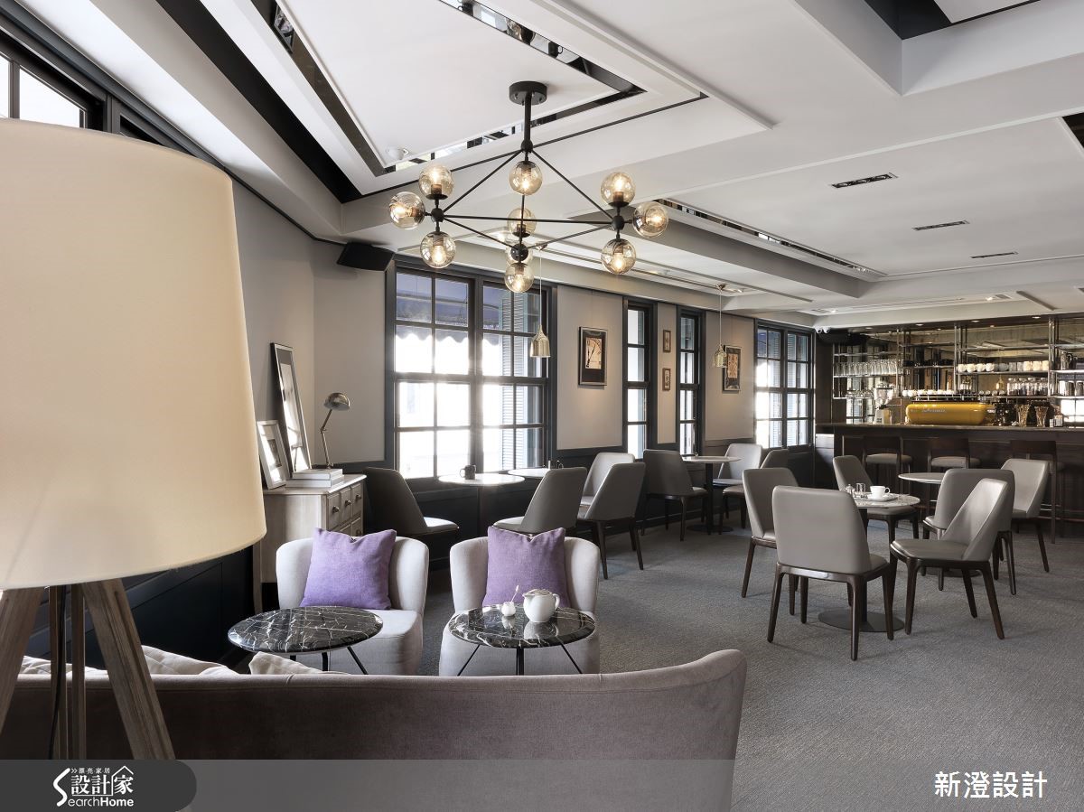 富有明丽田园风光的台湾郊区,竟也有着宛如身处法国巴黎般细腻典丽的建筑,以纯白与湛蓝的姿态向街道上的人们招手,演绎优雅高贵的法式风情。【复古建筑外观,型塑欧式印象】外观以大航海时代常见的大面积拱型窗棂与顶棚作为视觉亮点,外墙的雕刻与层叠的线条造型突显了细致韵调,并加入墙面灯光,在夜晚时闪亮彷佛贵族少女的珠宝盒。【以精品展示设计,精致陈列商品】一楼柜台区域延续了外部雍容典雅的湛蓝色调,陈列了宛如各色宝石的精致法式甜点,在沿窗区域摆放定制长型沙发与造型优美的纯白蛇型家具,在仿木纹地板的衬托下,流露法式宫廷氛围。【仿古欧风家具,营造法式风情】二楼为主要用餐区域,利用仿古家具与经典格状窗设计营造法式大使馆的复古气息外,同时利用天花的镜面线板与现代灯饰平衡怀旧感,窗边木作吧台更散发慵懒闲适的欧式情调。