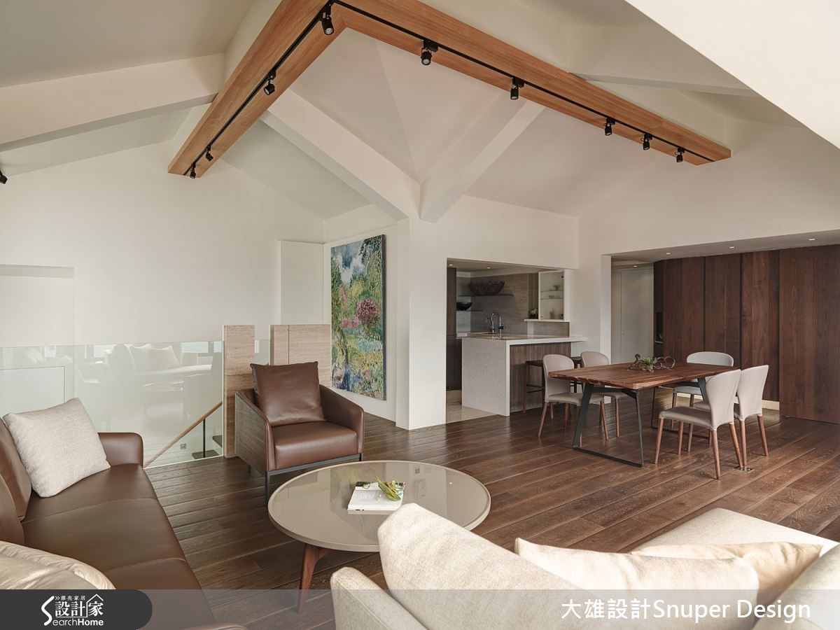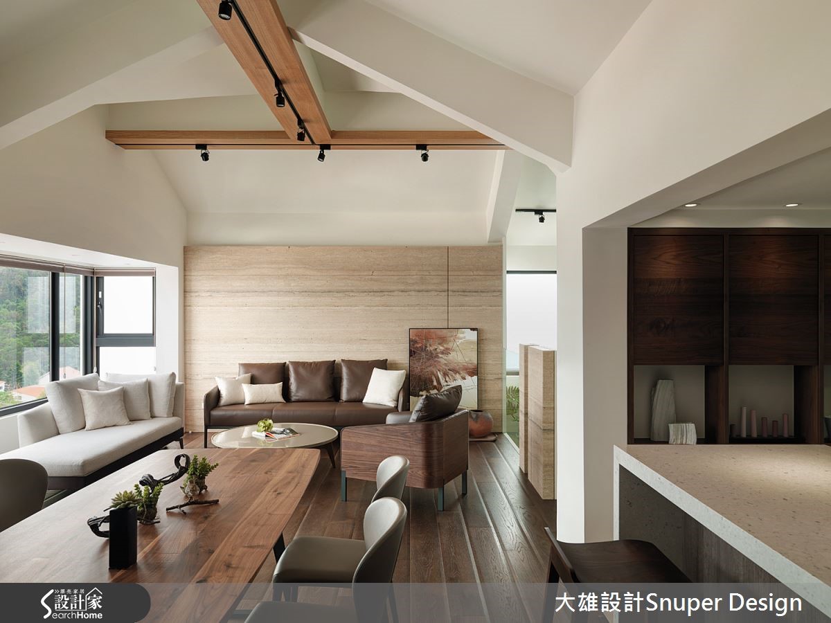 故事始于一片绝佳的景致与山边小屋,90 坪的老屋,在设计师变革之下,顺应使用者状态,重新组列空间动线,让複层格局层层通透独立,但同时相互卡构串连,并挹注现代风格语彙,赋予山居生活新的面貌。整建过程中保留原始屋根,并于屋顶加建 T 型木作灯槽、天花融入斜角折度,搭配梯间镂空墙柱,让光影于空间之中衍生来去或暂留的时间感。公共厅区为一小家庭组构,透过亲子生活互动规划动线安排,充分满足开放与私密的可能性,并加入环绕型动线,帮助光线流动,使低层窗光得以共享,同时接纳庭园绿意;私领域则让狭隘空间相互打通,让场域之间多了彼此凝视、交流的机会,而主卧室则拥抱 L 型双面窗的绝佳视野,并透过新露台推展,打造室内与山景之间的层次,涵蕴生活间多角度的有趣组合。小编的最爱设计师刻意减少视觉彩度与质料,让中性自然的色调和谐存在于空间内,把绝美景致化为山居的主角,挹注动人的大地之美。