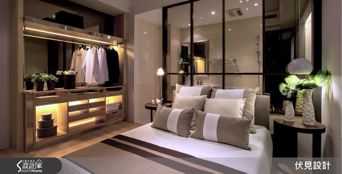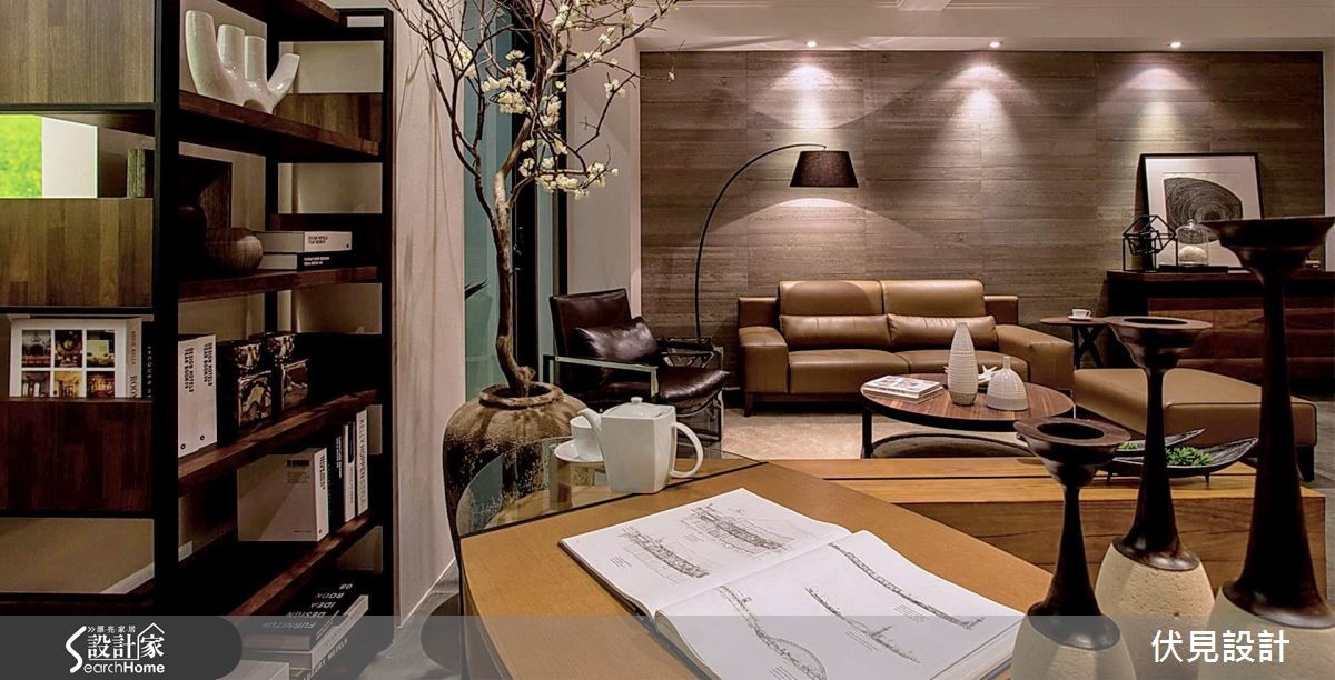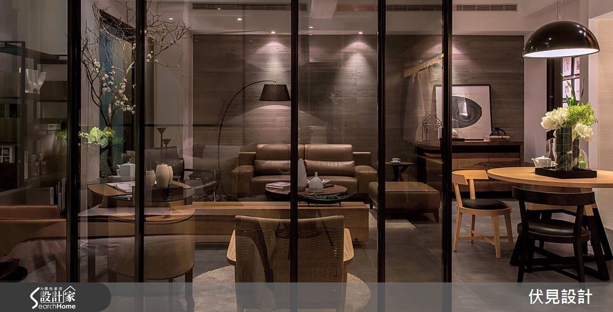 撷取古典东方风具备的明镜、实木、石材等富有自然气息的元素,巧妙与现代空间融合。接着搭配投射灯光,发展出宛如水墨画般的艺术气息,留白中带有隐晦美感。【中式家具和深色木质点缀】独立玄关即以木制框架、以及植物造景做为入门印象,转角后即到达宽敞的公共空间。客厅以定制家具混搭实木长椅,实木木皮墙在投射灯光下,表现古典均衡之感。接着利用梅树造景作为客厅与书房的衔接,而餐桌则置于实木皮墙旁,为用餐时光增添自然气息。来到卧房,利用开放式衣柜使睡眠空间同时兼具更衣间功能,主卧更利用玻璃隔屏连接卫浴,创造宽敞视觉。整体而言,设计师利用材质、灯光等意象创造东方风自然美感,盆景、木石建材等相互混搭,除了抹除中式空间过于沉重的视觉意象,更与现代建筑完美结合。
