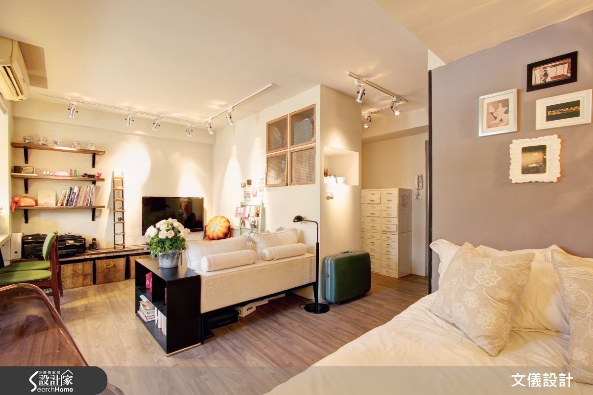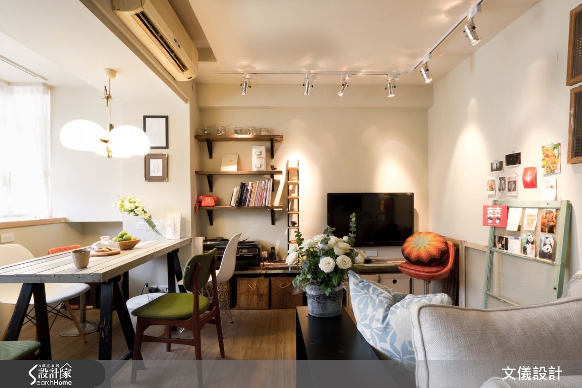 一个人的生活,不需要理会太多人的想法,更多了疼爱自己的空间,小巧而温馨的 11 坪小窝,满载屋主对于生活的记忆,在设计师规划下,各式风格的珍藏品、二手家具拥有专属的表演舞台,以温暖的灯光点缀,带点法式混搭的优雅细腻,也有活泼慧黠的个性。从门口进入后,衣柜门板就是一大面黑板墙,可以画上旅行时最爱的异国街景,包涵生活的各种可能性,而继续向内走进,开阔的空间容纳了客厅、卧室、收纳空间,以及採光明亮处,放置一张可兼工作桌使用的长餐桌,再加点绿意植栽装饰,营造出明朗清新的氛围。收纳设计融入不同物件的特质,像是利用旧木订製的层架,而客厅侧边也利用以木框和玻璃,做成收纳格的门片,增添复古手感的风情。卧室利用不同的墙面刷色,在视觉上与公共领域带出区隔性,形状不相同的相框、散发着旧时光气息的老件灯具,却意外地和谐融洽,让居住者伴随着静谧的温馨感,缓缓入眠。小编的最爱疼爱自己,就从为自己买下一个家开始,设计师将承载满满记忆的珍藏品,全都灌注在生活中,揉杂不同风格的二手家具、小物,反而成为一种独到的浪漫。