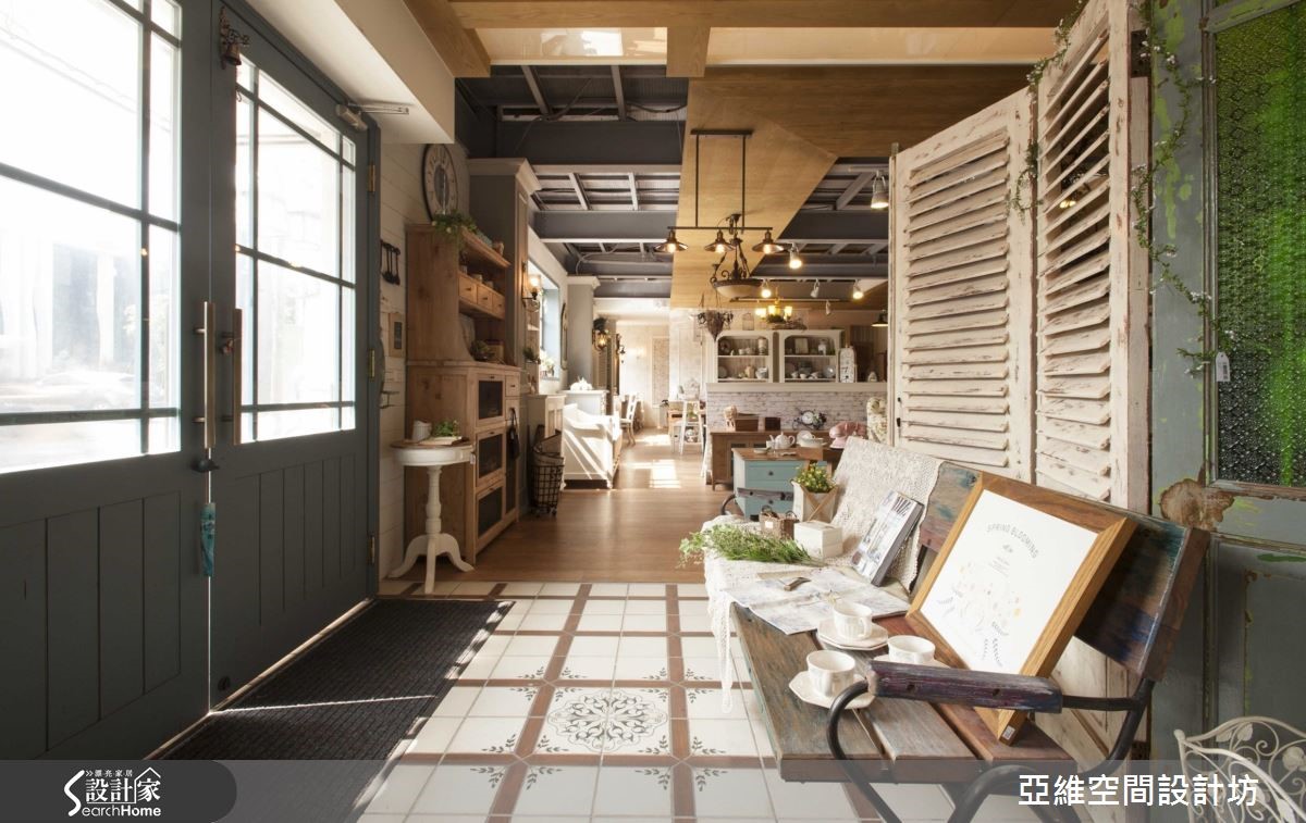 荒废逾15年的老屋,由于既有结构不堪使用,所以设计师几乎全数拆除,并重新加入装置艺术、手作颜色,并统合客制化设计概念,引入阳光、绿意,打造属于法式乡村的温馨浪漫。【加入自然素材,烘托质朴印象】建物外观加入文化石、胡桃木原始素材,强调清新、朴质、优雅的法式乡村印象;推开木质双推门,则可见店内加入实木、文化石、复古砖等材质,与迤洒入内的阳光相互映衬,释放温馨且温暖的韵律,将展示家具、软件烘托得更显优雅。【特殊漆面处理,调制手感温度】室内不做太强烈的颜色搭配,以清浅具柔性质感的彩度调性,安排居家生活中的悠闲质素,且加入富手感温度的漆面处理,让消费者亲身感受到各种手作的表现工法,型塑亲切、有如自家般的生活体验!