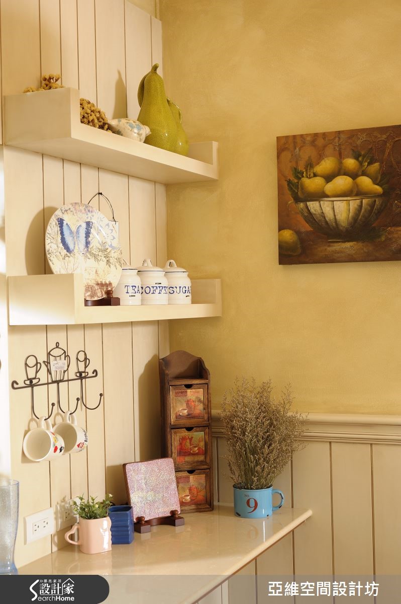 从事科技产业的屋主,期望拥有属于自己的乡村风居宅,于是碰上擅长美式、乡村风格的亚维设计,双方相当合拍;采以复古黄调作为基底,注入质朴富手感建材,挥洒出朴实童趣的况味,配置合宜的家具摆件,更使乡村美感层次更加提升。【手感漆面痕迹,彰显乡村况味】公共空间以木地板衬出疗愈气息,墙面采以黄色打底,让建材充满不均匀的手感肌理,并配置天蓝格子沙发,给予视觉上的安宁感,搭配风景画饰妆点,彰显淡雅的乡村况味,天花则悬垂古典造型灯具,达到画龙点睛的装饰效果。【增设展示隔板,善用空间收纳】餐厨领域陈列线条雅致的餐桌椅点亮风格主题,沿着腰板规划展示隔板,不仅善用空间收纳,更使空间表情显得丰富。浅绿色餐厨柜则呼应客厅鞋柜色调,在黄色调性中增添几分自然纯净。【明亮黄色主调,洋溢活力气息】卧房则加入柔和清浅的色调,搭配格纹床单与窗帘,营造沉稳安定的卧眠氛围;小孩房延续愉悦的黄色主调,于墙上铺贴卡通墙贴、创造童趣氛围,注入饱满的活力元气!
