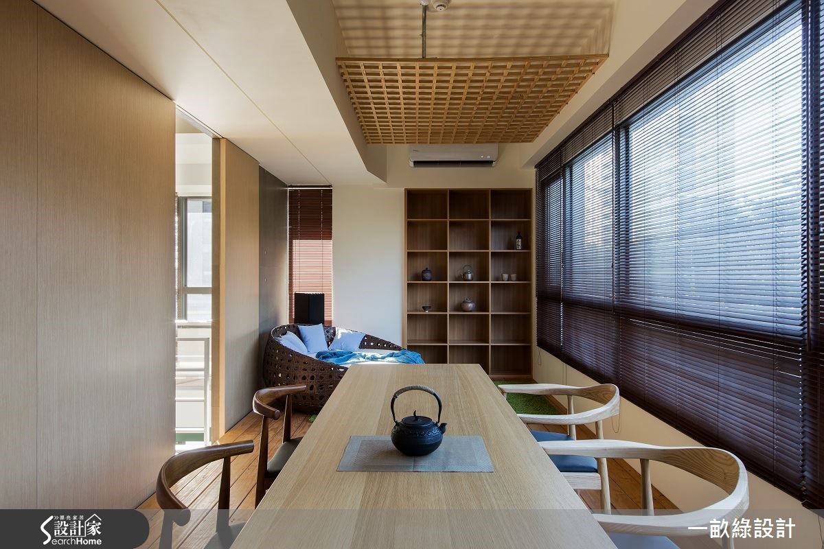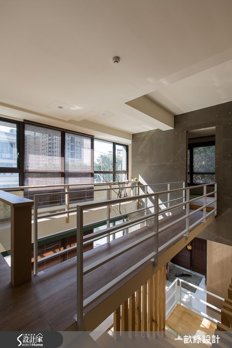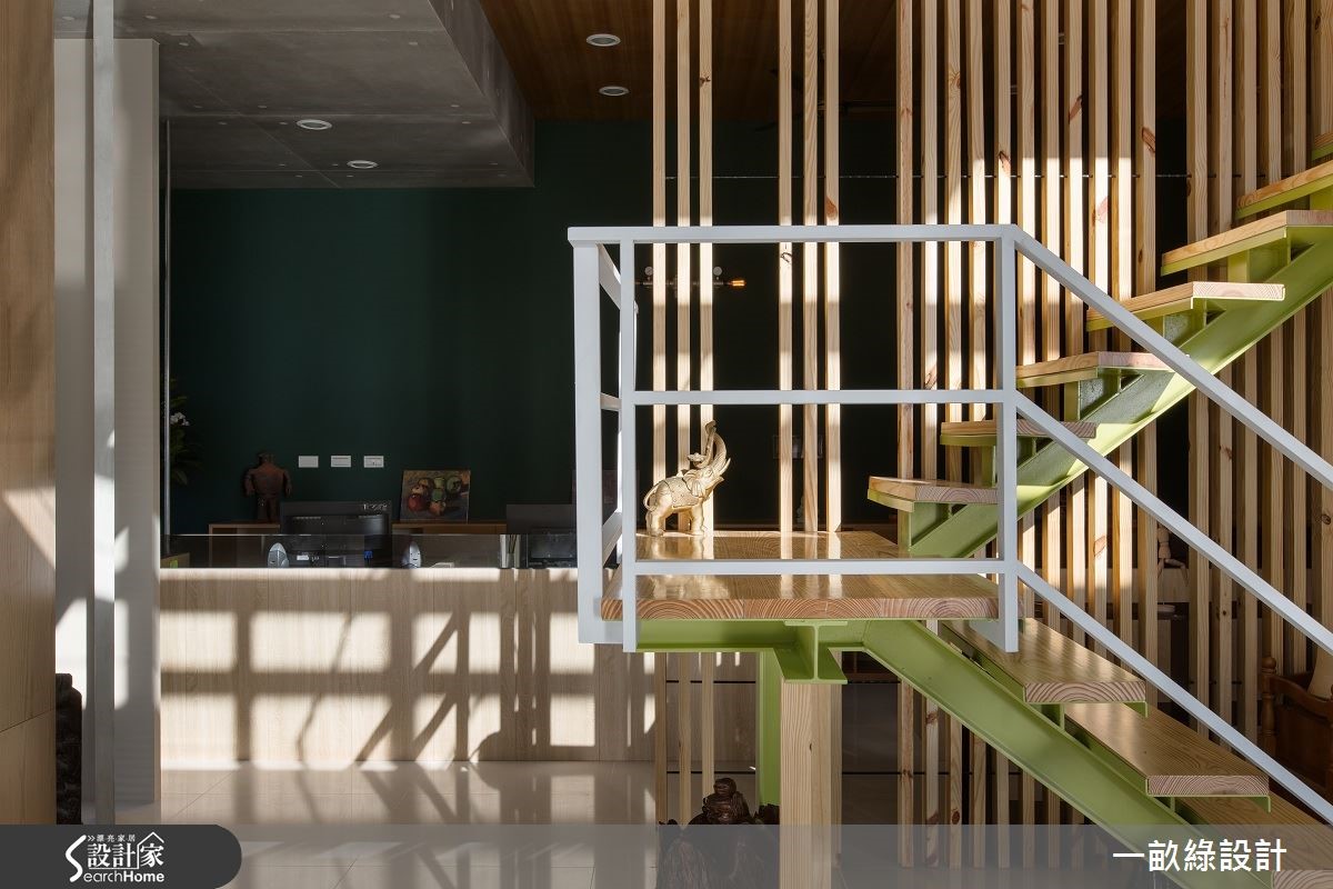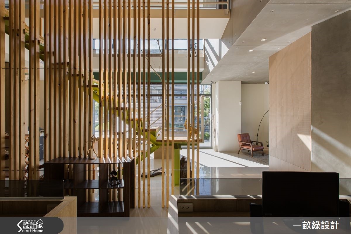来到一亩绿设计的工作办公室,可见一如其作品的空间氛围,不矫揉造作、平易近人,洋溢着令人放松的悠闲气息,俨然是培育美感、灵感的绝佳之处。现在就跟着小编一起实地探访,看看这个由光影绿树构成的静幽之地吧!【绿植配木作,勾勒自然寓意】空间内,设计师引入丰沛的自然日光,使光线成为穿引调和的角色。于一楼规划大面积绿色墙面,强调"远山"意象;且配置令人放松的浅色木格栅,营造有如瀑布般流泄的画面。会议桌旁则加入绿植陈列,以一株清枫映衬整体休闲风格,让空间洋溢绿意与生机。配置一座浅绿色阶梯,藉此分界工作区与会议区;同时达到串联上下楼层的效果,透过悬空踏阶与空桥设计塑造轻盈感,让光影自由流通,使各个区域视野一览无遗。二楼窗台旁走道摆上单椅,无论是由此往外、往内俯瞰,伴随着温暖阳光浸润,皆可浏览到不一样的风景。二楼是访客接待室及设计师个人办公室,导入大量清爽木质与户外窗景,让空间兼具度假、放松氛围。
