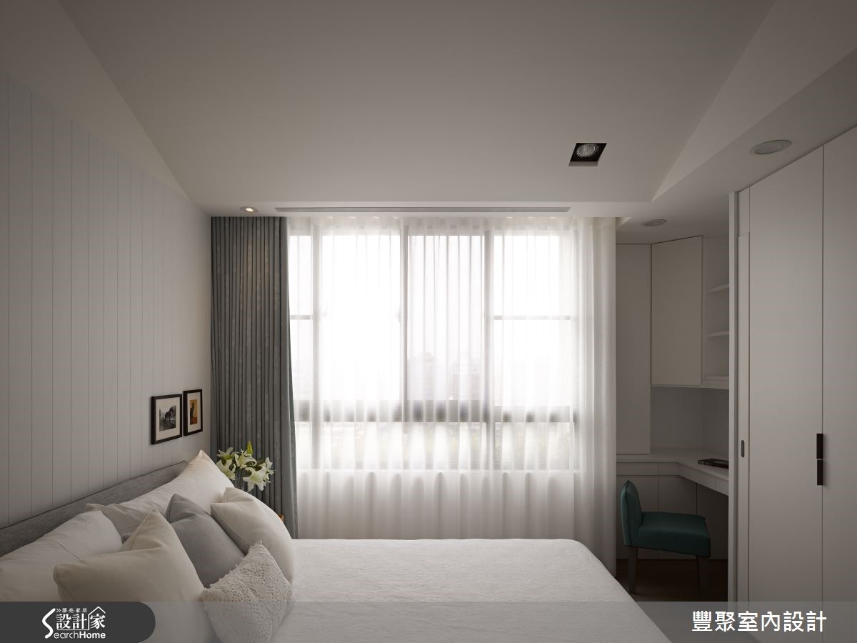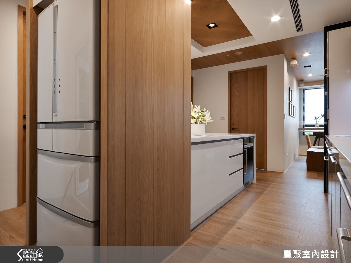 面对喜爱北欧风与简约感的屋主夫妇,设计师自两种风格撷取了部分元素相结合,营造拥有大量木质元素的度假感家居。另外,为了满足家有长辈与风水修正问题,设计师更重视业主需求,打造一家人都满意的好设计!【木作开放式空间,满足长辈需求】设计师利用富有天然纹理的石件屏隔,成功解决穿堂煞问题,电视墙则延续石件建材,创造大面积视觉律动性,并利用镶嵌于墙面的深色柜体营造成熟况味;天花大量铺设橡木木皮,并以降版框设客厅上方的木梁设计,达到遮梁目的。开放式场域相当适合作为招待亲友之用,窗边吧台拓展了实木长桌的使用领域,而温润的木作蔓延了整个开放式空间,其安全性与风格营造相当适合长辈需求。中岛餐厨利用现代化建材与木作相结合,营造俐落大方的用餐场域,佐以上方镜面,更达到视觉放大效果。将纯白色系作为主轴的主卧,巧妙将天花设计为欧式尖顶造型;另外,利用角落空间设计L型座位区域,兼具收纳、阅览与梳妆功能。小编的最爱窗边吧台的设置除了延展了複合长桌的用度外,更成为另一种惬意的生活方式,让一家人放慢脚步,在结合简约木设计的优点下,更凸显了北欧风格的舒适与共享特色。