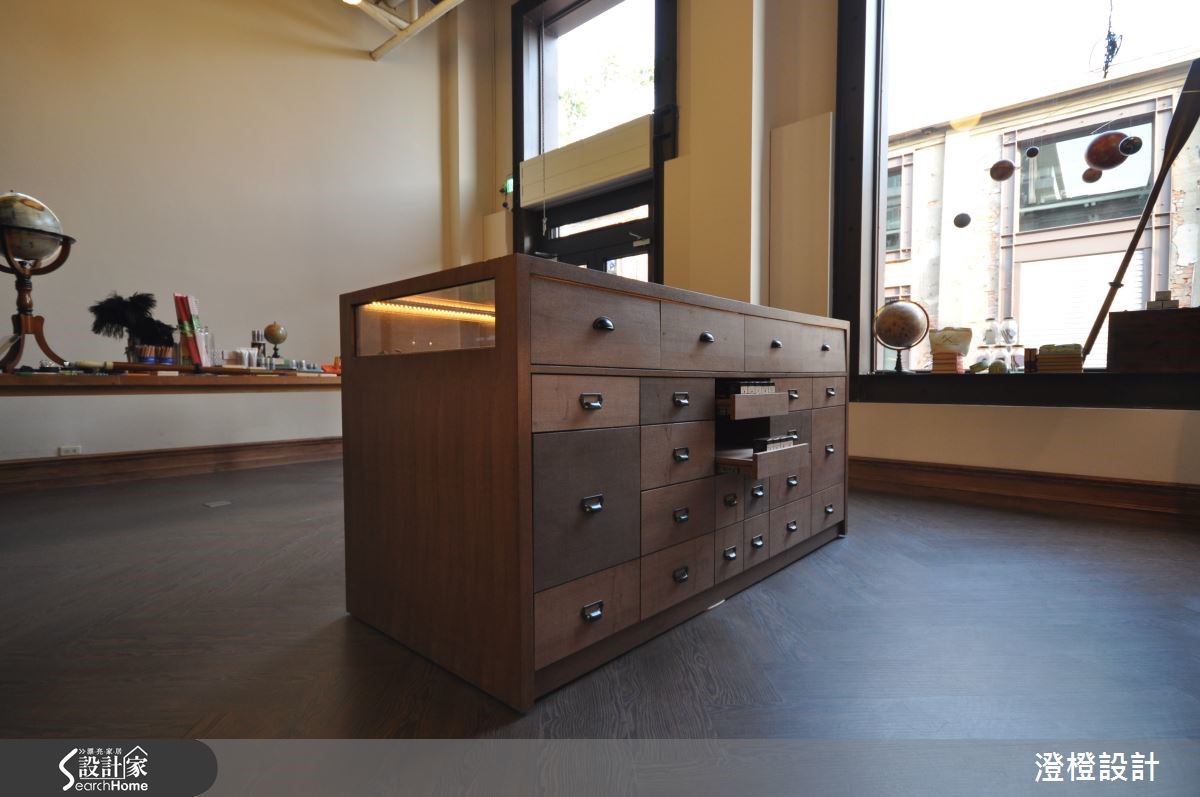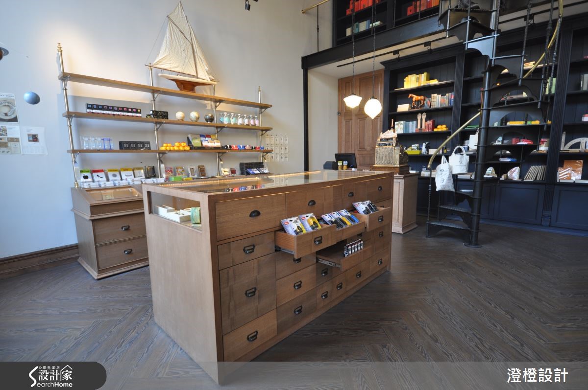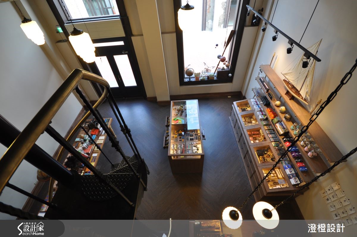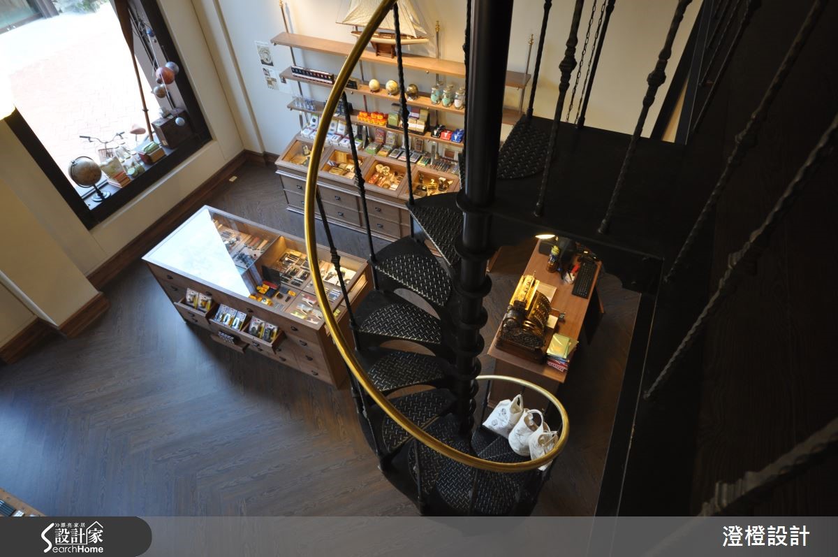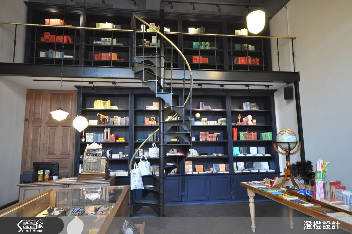 座落于艺术特区林立的老仓库群中,专门贩卖百年历史品牌的文具店,利用老仓库改建,化身为具有独特风格的商业空间。设计师特别依循品牌理念,为66平方米店面注入工业时代的骨董感,进一步融合英伦气息浓厚的图书馆风格,完成有趣且独特的混搭比例。【百年品牌文具店的人文底蕴】建筑外观为不假修饰的水泥墙面与裸露红砖,并利用钢架框设大面积对外窗,体现了工业风格的特色;进入室内,映入眼帘的则是温润的人字拼木地板、实木台面与玻璃展示柜,创造充满人文气息的手作感,内外体现了特殊的反差美感。设计师更善用挑高优势,铁件螺旋楼梯成为串联上下跃层的视觉主轴,更是另类的展示工具,扶手特意刷上黄铜色调,增添地道的英式贵族气息。空间底部厚实的及顶书柜贯穿上下场域,其细腻的垂直纹理,成为稳重宁静的存在。
