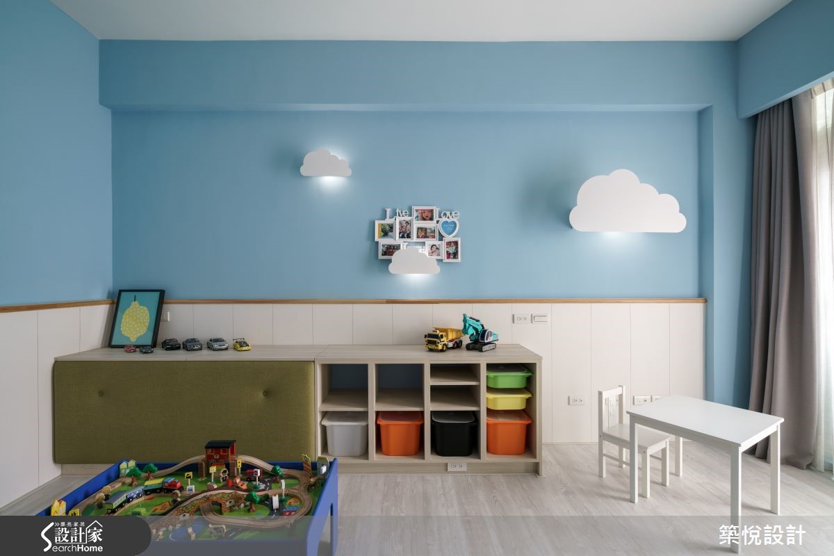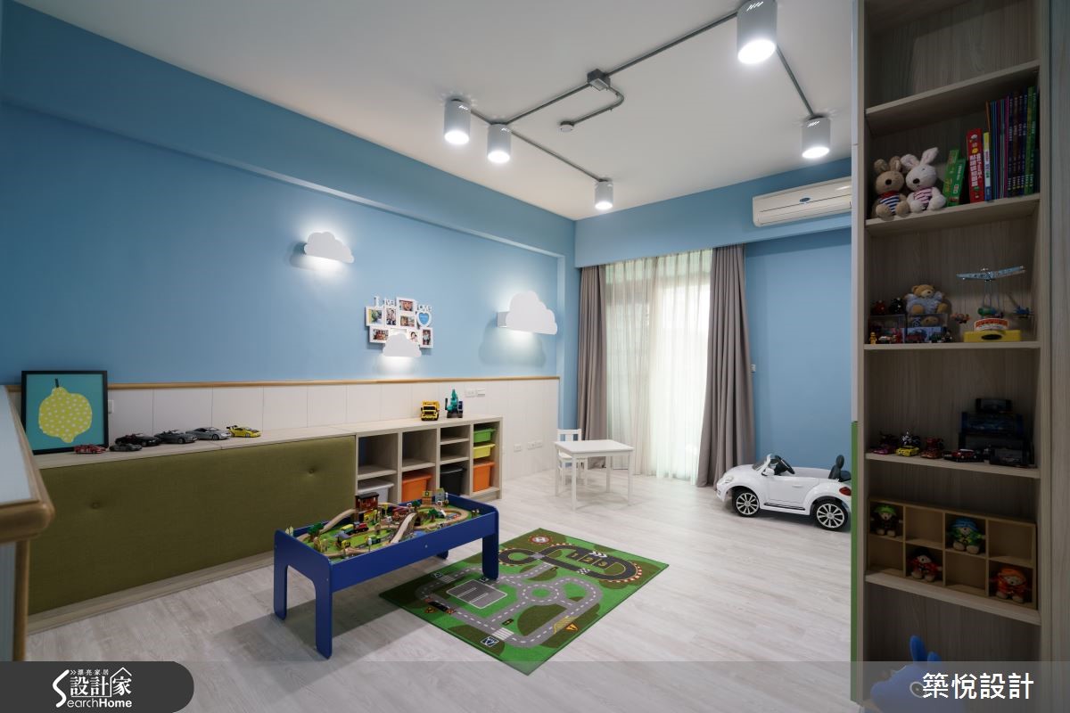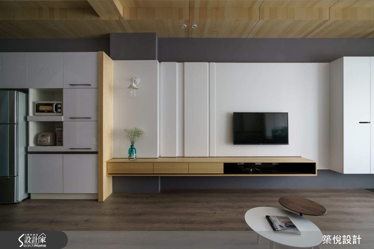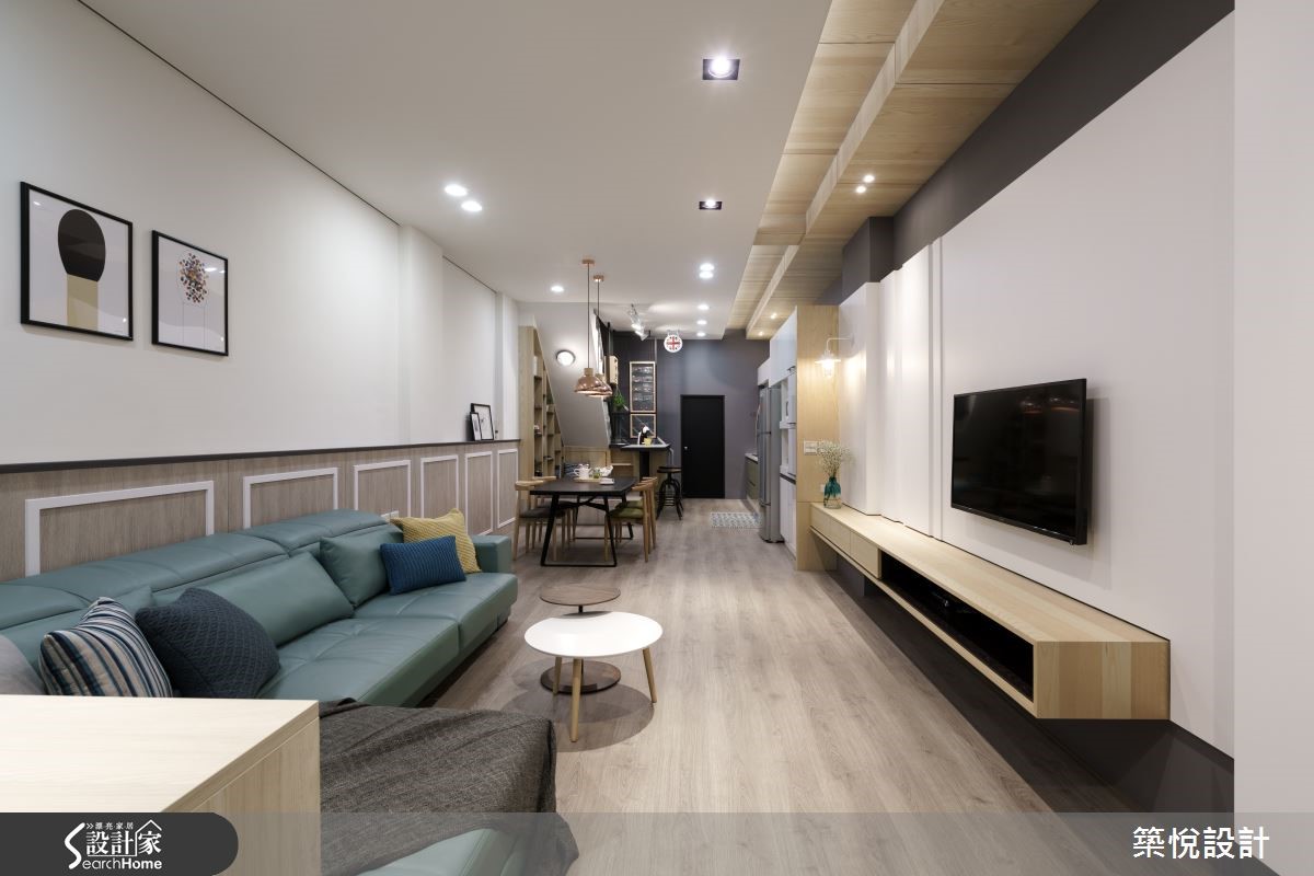 66平米的二手房,原先屋况动线与空间使用率不良,于是设计师重整格局,以开放式设计打造扩容效果,也让亲子的生活互动亲密无间,同时采以轻Loft风定调,少了粗犷与冷冽,多了几分活泼轻盈,描绘出让一家子都心生向往的居家风景!【开放式格局,串连全家生活动线】在横向的长型公共空间中,设计师以开放式格局串连全家人的生活动线,增进日常的情感互动;而为了消弭墙面与柱体间的落差,巧妙做出凹凸立体造型,不仅修齐墙面突兀感,更增添空间立体表情。配色上则采以木地板搭配腰板、木柜等型塑大地色调,替净白色基底染上温润气息,并加入蓝绿色沙发、草绿色餐椅、铜色吊灯等软件细心配色,构筑出轻盈带有个性的视觉感受。【楼梯下的大妙招!规划成阅读小飘窗】梯间梁下空间则予以善用,架高底部规划成可任意躺卧的小型飘窗,墙面配置柜体增加置物机能,更将黑色铁网连结楼梯侧墙,将展示功能向上延伸,一旁连结了L型桌体,作为简易型吧台兼书桌使用,充分发挥每一吋空间。