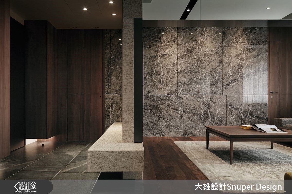 当家中同时有长辈、父母和孩子居住,生活空间的需求便变得复杂,设计师融贯三代家中成员的期待,以石材、木质,及明亮色的软件,揉合沉稳、温暖、轻快的3种性格比例;格局配置上则着重家人间的开放互动,同时也保留独立隐私,为彼此找到最佳距离。【梁柱贴上镜面,延长天花视觉】181平方米空间,以电视墙作为与玄关间的区隔界线,沿着墙面延伸低平台,适合乘坐的高度,在出门前便成为穿鞋椅;来到公领域,餐厅利用大理石铺排远方的磅礡装饰,梁柱侧边贴上镜面,不仅减轻了梁柱的存在感,也延长天花的视觉宽度。【芥绿色单椅,温馨氛围的焦点】地平采用温暖木色,加上柔软的灰色布织沙发,营造温馨感,明度较高的芥绿色单椅则成为亮眼焦点。主卧室纳入大量的收纳机能,除了电视墙后方的更衣室,侧边门板拉开后,也有令人惊喜的储物空间。【浅蓝墙面,打造愉悦的儿童房】儿童房则一改沉稳印象,墙面加入明亮的浅蓝色,点亮私领域的愉悦表情,一旁并配置阅读区和展示架,床下也有抽屉式收纳及大衣柜,机能性相当充裕。