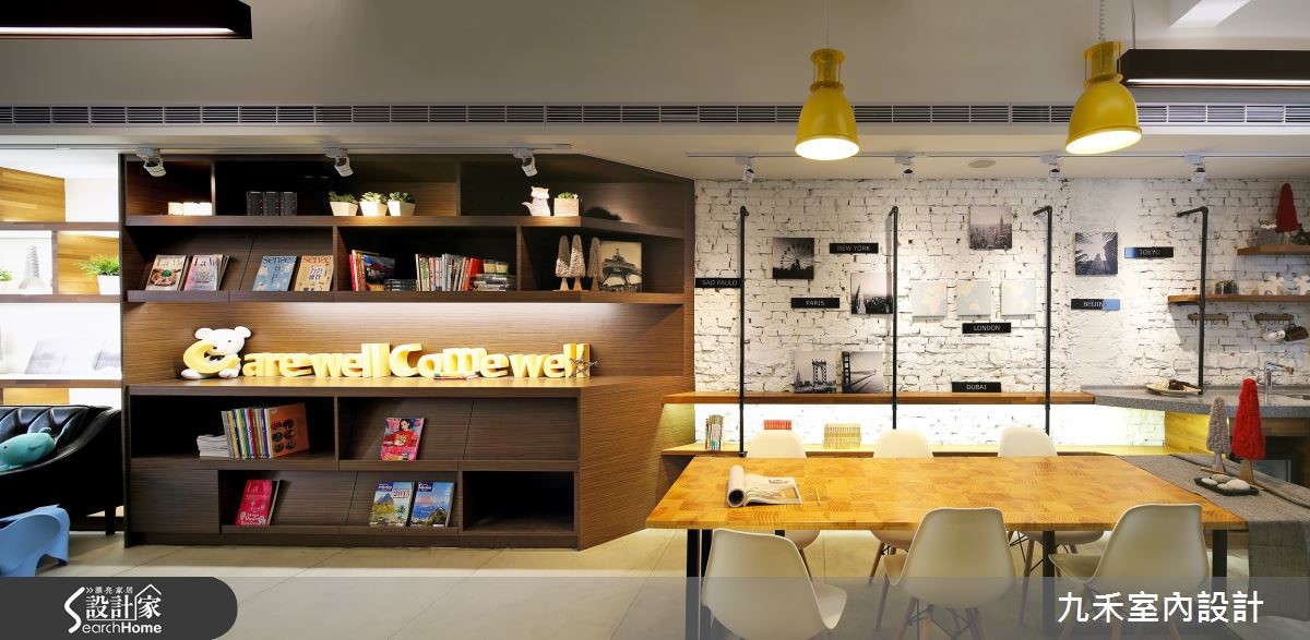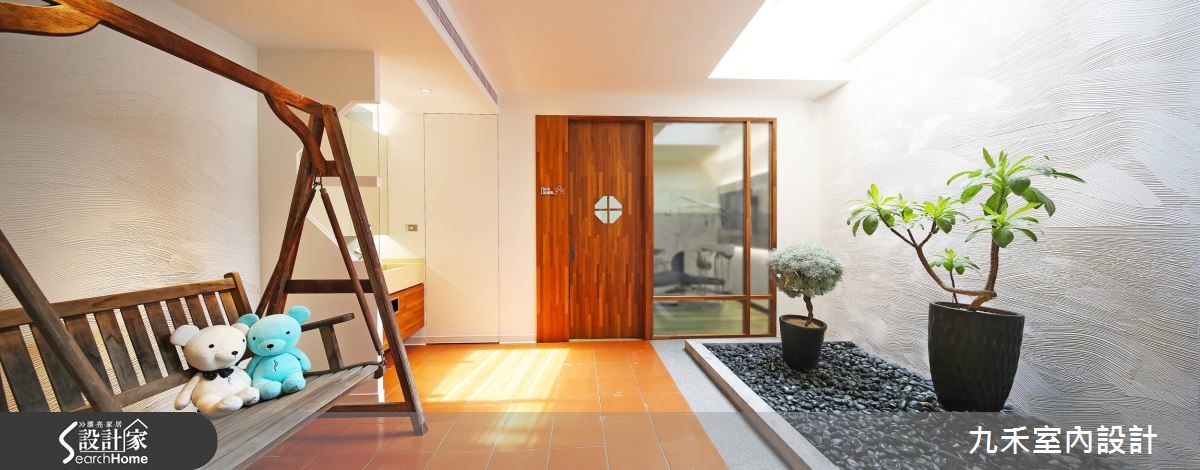 跳脱制式冰冷的诊所印象,设计师利用三层楼空间,采用木材与铁件打造了宽裕舒适的牙医诊所。搭配开放设计和展示柜的大量书籍,提供病患轻松无压的看诊过程,让看牙医不再是煎熬与折磨。 【墙面层层设计,视觉不单调】进入一楼候诊大厅不禁令人惊叹,抹除了对于医疗产业的刻板印象,取而代之的是个性化混搭空间。柜台区域以大量拼贴木皮结合铁件,与后方拥有粗犷纹理的砖墙激发对比美感。柜台对向的候诊区域摆放复古拉扣沙发,后方层架设置间接照明,营造温润光感。而杂志层架成为前后区域的接壤,上方悬吊的长型照明并错落有致地向后延伸。后方的休憩长桌,搭配铁件木隔板与砖墙,创造工业风格的时髦感。顺着水泥粉光阶梯与挂满相框的砖墙拾级而上,来到明亮清爽的诊疗空间,木质地板与柜体平衡了仪器的制式与冰冷。而位于三楼的特别诊疗室,外部利用天窗与绿植造景,搭配充满童心的双人秋千,创造闲适的光景。