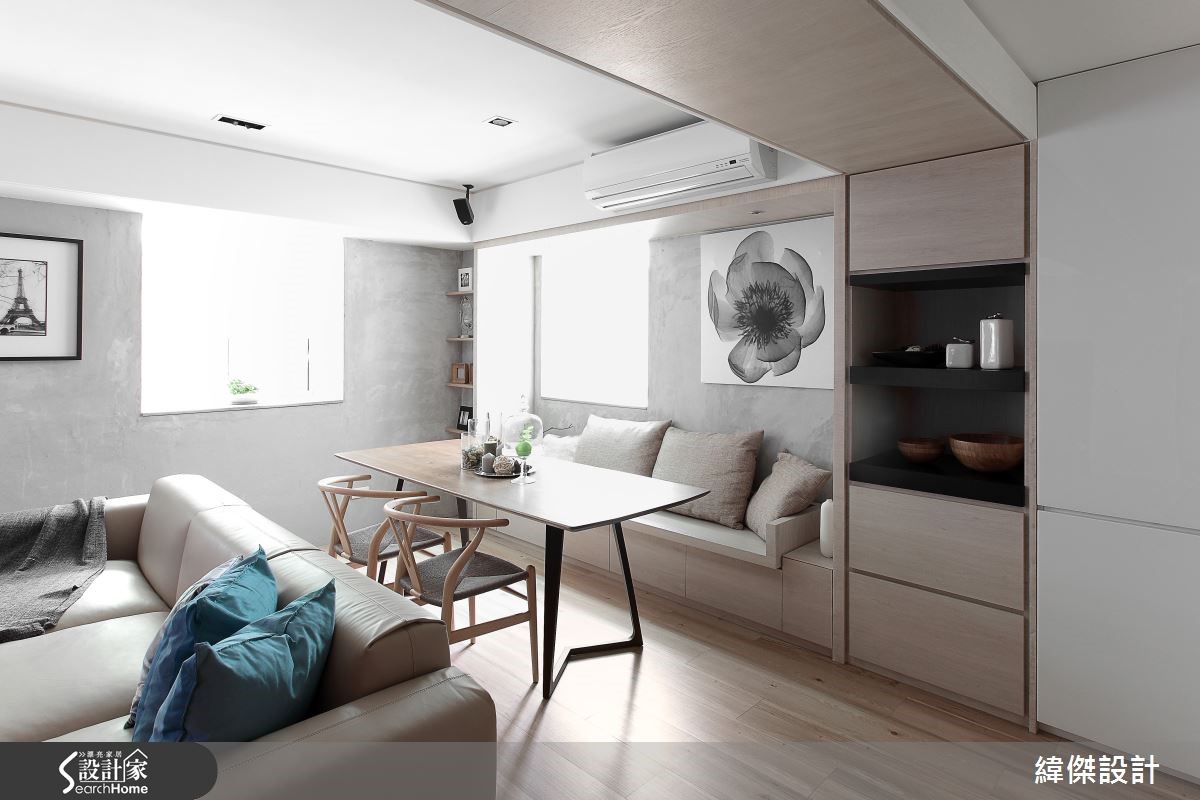 回到家总是期待能好好放松,将所有嘈杂事务抛诸脑后,设计师将106平方米的老屋翻新,将公领域全然解放,朴实的灰色质触,佐上轻浅色的木质,形构一方清爽而且解忧的舒适居宅。【透光隔门令光线自在串联】以北欧风定调的空间,没有多余冗赘装饰,引入饱满的光度氛围,让清新日光漫延一室。一家4口的公共空间纳入客厅及餐厅,一整面的电视墙,放大空间视感,创造宽广的厅。后方墙面则延伸一方飘窗及侧边展示柜,既感受阳光的舒适美好,也为餐厅争取使用效益。隔门采用可透光的玻璃材质,让光线在不同领域中仍能自在串连,却又保有空间各自隐私性。来到主卧室,床头背墙处铺饰宁和的抹茶绿,在木地板的温润承载之下,让私领域显得相当温煦舒适。