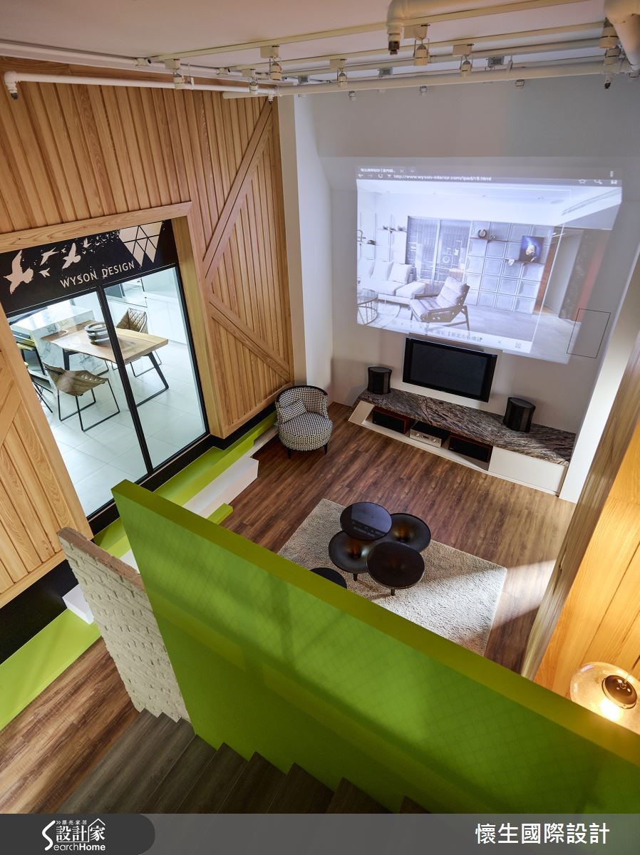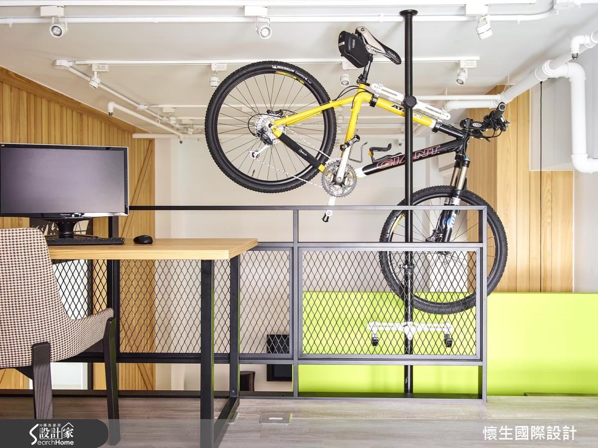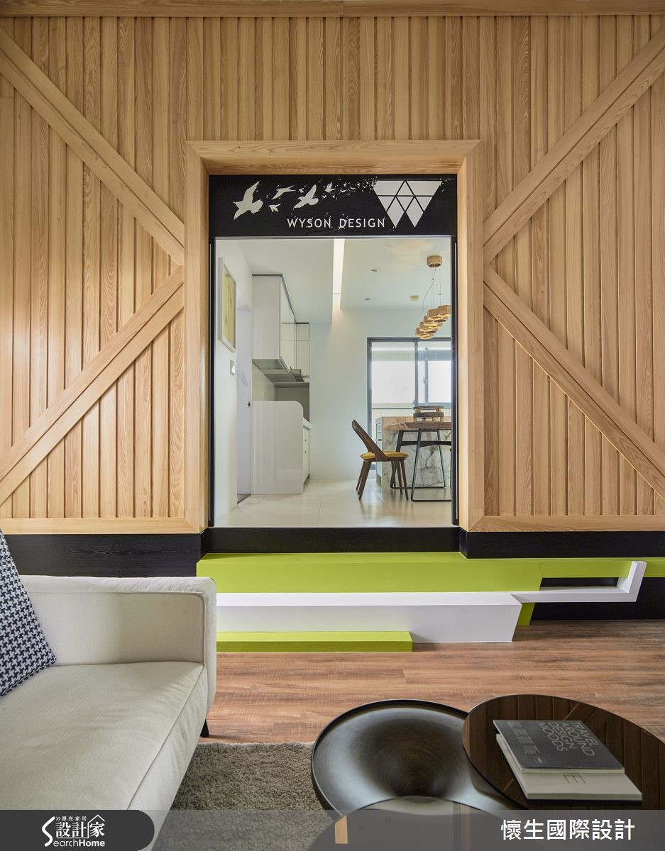设计师微调本案二手屋原先格局,将132平方米居家的公共区域规划为适合全家人相聚的开放空间,并善用挑高优势设置跃层,使每个空间兼具独处与欢聚的机能性!【玻璃门引光,营造明亮感受】设计师巧妙援引光源,为开放餐厨设置大面积玻璃门片,并于墙面与地板运用大量木质元素,藉由木作与日光营造北欧风的润泽温馨。且更改原先的隔断,除文化石墙外,更加设通往跃层的楼梯,并利用清新苹果绿点缀墙面与餐厨的阶梯,增添童趣。纯白的餐厨空间,透过大理石台面与实木长桌的结合,佐以六角造型灯饰,创造时尚自然的气息。而利用金属圆柱与扩张网,创造粗犷不造作的跃层空间,特殊设计的斜角柜体,兼具展示与收纳功能;一旁的桌椅则提供了舒适的单人阅读空间。